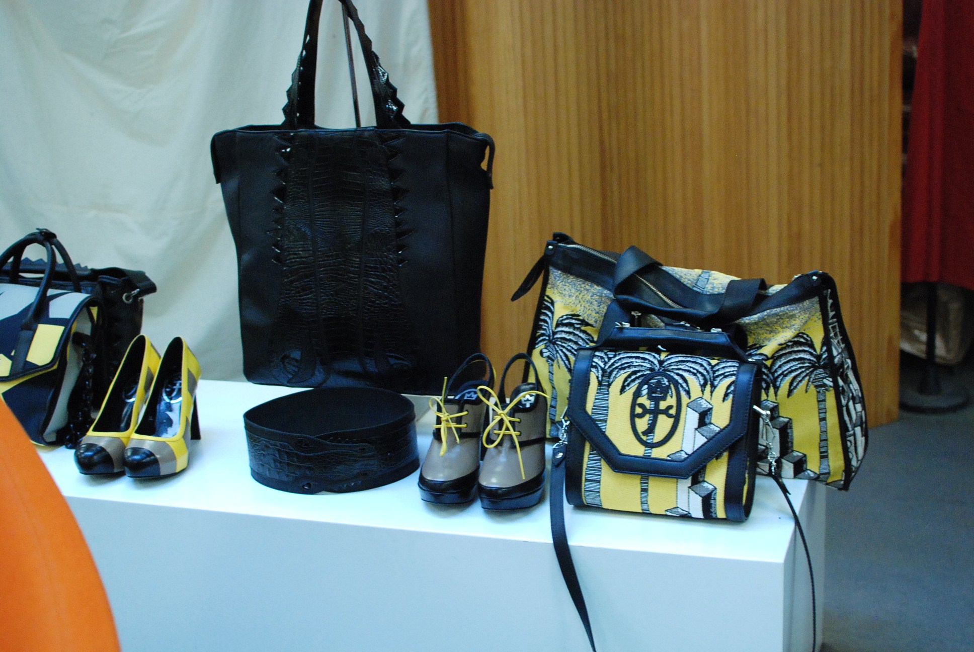Les premières pièces à me marquer sont les vêtements bi-matière, cuir et lin. Trench, vestes ou encore robe à cape, c’est dans plusieurs registres que s’amuse le créateur. Blanc virginal, bleu céruléen, jaune canari et vert malachite, motifs déjantés et explosion de couleur c’est une collection au premier abord, joyeuse. Les imprimés sont variés, tantôt angéliques (les détails d’ailes brodés sur les épaules) ou plus fous (des paysages cubiques surmontés de palmiers et d’yeux).