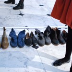 La collection resort (ou collection de mi-saison) nous permet de retrouver le mélange des matières, de la fluidité et de la transparence. Les couleurs sont un peu plus osées que la palette fétiche chez Margiela : bleu marine, vert de gris, fuchsia sur des drapés incroyables accompagnés d’accessoires perlés et réfléchissant en métal.