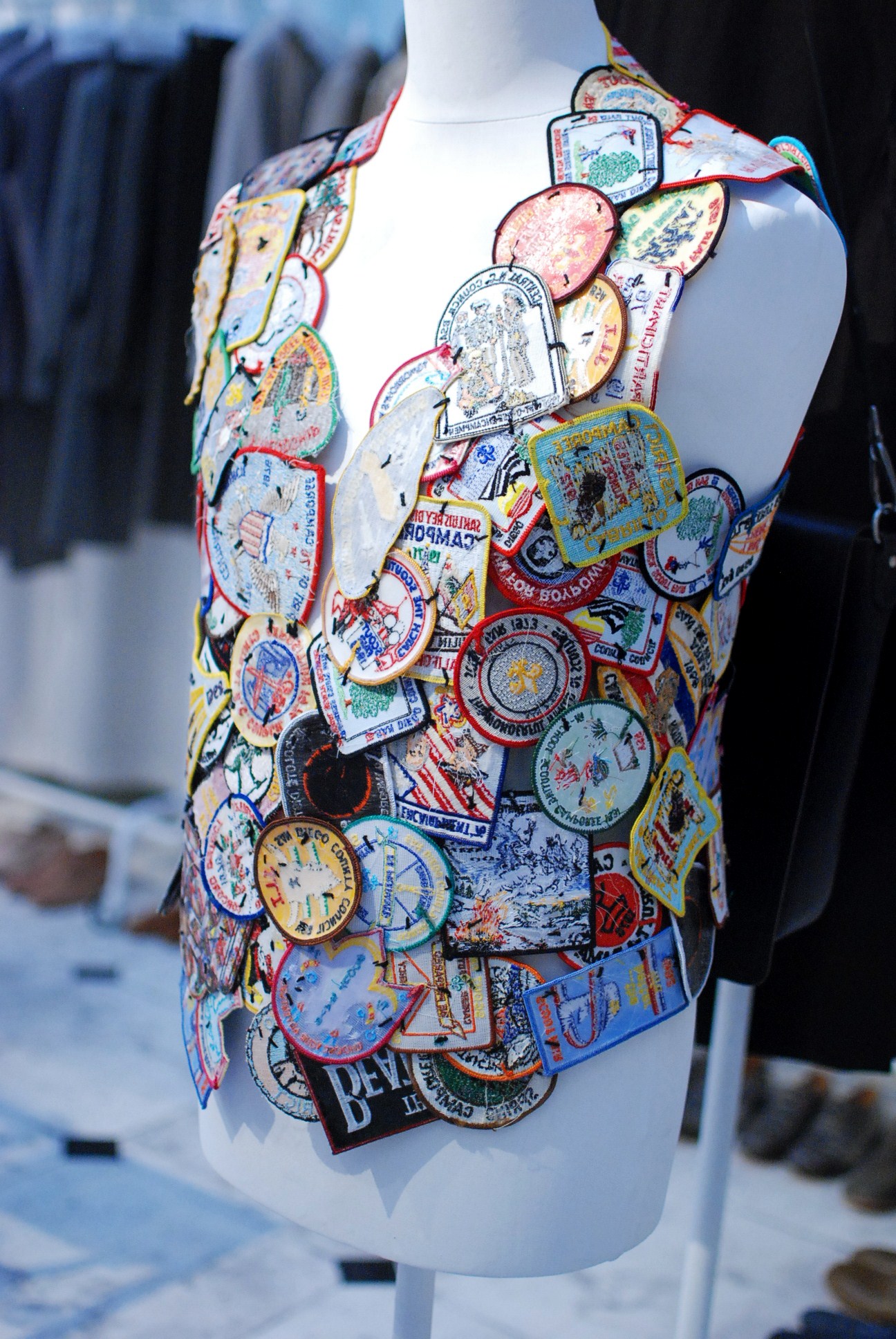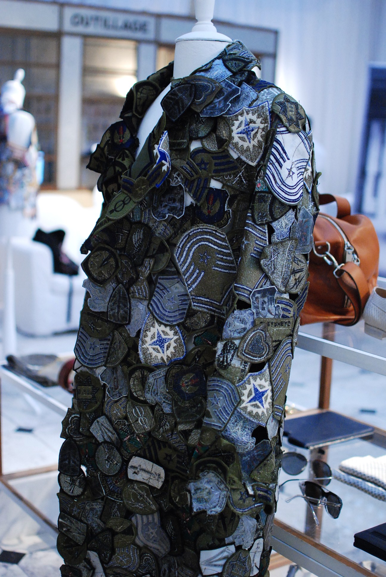Les lignes sont pures donc on ne trouve pas d’imprimés. Le concept derrière cette collection est la récupération, on retrouve donc des pièces intégralement faites de patchworks de l’armée et des vêtements a l’aspect vieilli par une technique de teinture qui rend comme si le vêtement avait été laissé trop longtemps au soleil.