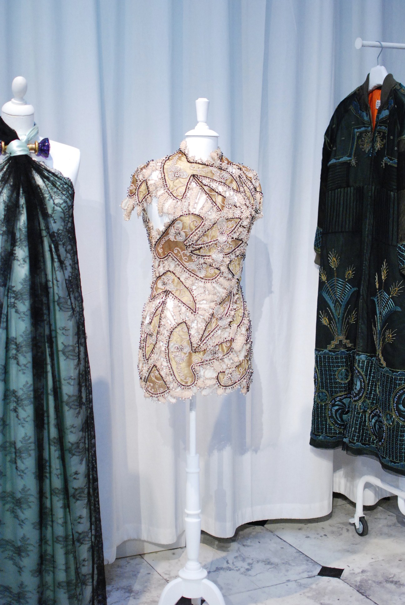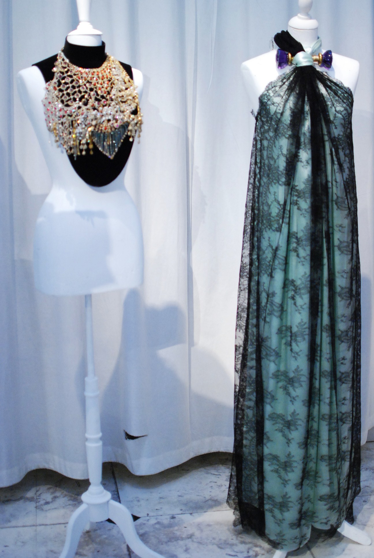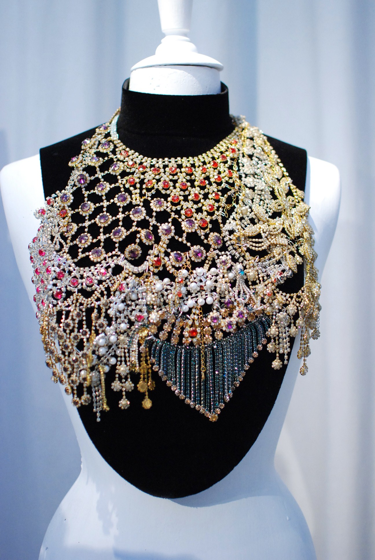 Pour les pièces de la couture, les éléments les plus marquants restent les pièces « bijoux » et notamment les plastrons ainsi que les masques sertis de pierres, recouvrant l’intégralité de la tête.