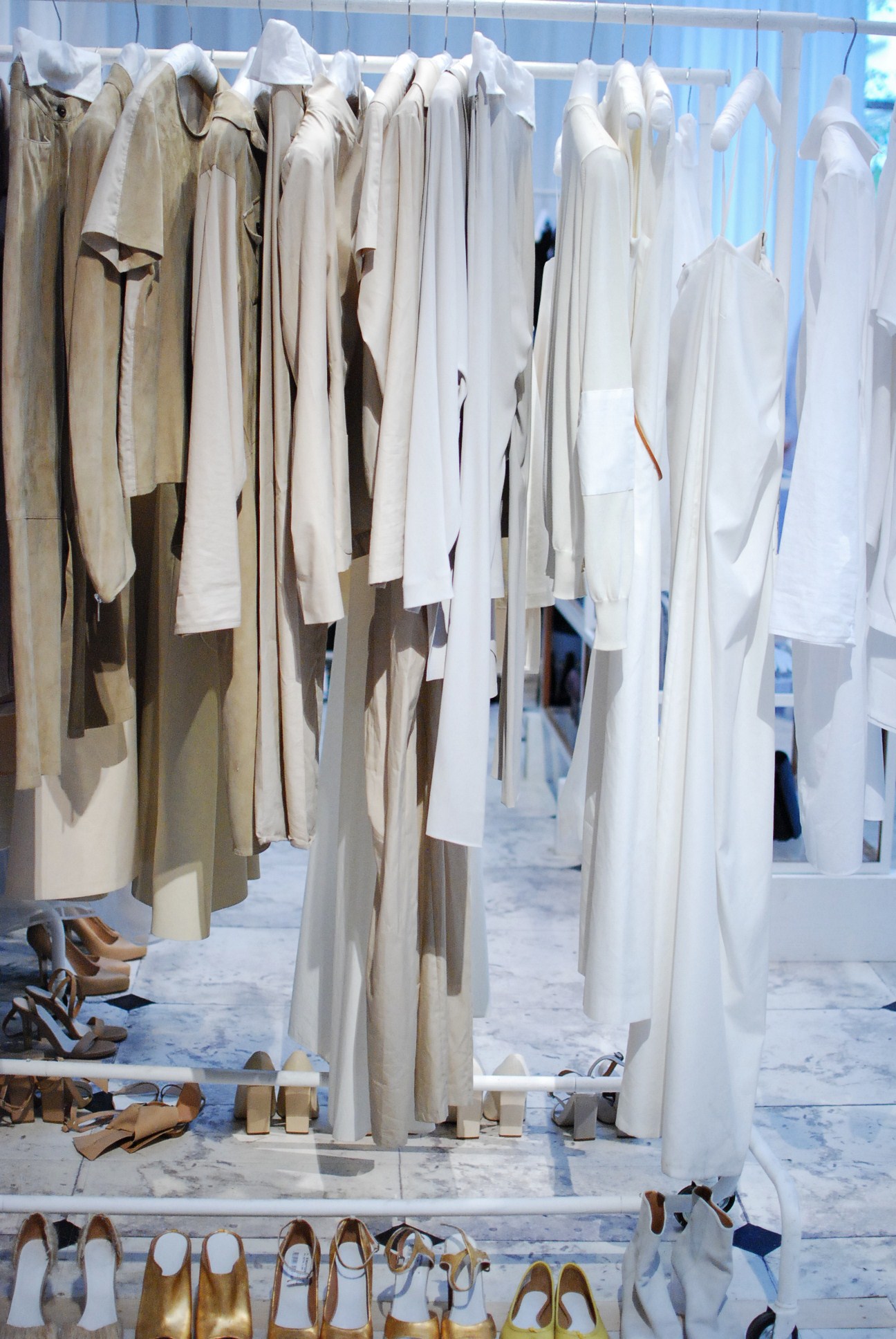 Et c’est par l’homme que nous commençons notre visite. Beaucoup de blanc, de mélanges de matières.