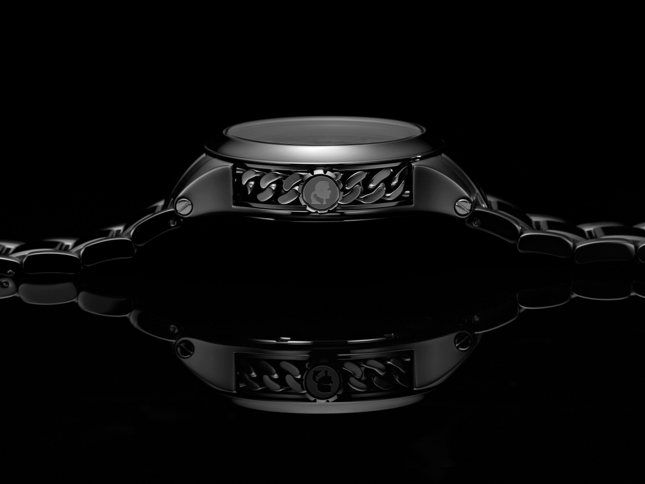 La collection est composée de détails hors du commun: des bracelets en acier inoxydable ou en cuirs métallisé, des clous pyramidaux et des chaînes audacieuses. La “Karl 7” est également un modèle phare de la collection, tenant son nom du numéro fétiche de Karl Lagerfeld. Surmontée d’une lunette supérieure biseautée complétant un look décalé et moderne, ce modèle bouleverse les codes traditionnels du designs en horlogerie.