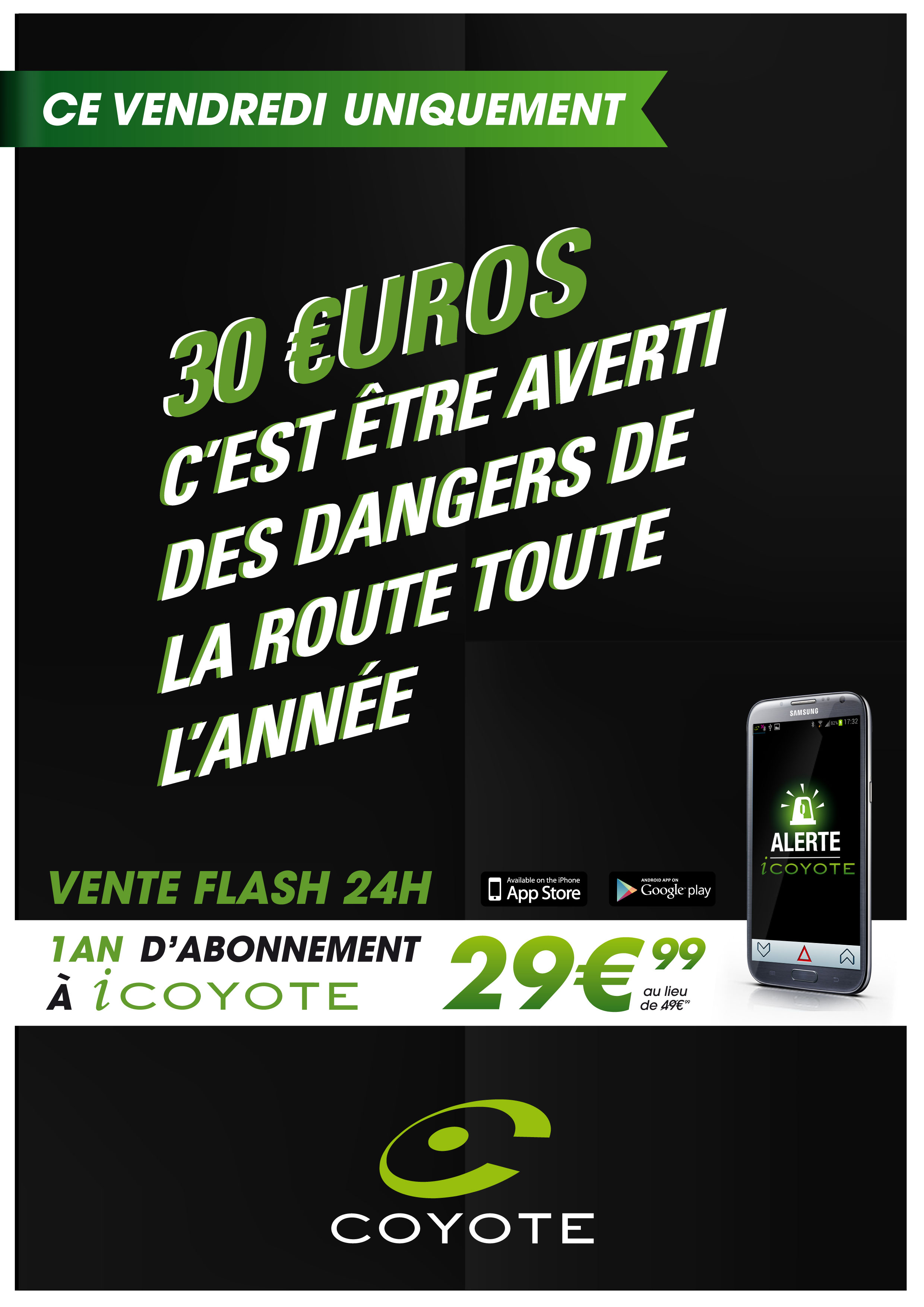 Coyote System, leader de l’assistance communautaire à la conduite a décidé de marquer le coup à l’approche des fêtes et d’offrir aux possesseurs d’iphone et d’Android, la possibilité d’acquérir à un tarif avantageux pendant 24heures !