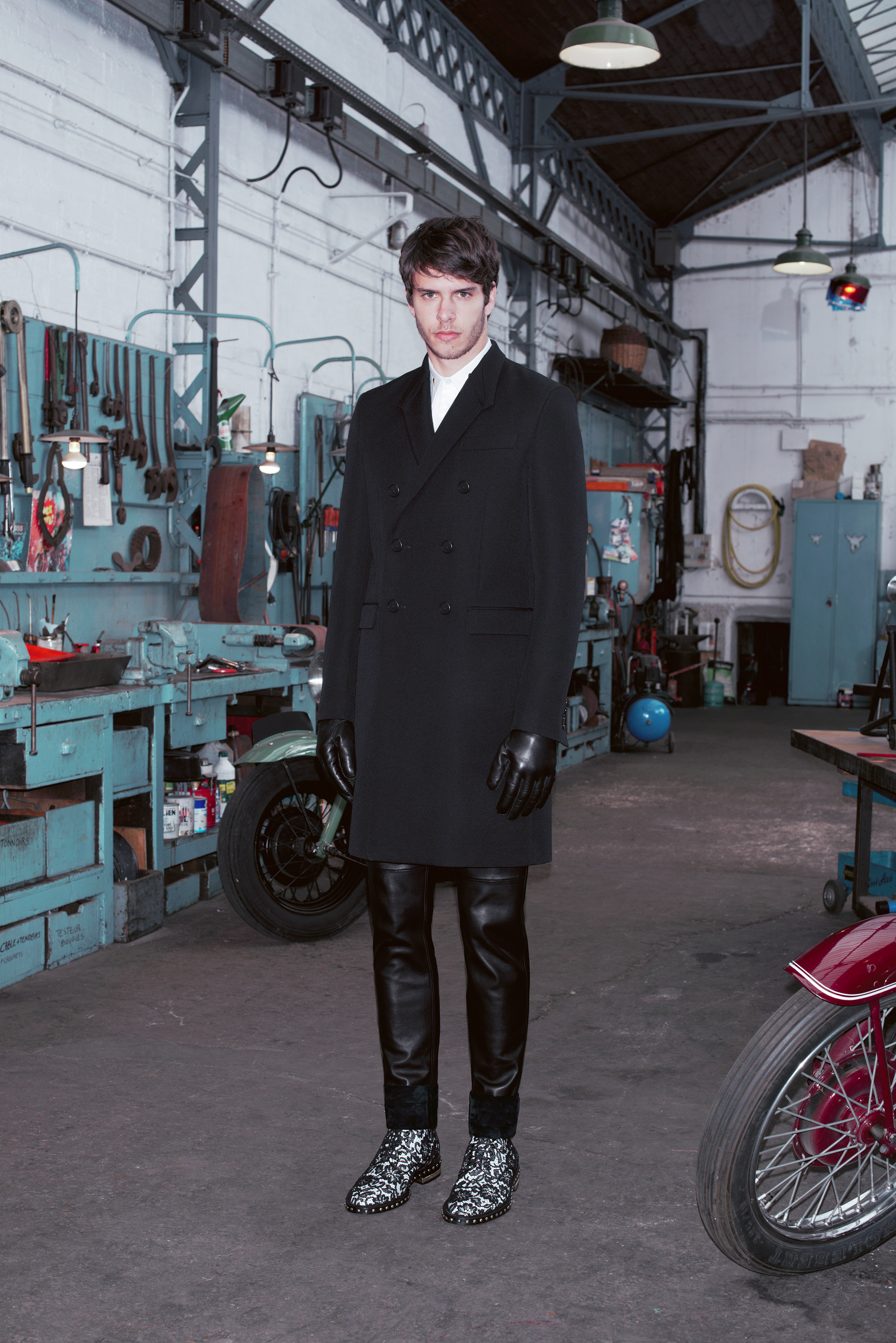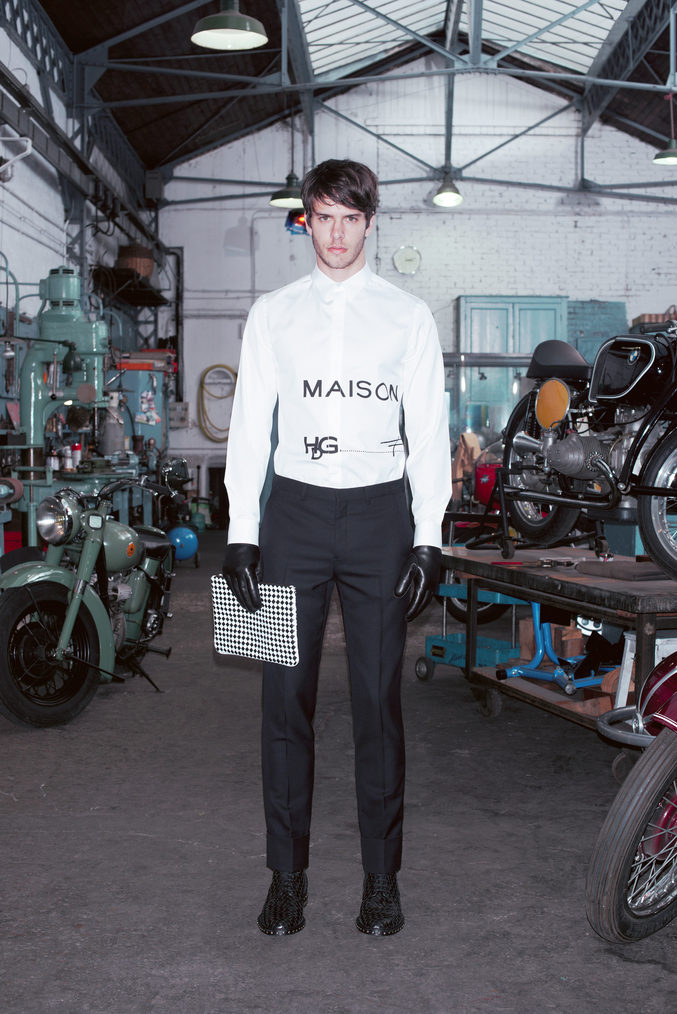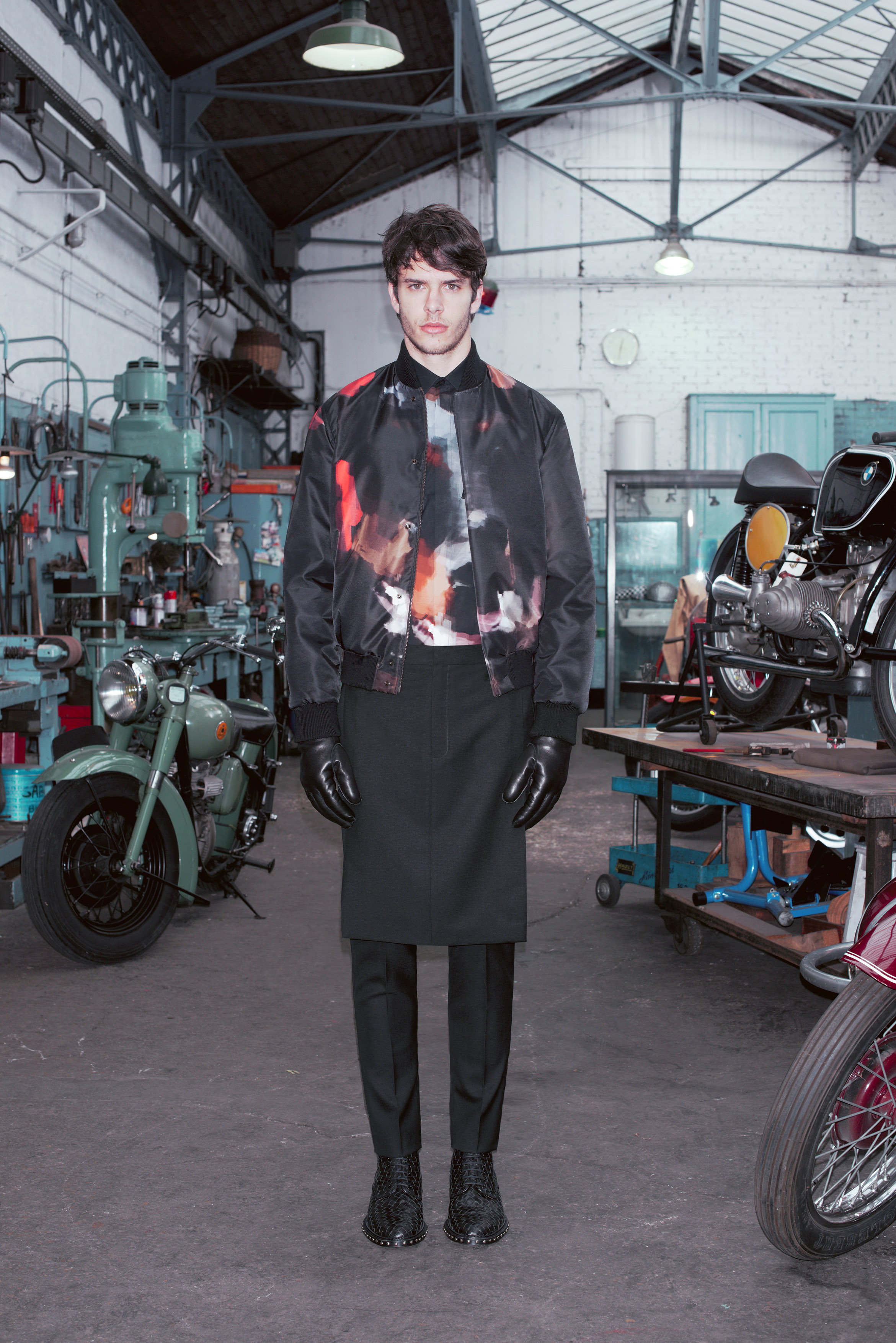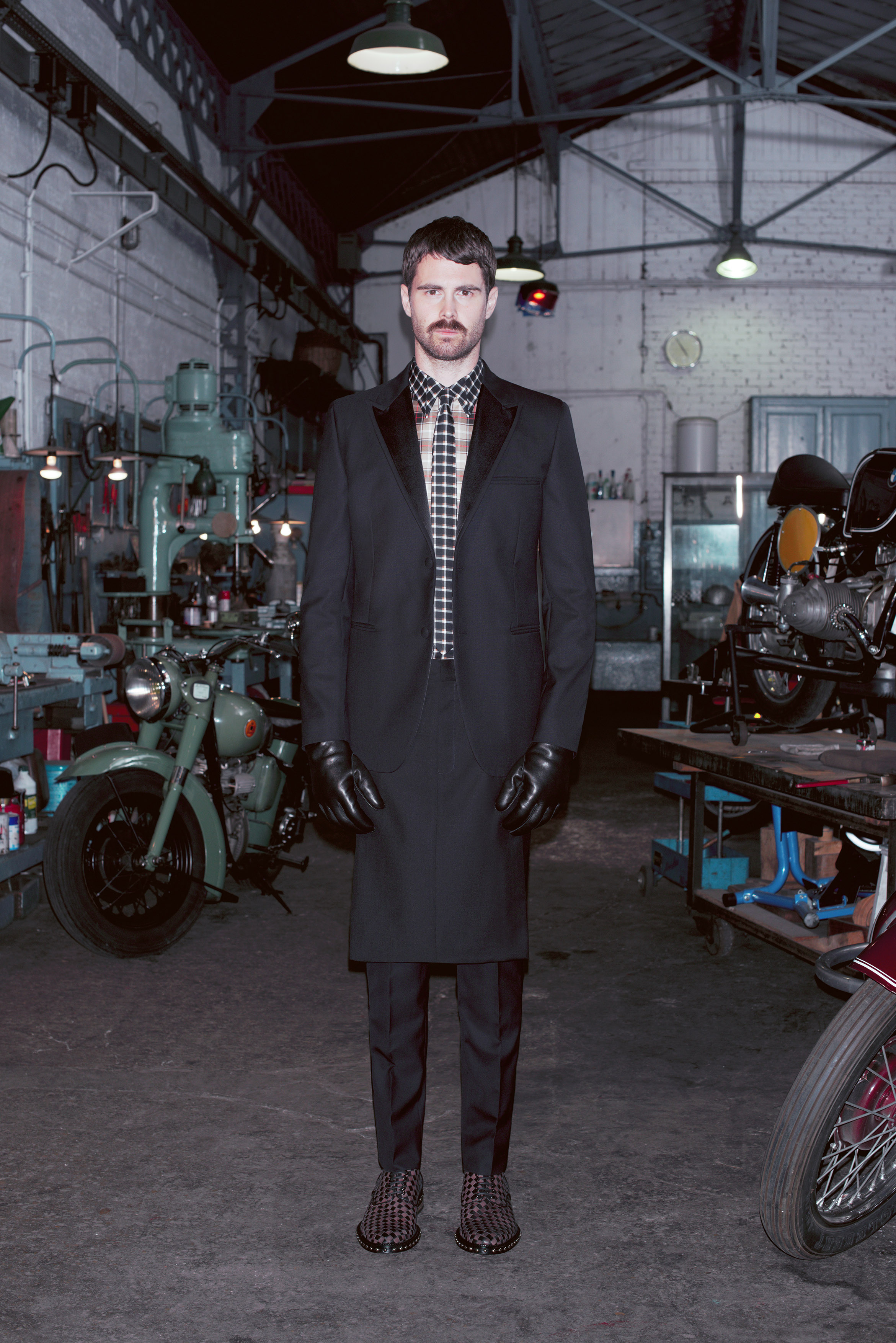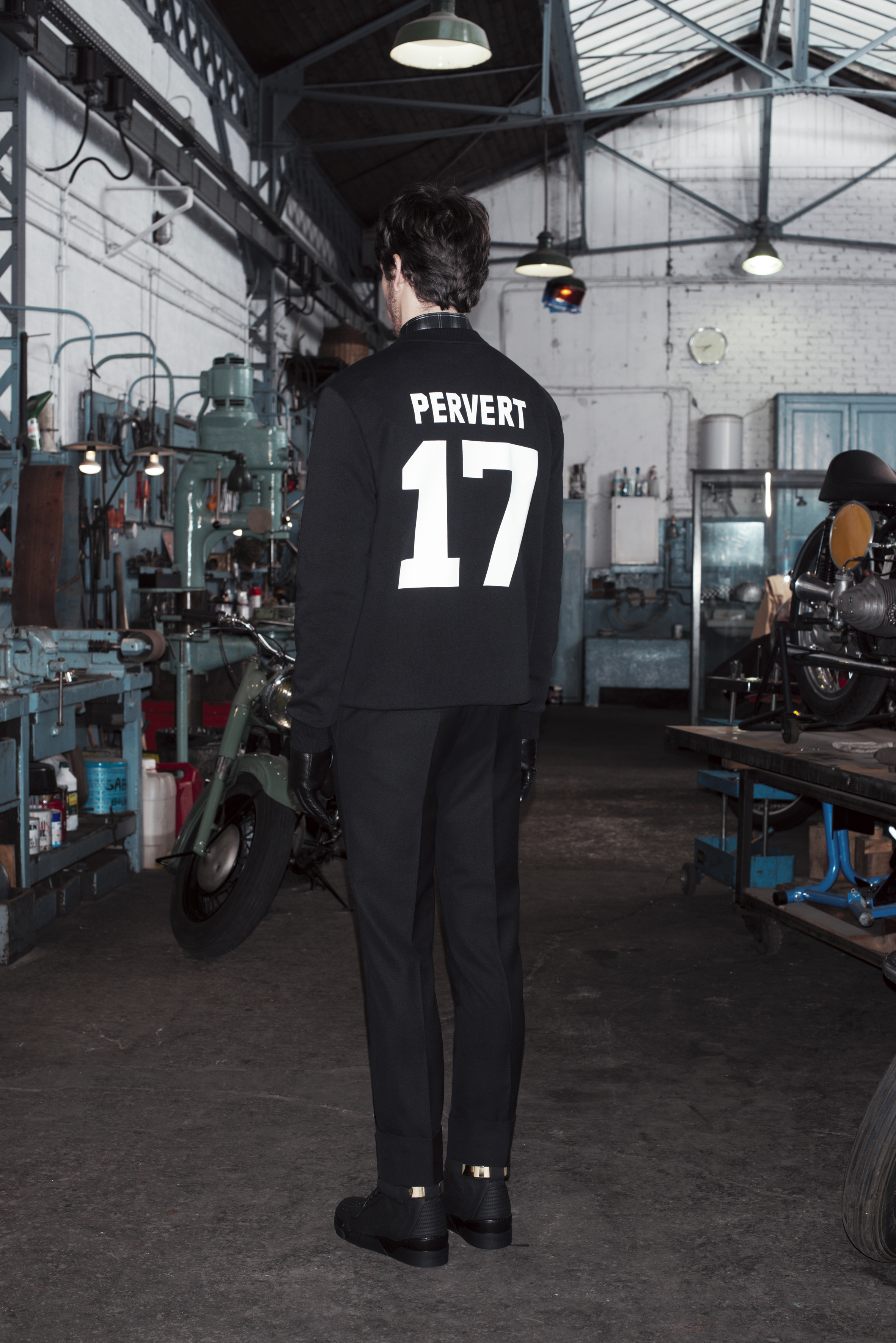 La pré-collection Automne se concentre sur les essentiels du vestiaire masculin. Riccardo Tisci les réinterprètent en leur insufflant ses obsessions : imprimés élaborés, carreaux exclusifs, contraste de matières et découpes recherchées. La collection renforce et développe les éléments caractéristiques de l’homme chez Givenchy, le tout empreint d’une influence de looks iconiques des univers de la moto et des meatpackers new-yorkais.