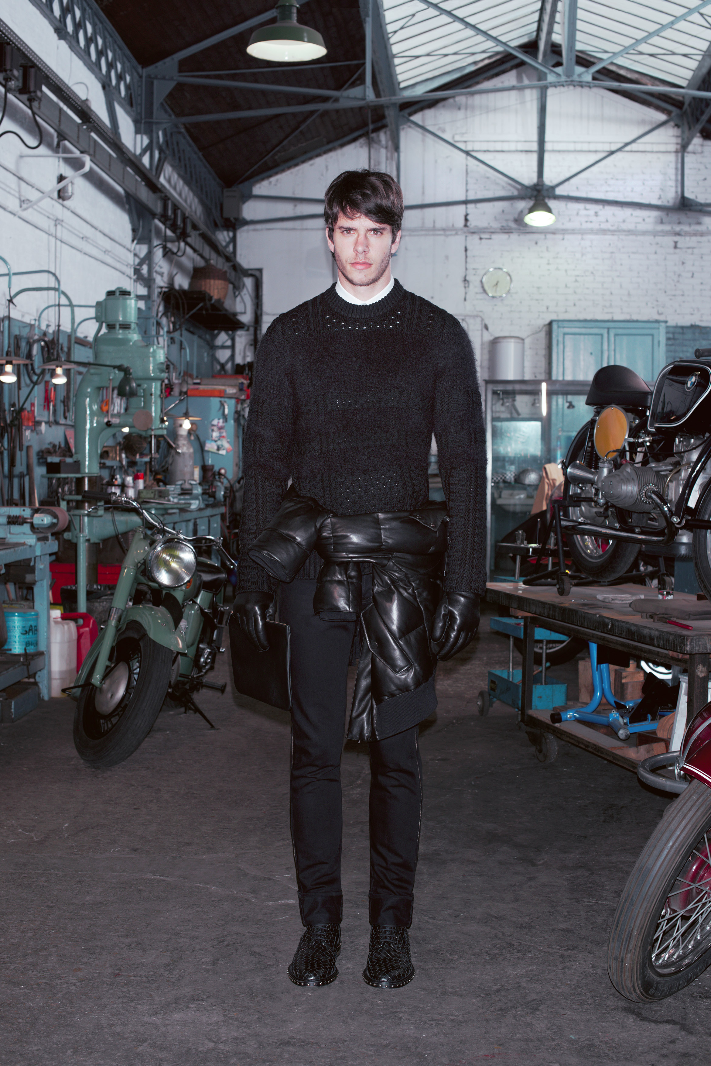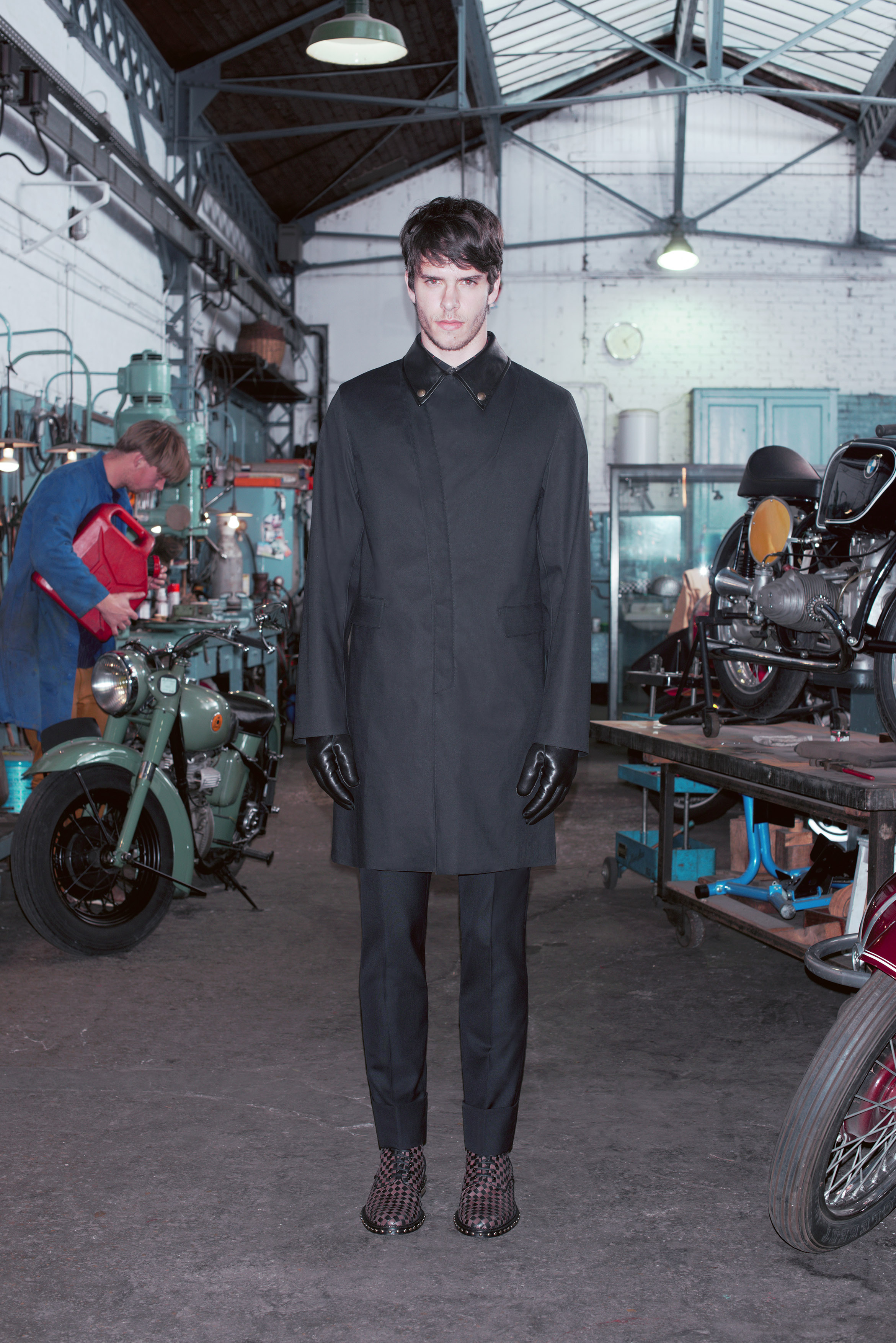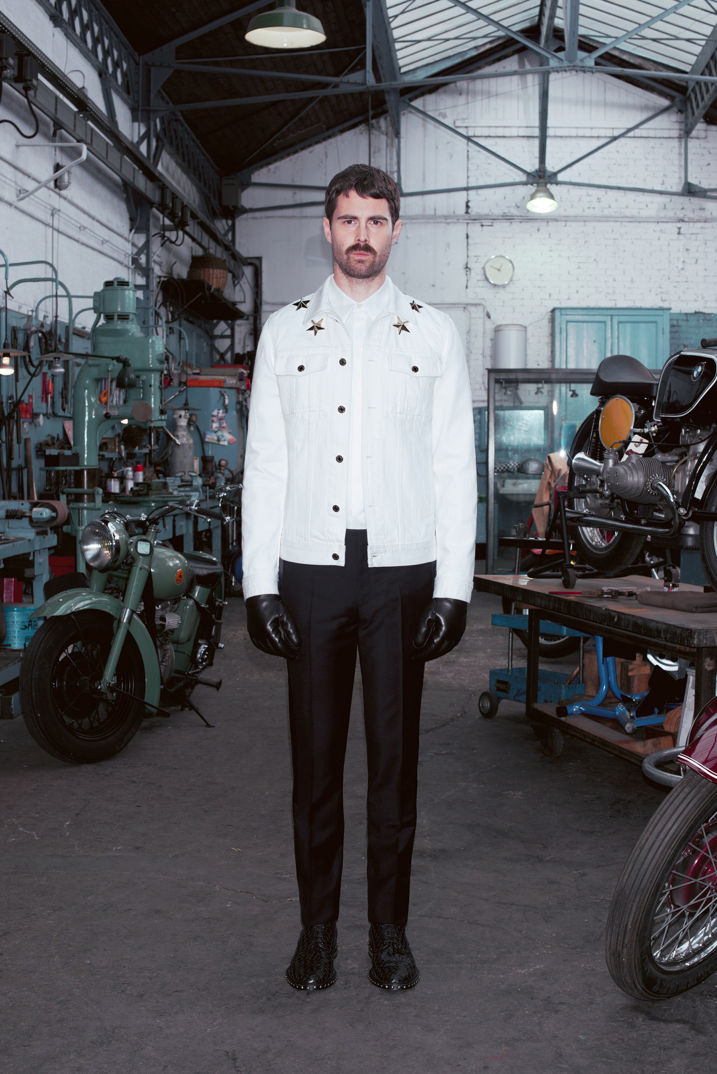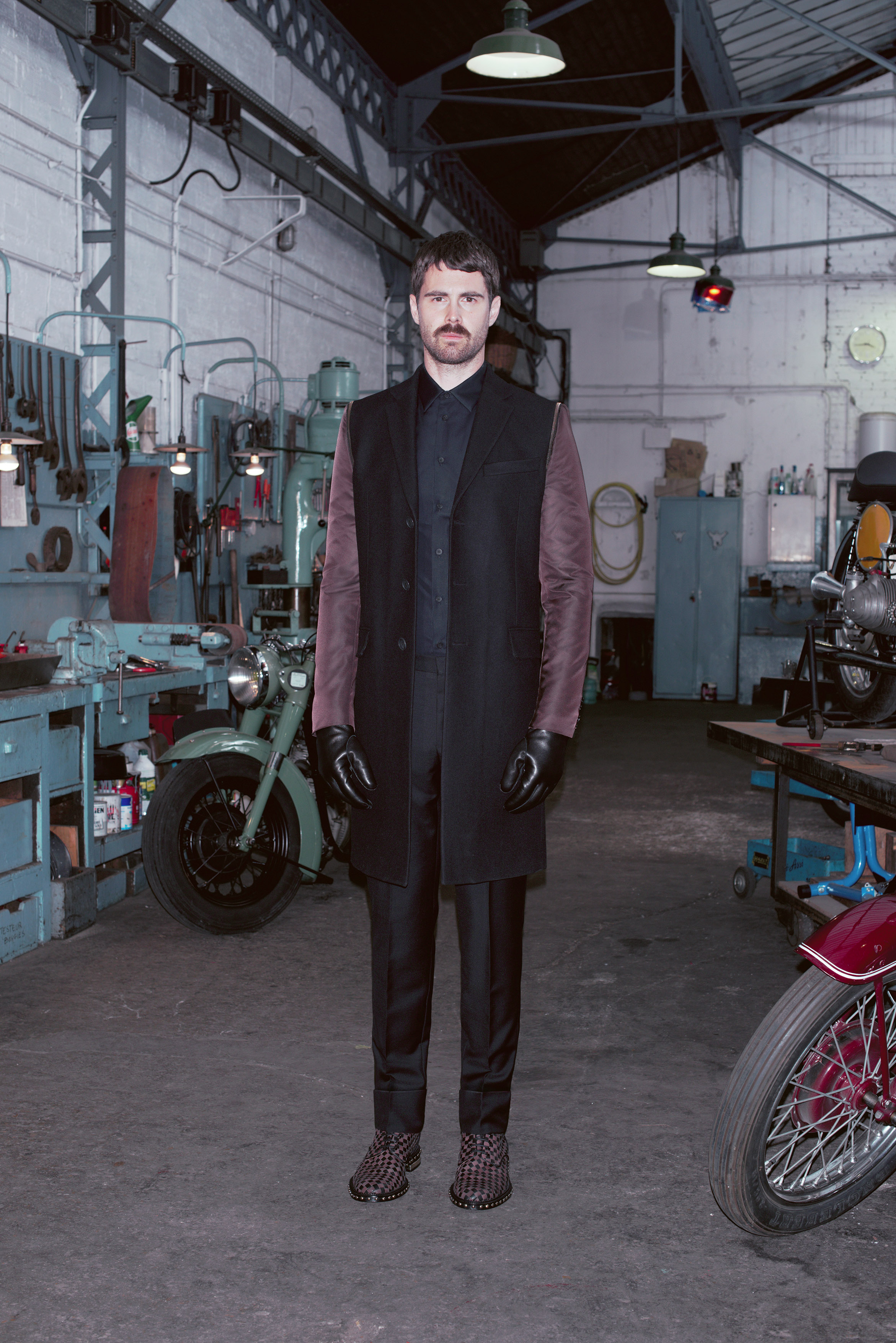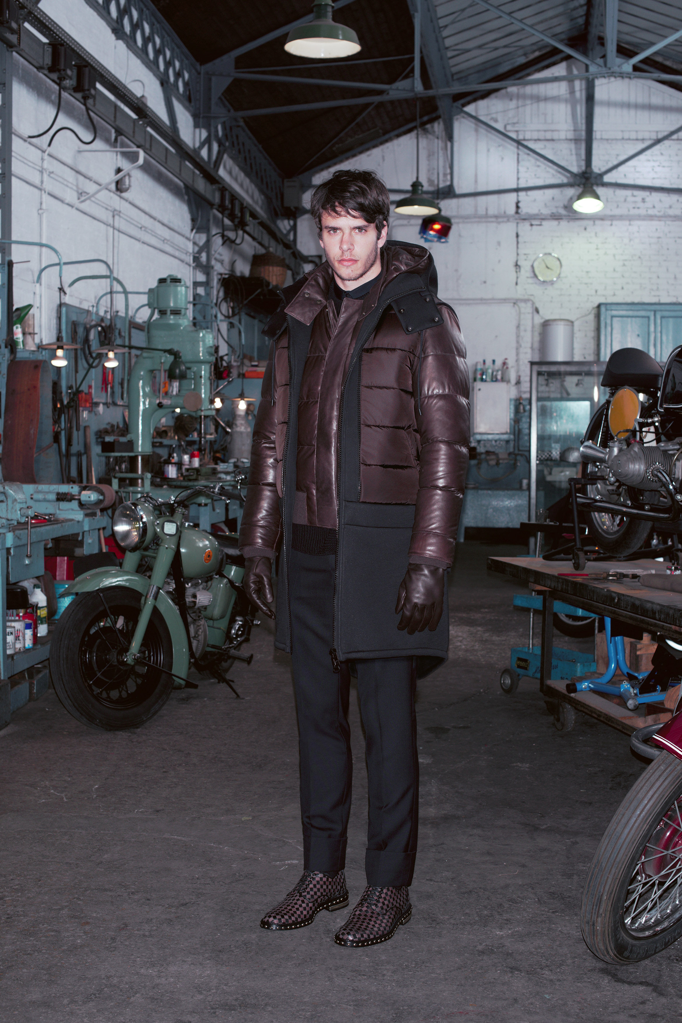 La pré-collection Automne se concentre sur les essentiels du vestiaire masculin. Riccardo Tisci les réinterprètent en leur insufflant ses obsessions : imprimés élaborés, carreaux exclusifs, contraste de matières et découpes recherchées. La collection renforce et développe les éléments caractéristiques de l’homme chez Givenchy, le tout empreint d’une influence de looks iconiques des univers de la moto et des meatpackers new-yorkais.