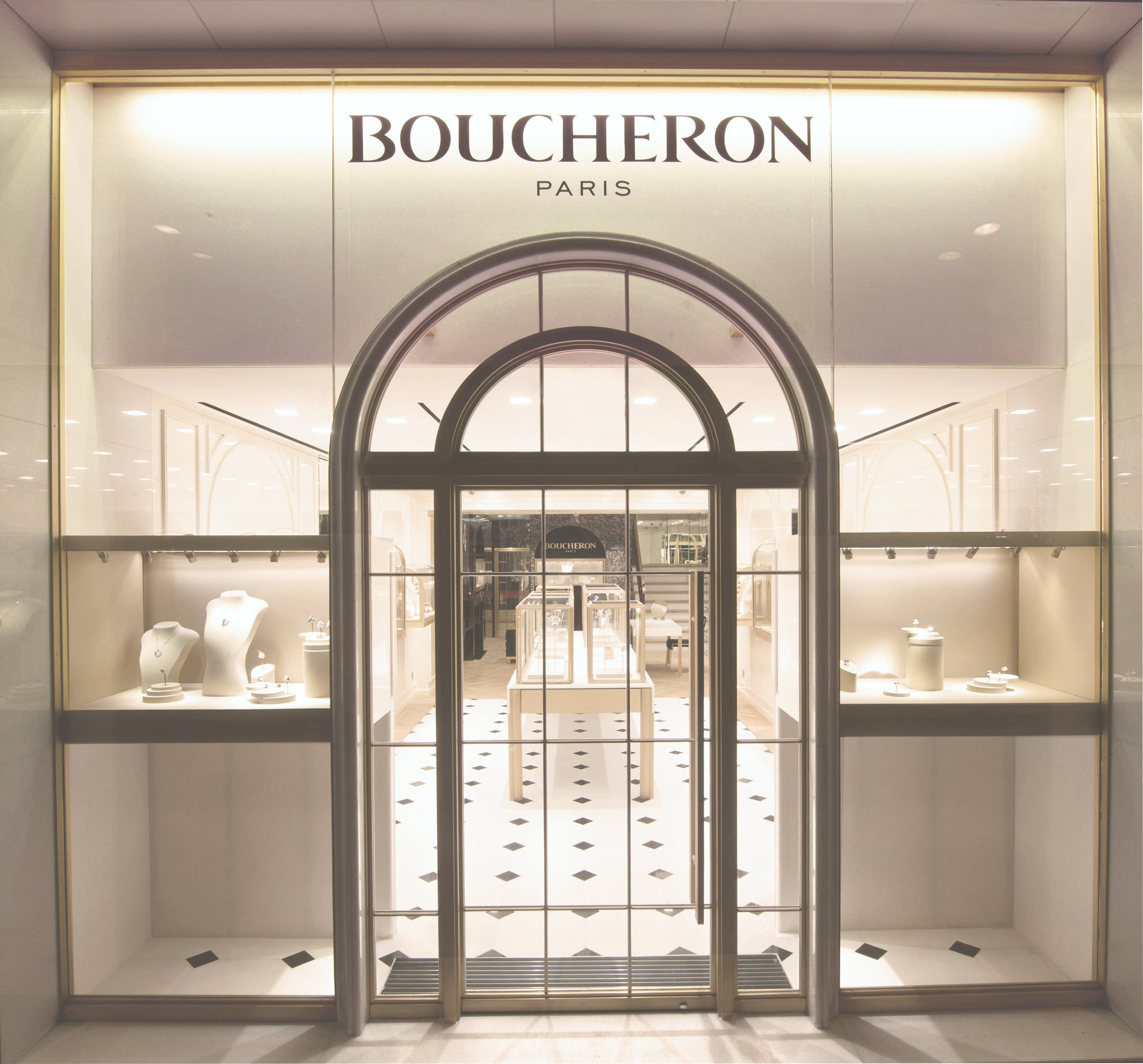 Cette nouvelle boutique a été pensée comme le reflet de l’Hôtel Particulier contemporain de la Maison Boucheron. Du salon de réception où le client est accueilli par le portrait de son fondateur Frédéric Boucheron, aux livres d’arches regorgeant des secrets de la Maison, il est invité à s’immerger dans son univers parisien.