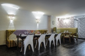 Les chaises des années 50, 60 et 70 côtoient des pièces design contemporaines, le tout scénographié sur 250 m2 dans un restaurant au désordre étudié et pointu.
