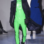 Nicolas Formichetti a choisi d’aller a l’inverse des tendances que nous avons pu observer jusqu’à présent pour l’homme. En effet la tendance étant aux couleurs naturellse pour la prochaine saison, les looks électrisants et électriques de chez Mugler sortent de l’ordinaire.