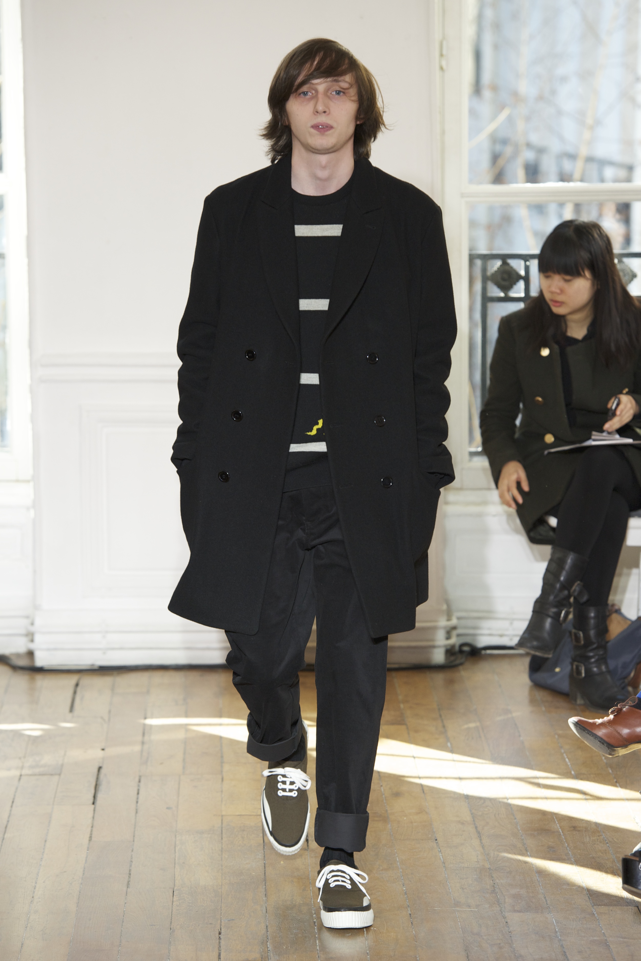 Ainsi pas de grande ostentation au niveau de la palette de couleurs : le noir et le gris sont omniprésents et gage d’un chic décontracté et assumé. Tartans et rayures horizontales sont aussi au rendez-vous chez Julien David qui on l’a compris aura préféré revisiter les classiques du menswear en y ajoutant sa personal touch, une touche fraîche et de délicates surprises, notamment en ce qui concerne les formes et les matières, étant ainsi l’incarnation d’un style ou la technique est en fait la véritable preuve de talent.