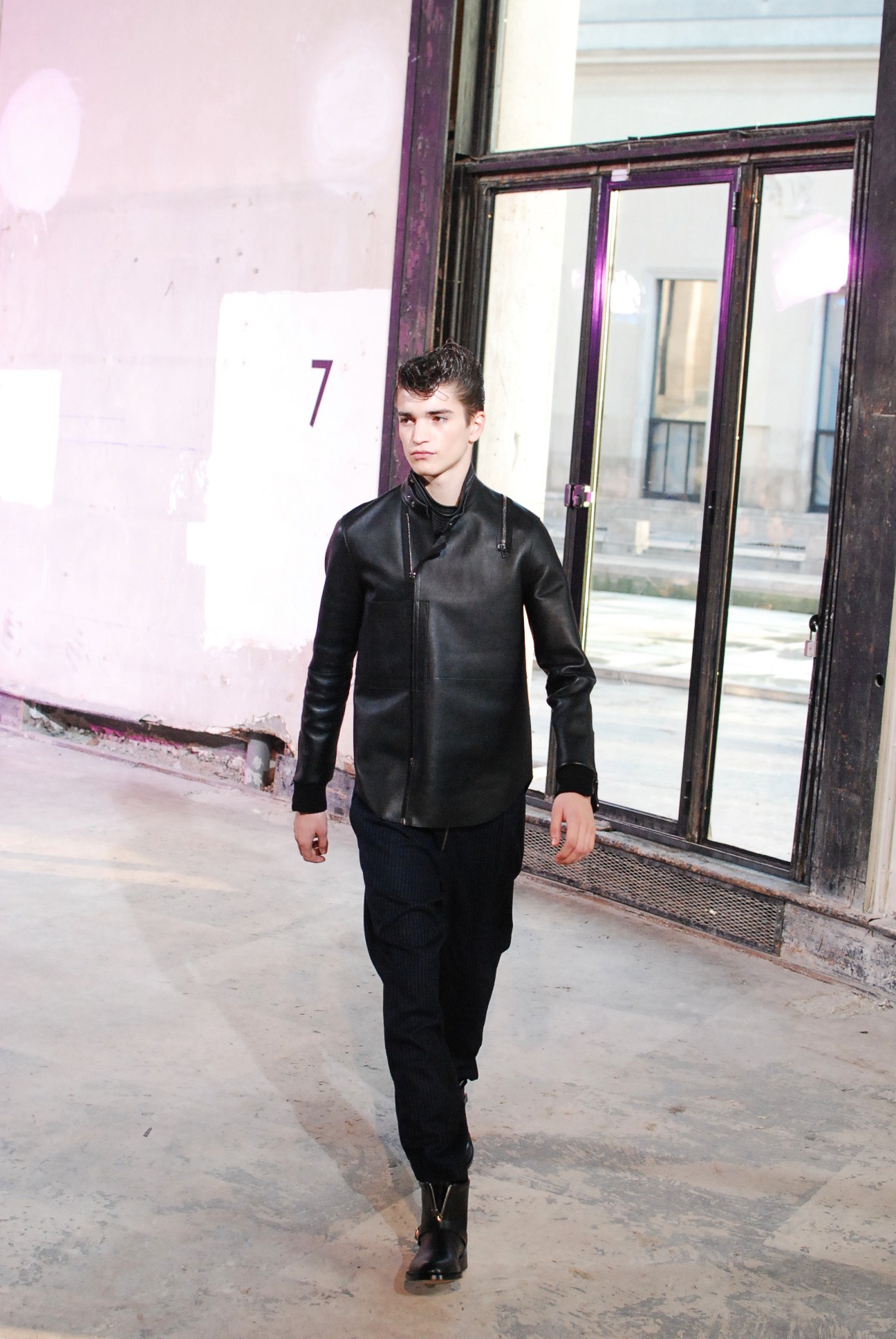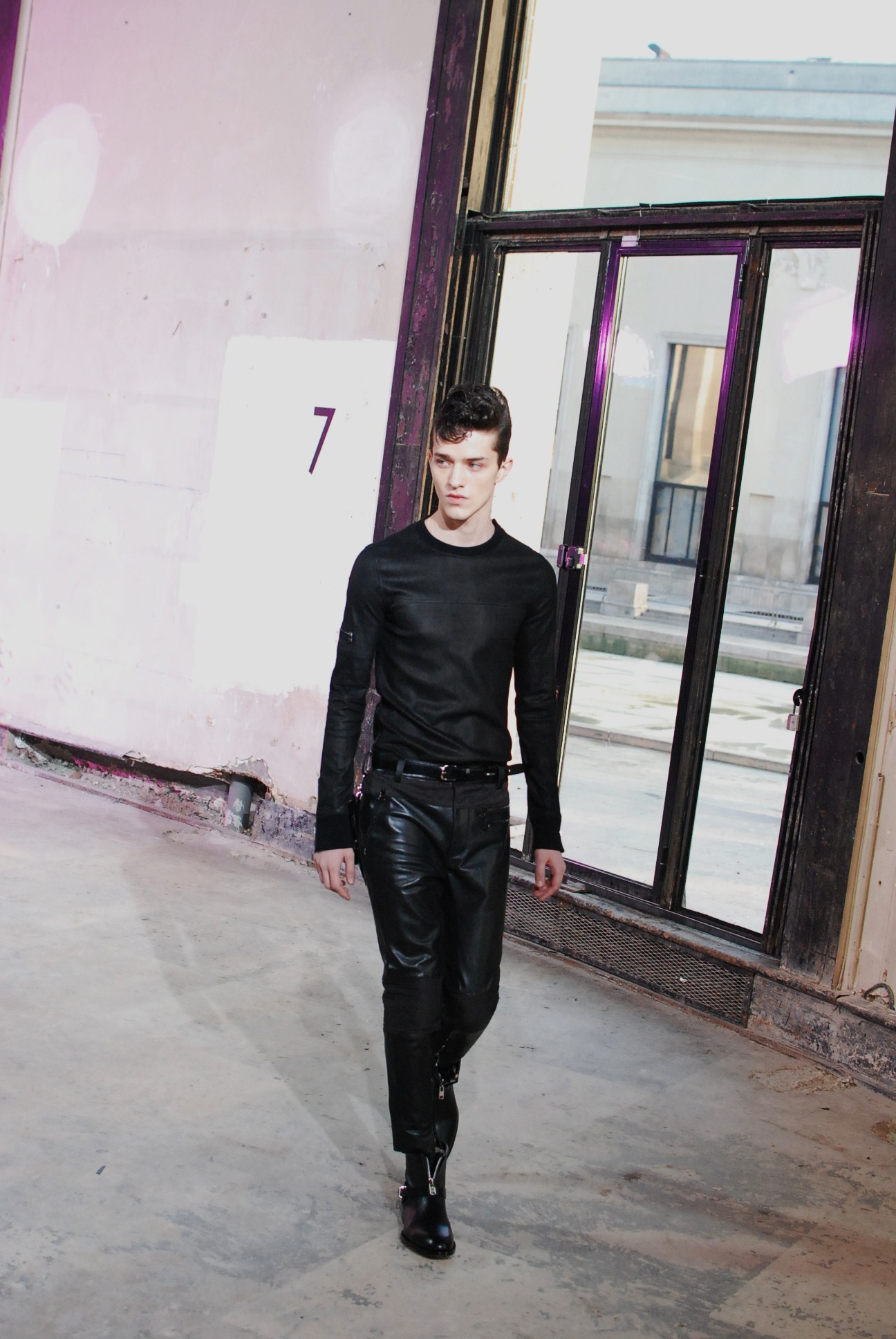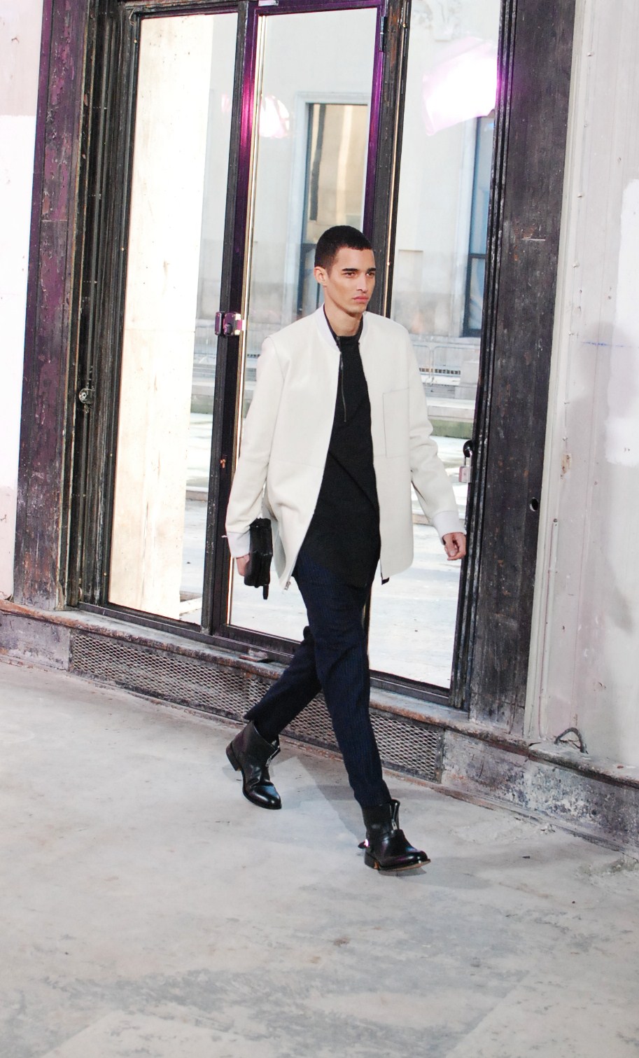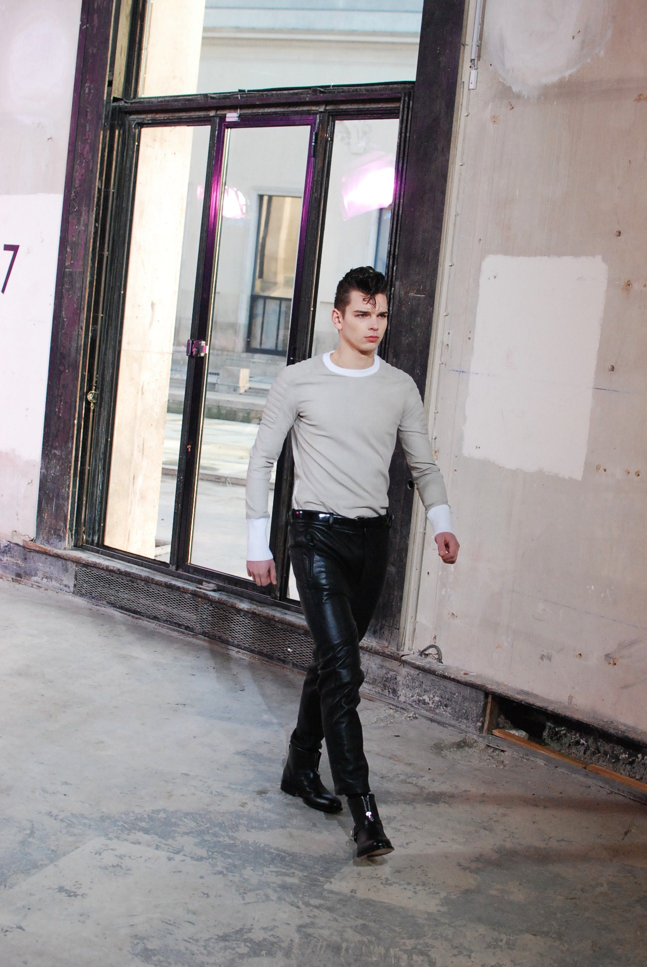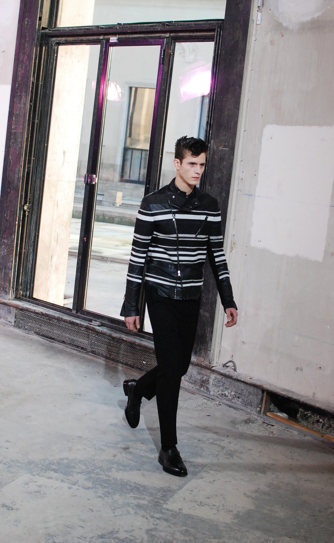 Une fois de plus au Palais de Tokyo, le créateur a choisi d’honorer la mouvance des café racers, contreculture de motocyclistes des années 60 se distinguant par leur style rétro, leur mode de vie sans attache si ce n’est a la musique rockabilly et a la route.