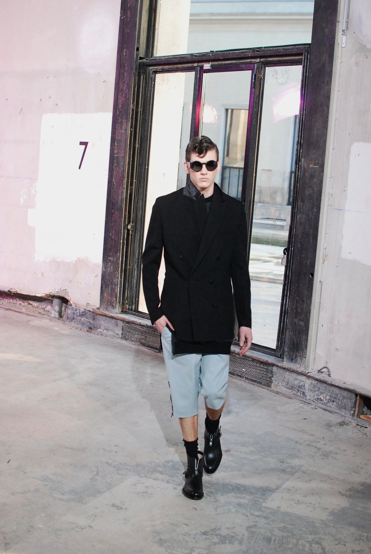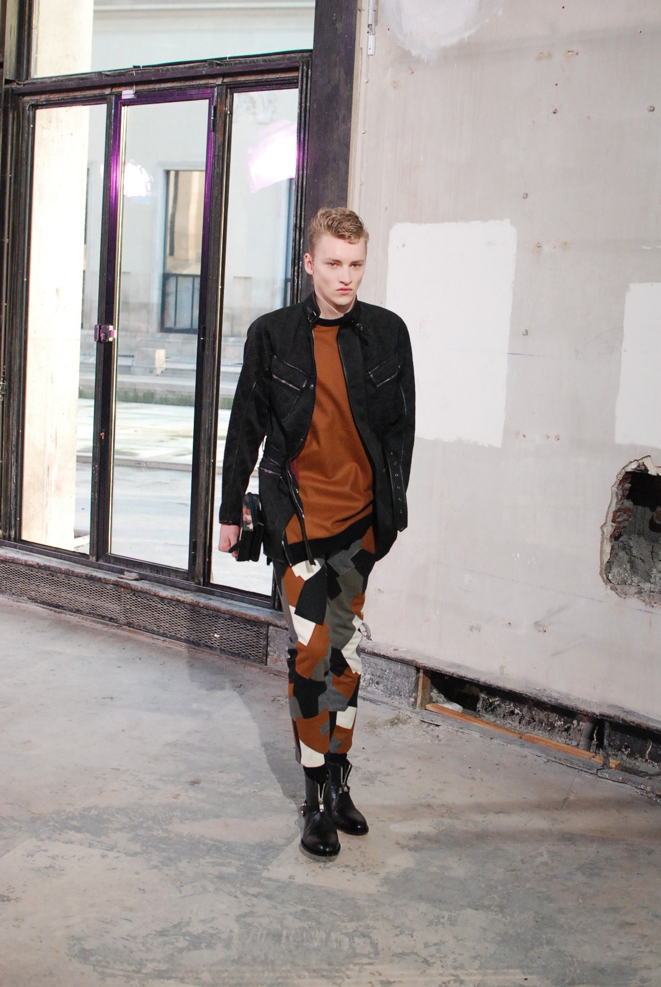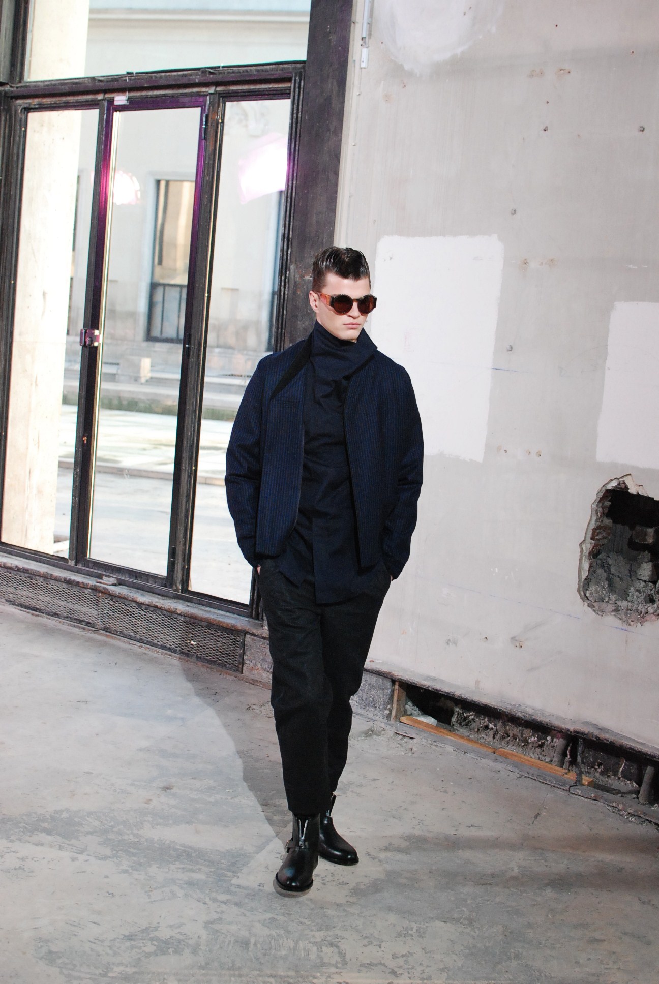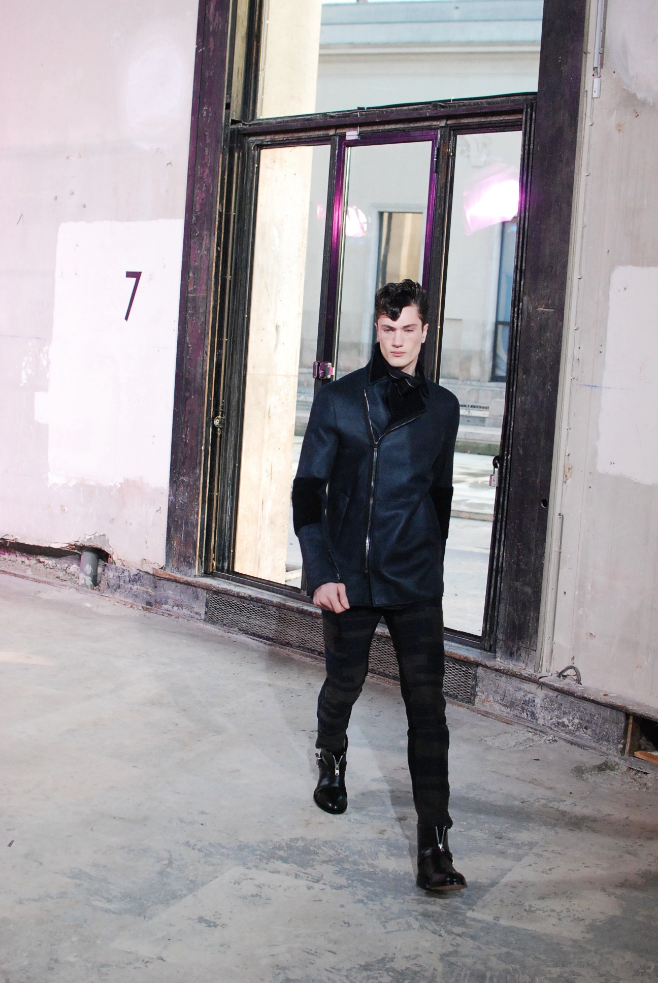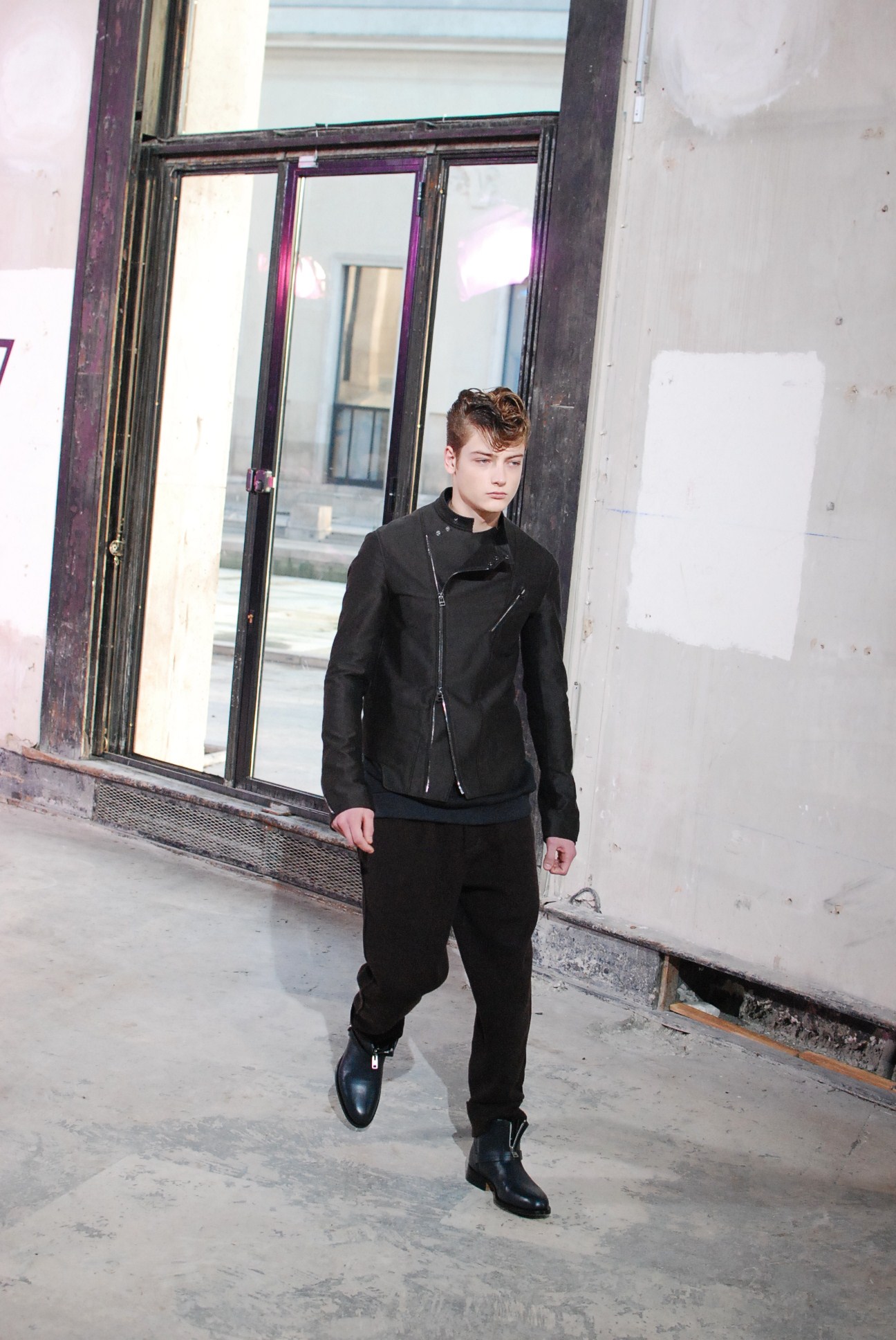Une fois de plus au Palais de Tokyo, le créateur a choisi d’honorer la mouvance des café racers, contreculture de motocyclistes des années 60 se distinguant par leur style rétro, leur mode de vie sans attache si ce n’est a la musique rockabilly et a la route.