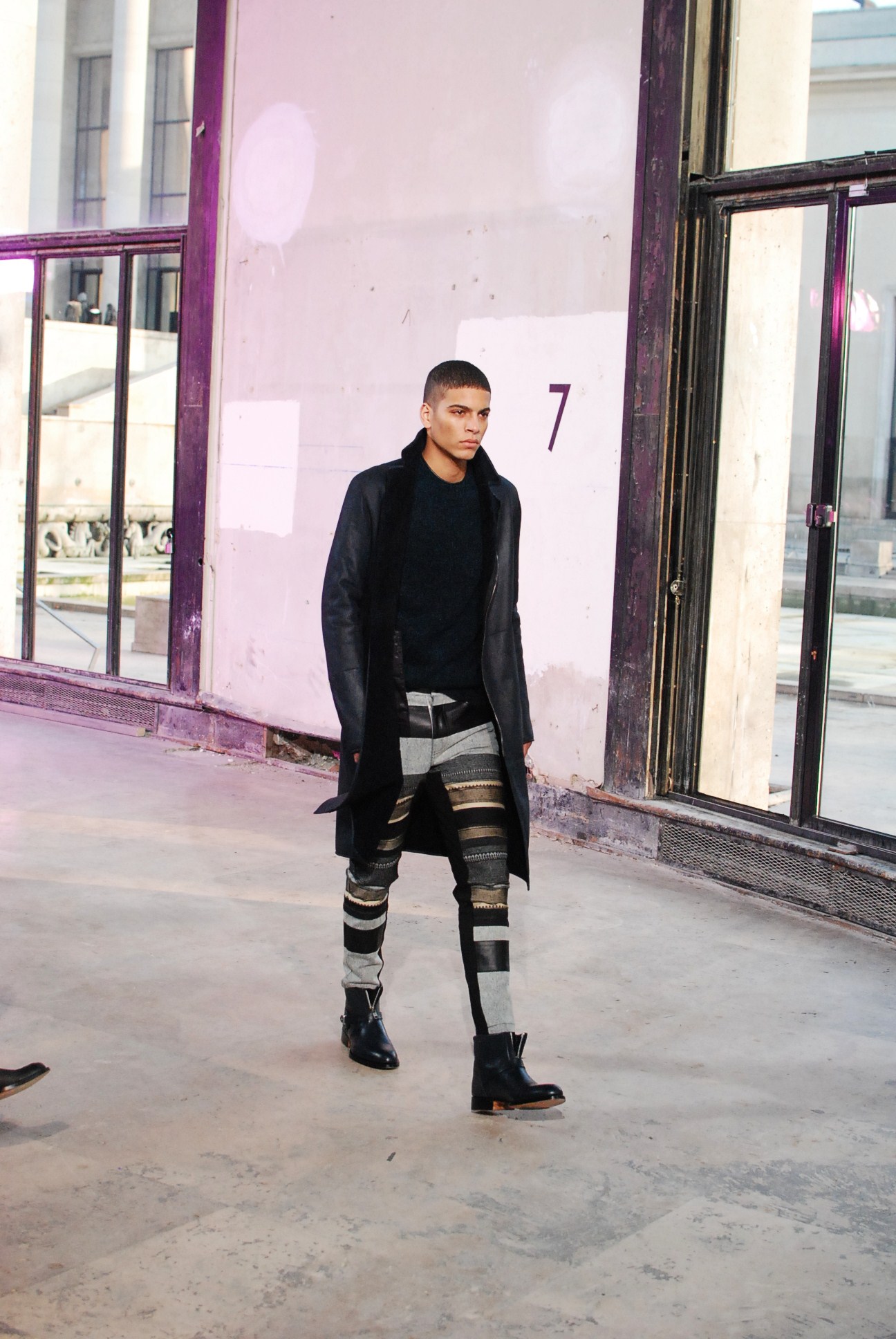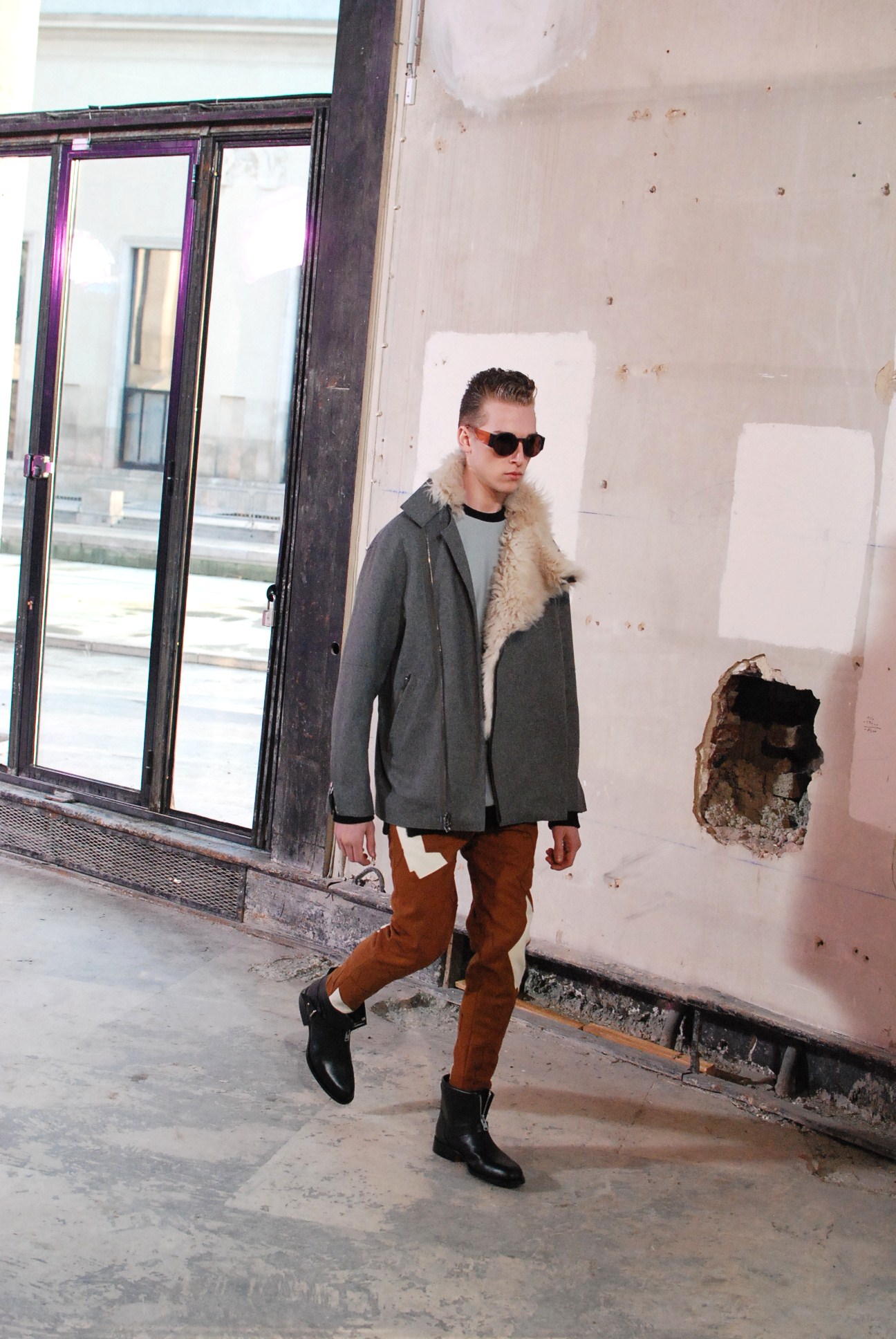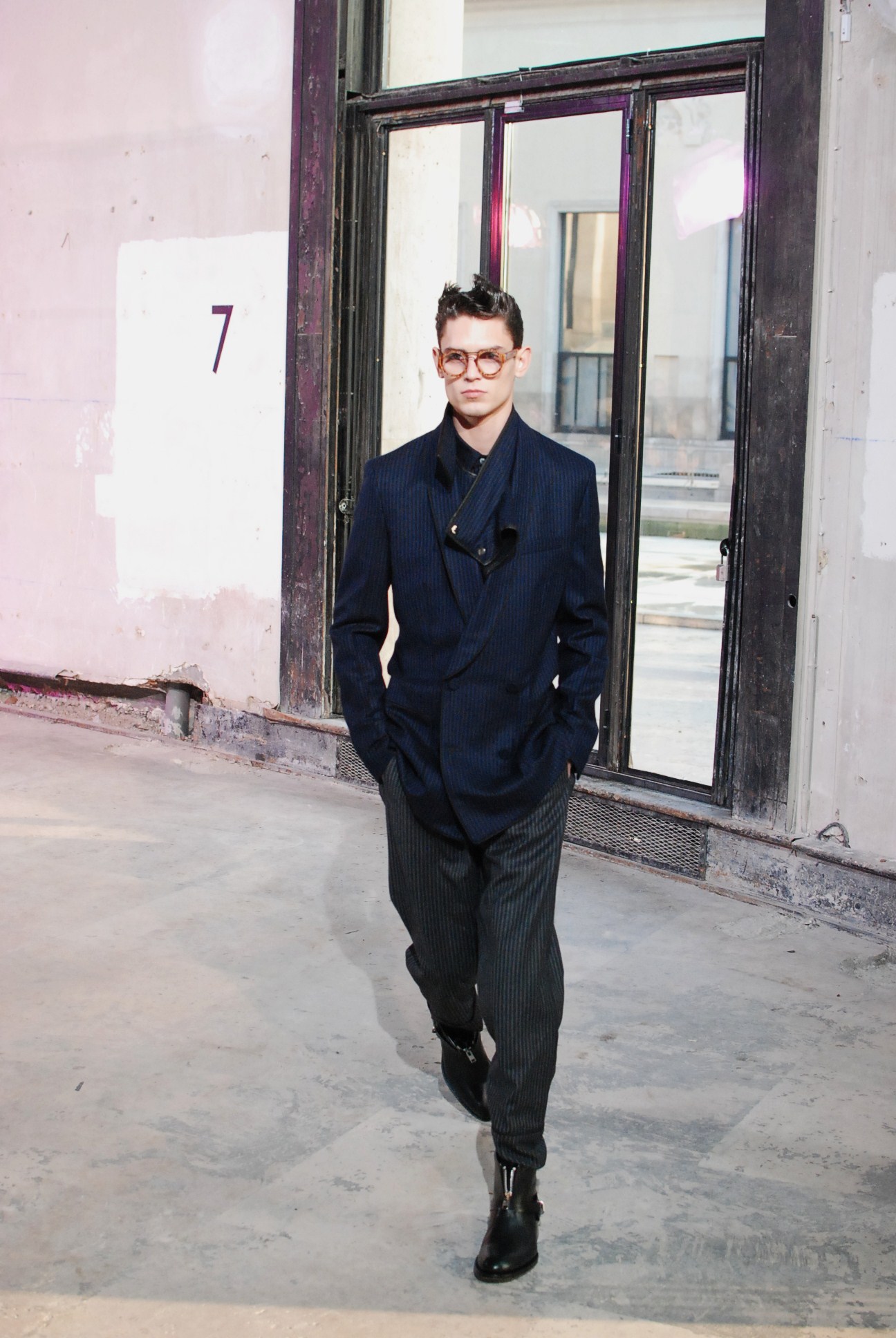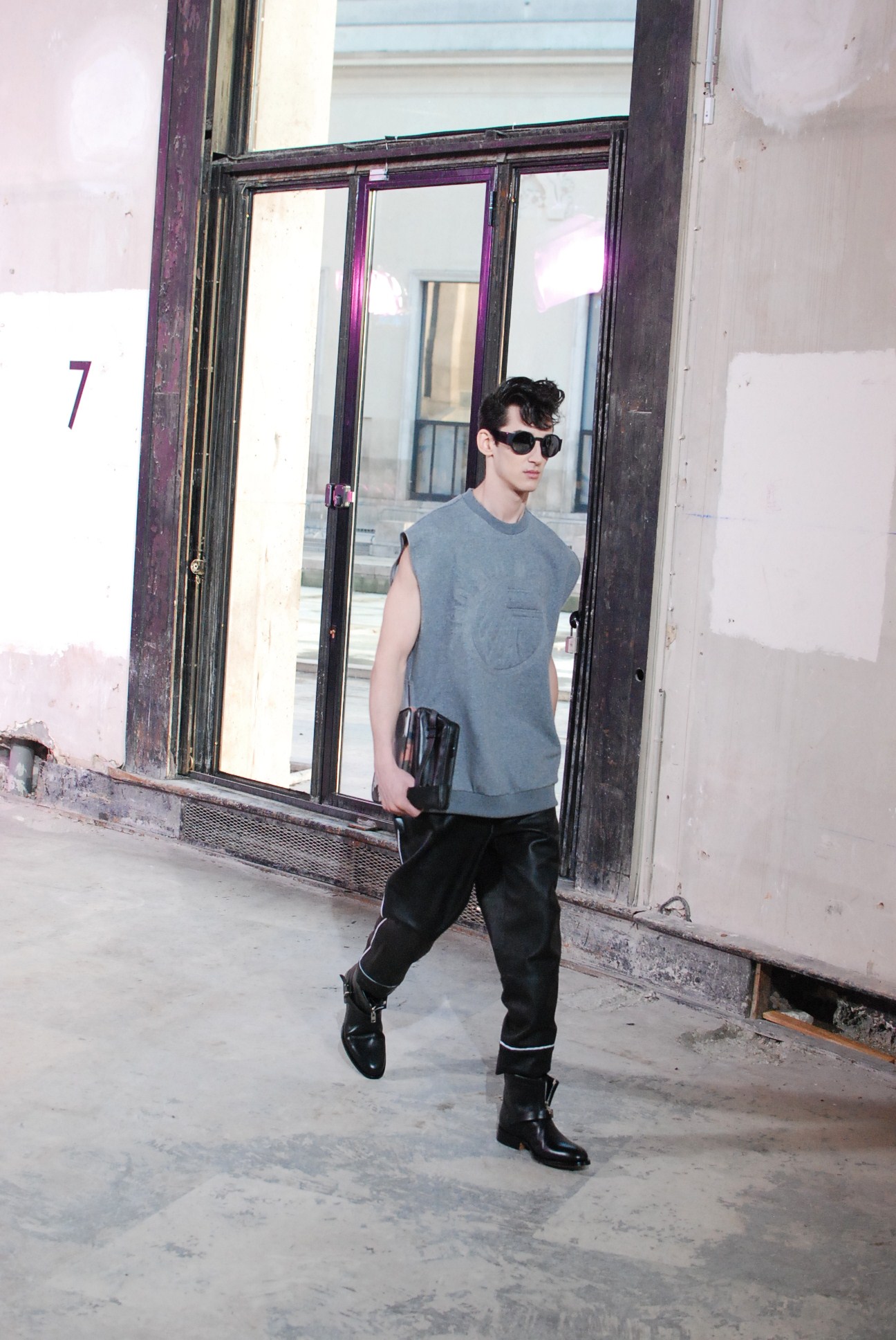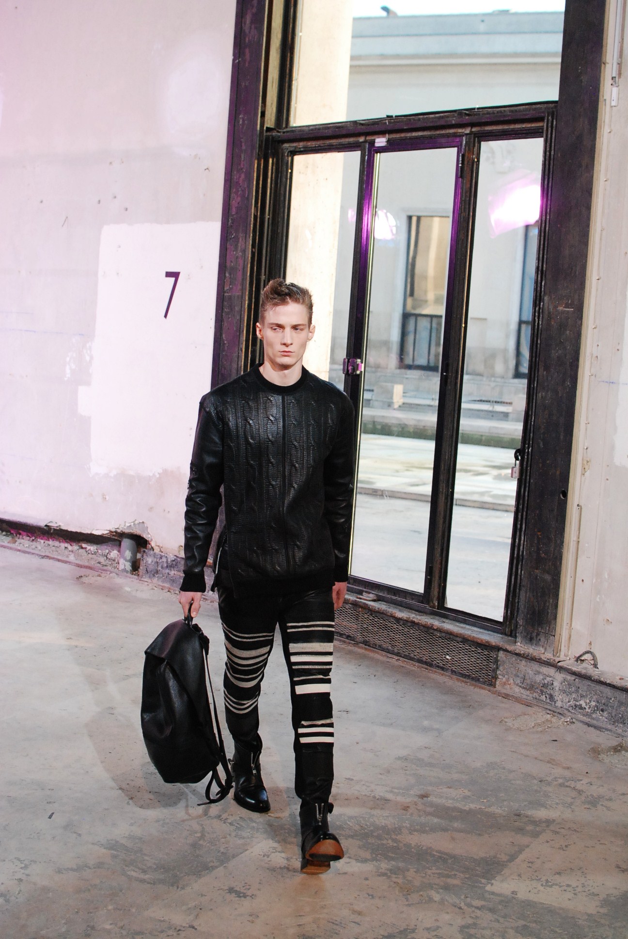 Une fois de plus au Palais de Tokyo, le créateur a choisi d’honorer la mouvance des café racers, contreculture de motocyclistes des années 60 se distinguant par leur style rétro, leur mode de vie sans attache si ce n’est a la musique rockabilly et a la route.