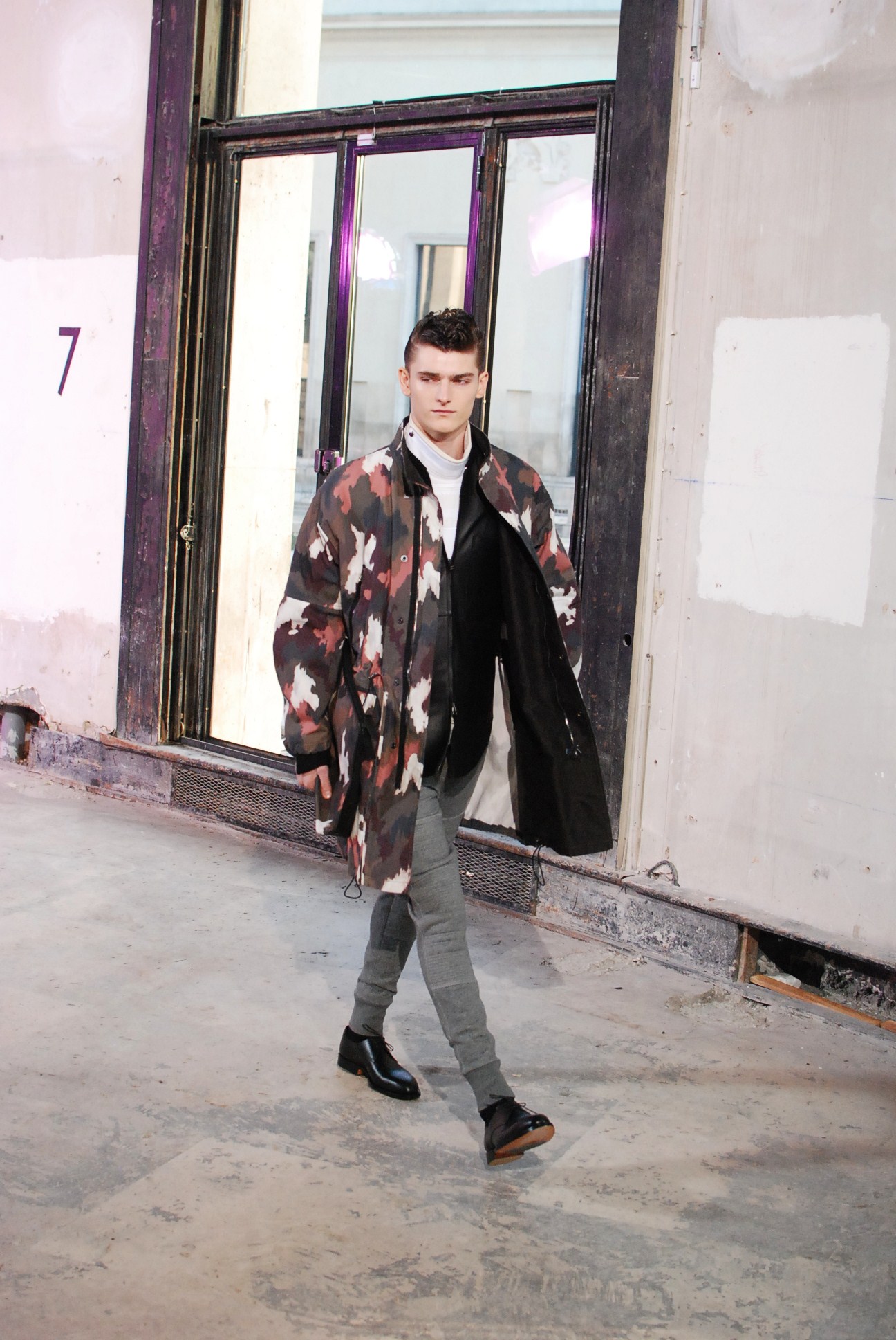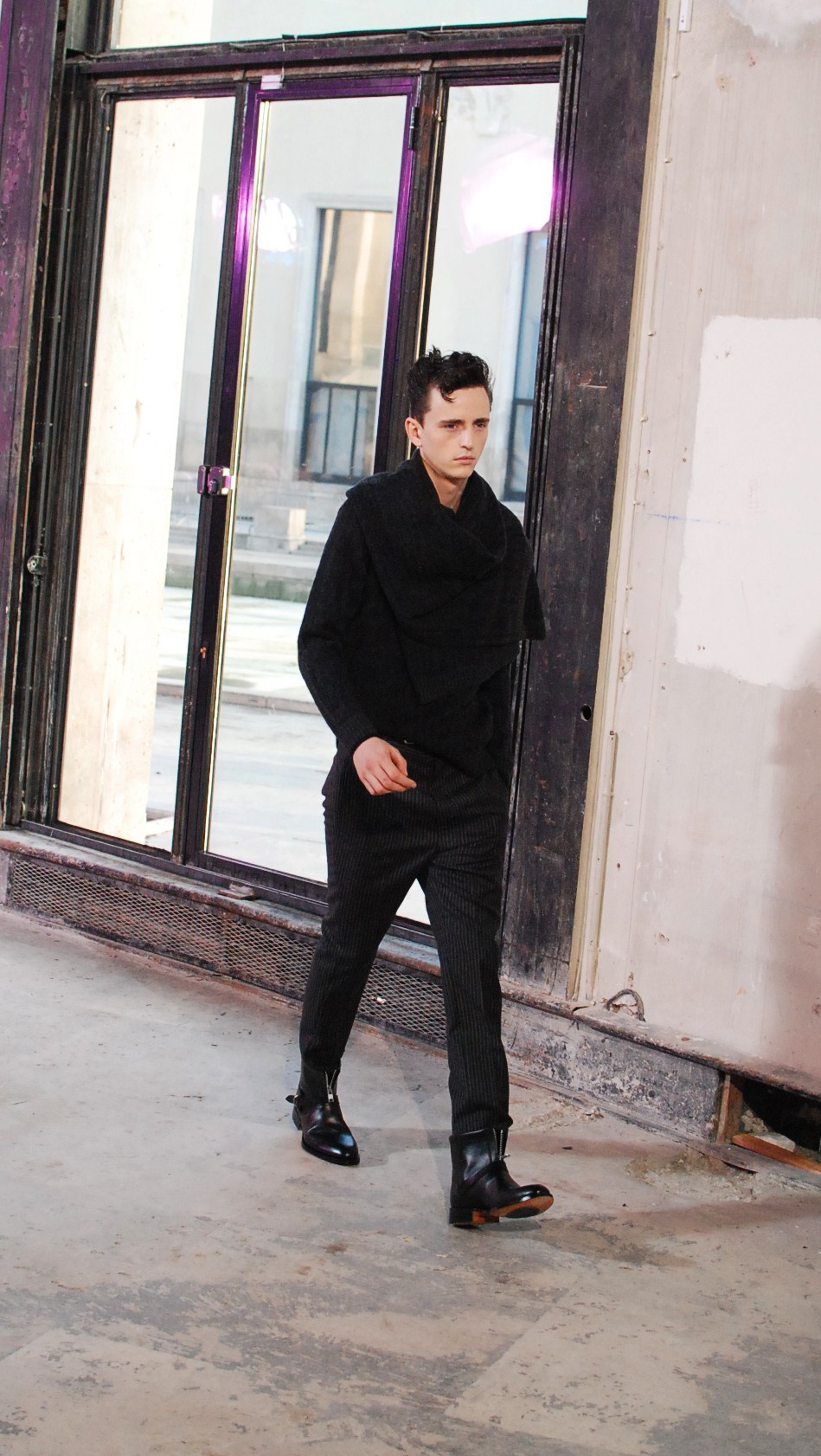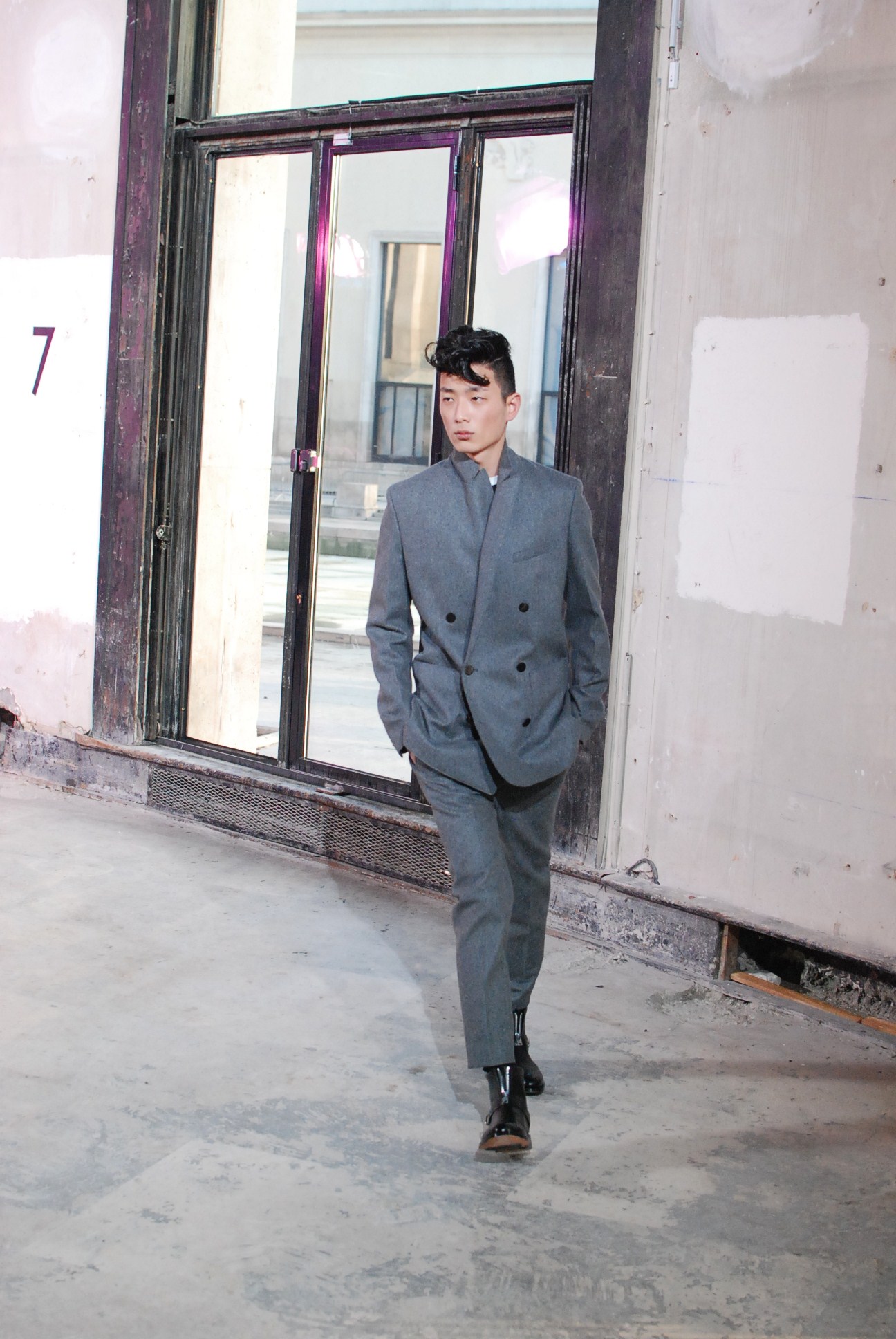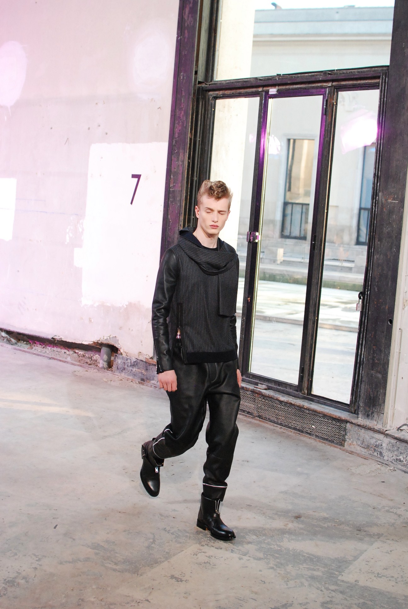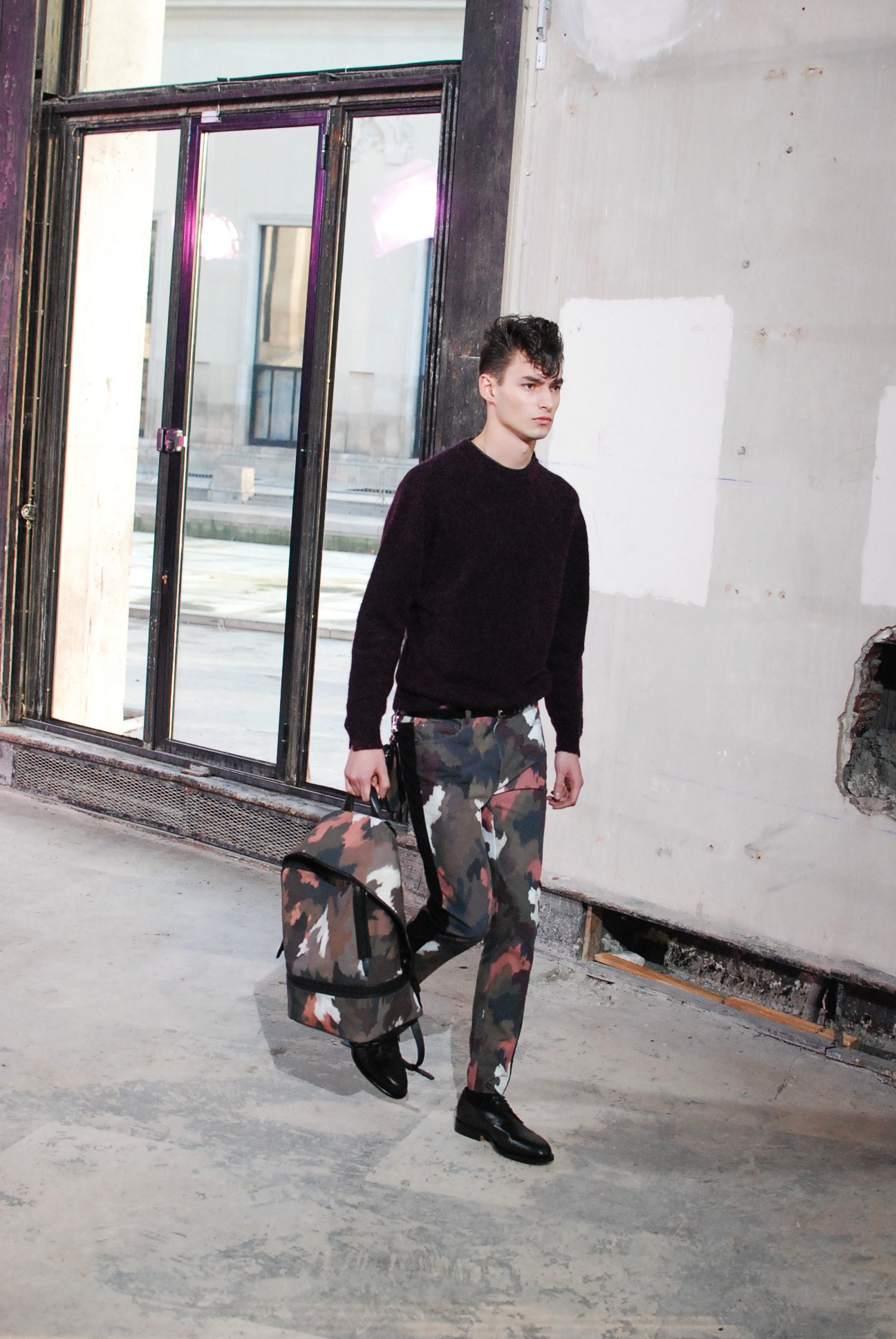 Une fois de plus au Palais de Tokyo, le créateur a choisi d’honorer la mouvance des café racers, contreculture de motocyclistes des années 60 se distinguant par leur style rétro, leur mode de vie sans attache si ce n’est a la musique rockabilly et a la route.