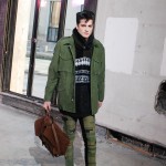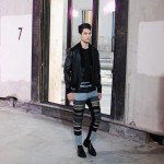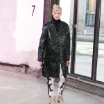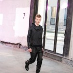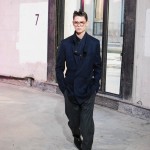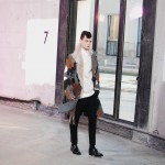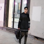 Ouvrant le defile sur des looks noir en nubuck a formes géométriques, c’est tout l’esprit de ces motards d’un genre particulier que l’on retrouve chez 3.1 Phillip Lim. Des teintes sombres telles que le noir et le gris accompagnent ces looks de rockers non sans une pointe d’intelligence qui est la signature des vêtements 3.1 Phillip Lim. On a ainsi l’occasion de voir des vestes ou le cuir est travaillé de façon a rappeler le tricot des pulls, ce qui nuance l’aspect quelque peu brut des inspirations et l’adoucit sans lui faire perdre, pour autant, son cachet originel.