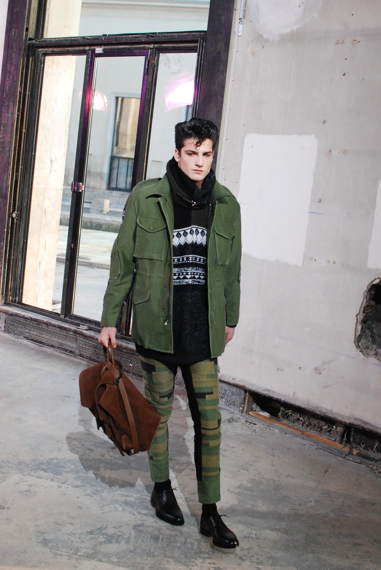 Les rayures et les teintes qui nous rappelle la nature sont mises en avant, les bandes de nubuck sont utilisées a foison a la manière d’un patchwork imitant l’imprimé militaire mais aussi en rayures. Les zips, que l’on retrouvaient déjà la saison passée, répondent toujours a l’appel, le thème de cette collection s’y prêtant volontiers.