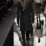 D’abord sage et preppy avec de longs manteaux et des trenches dans des teintes de gris et de beige, l’exotisme de ses découvertes ne tardent pas a s’imprimer sur ses vêtements, notamment au travers de col en fourrure aux imprimés leopard ou de riches cuirs.
