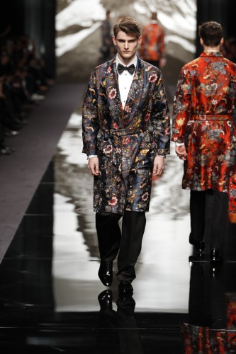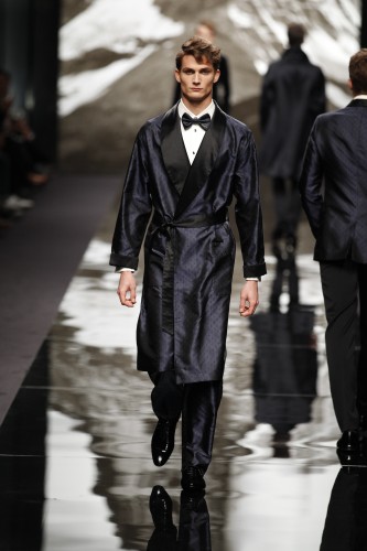 Fin de l’ascension, réalisation d’un rêve, le gentleman Louis Vuitton célèbre son entrée dans le club très fermé de ceux qui ont réussi a escalader sur le toit du monde. L’heure est a la fête et aux costumes de rigueur, non sans une certaine nostalgie de son voyage qui nous est rappelé par les imprimés traditionnels du Bouthan sur la maroquinerie, le blazers ainsi que les peignoirs.