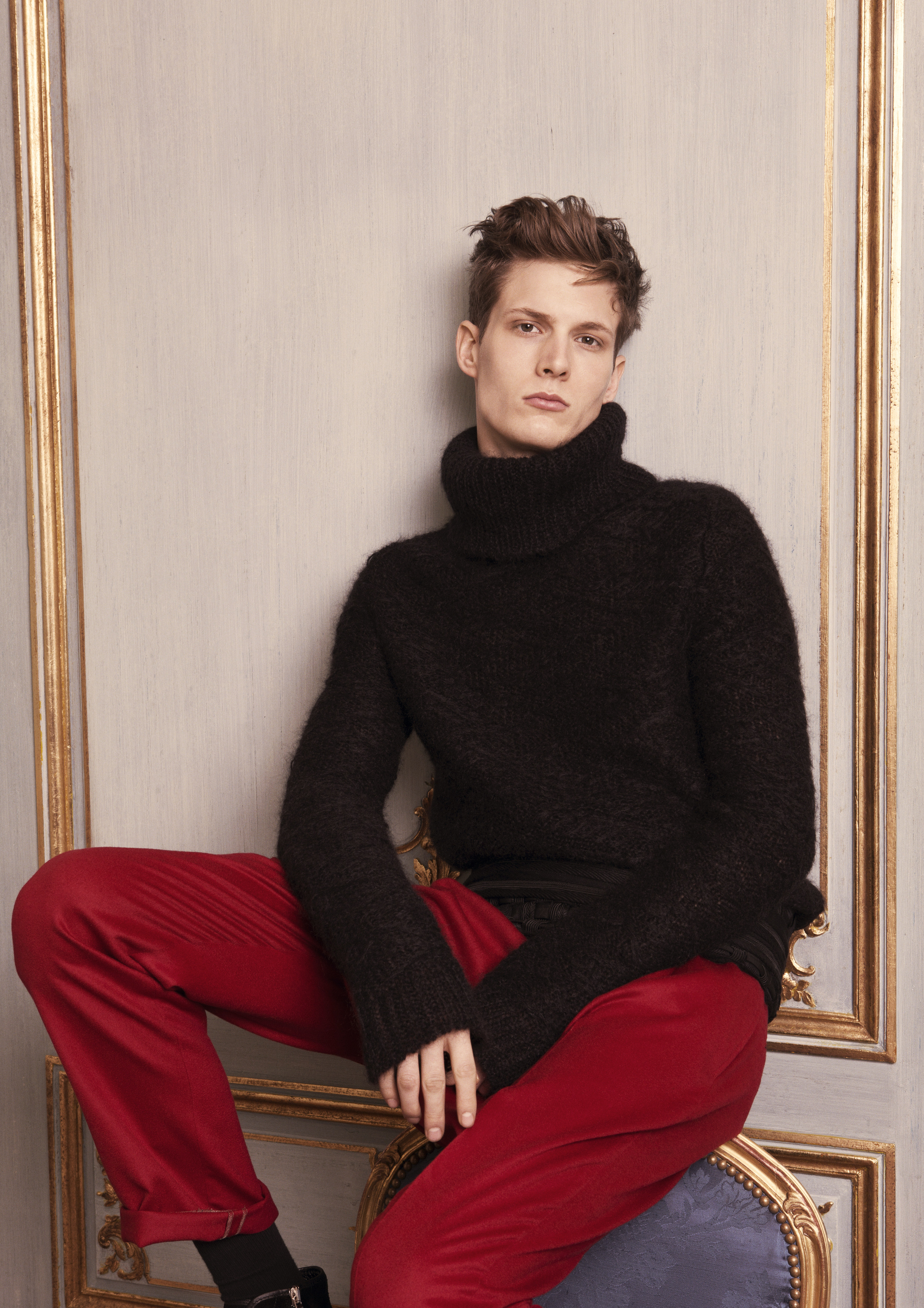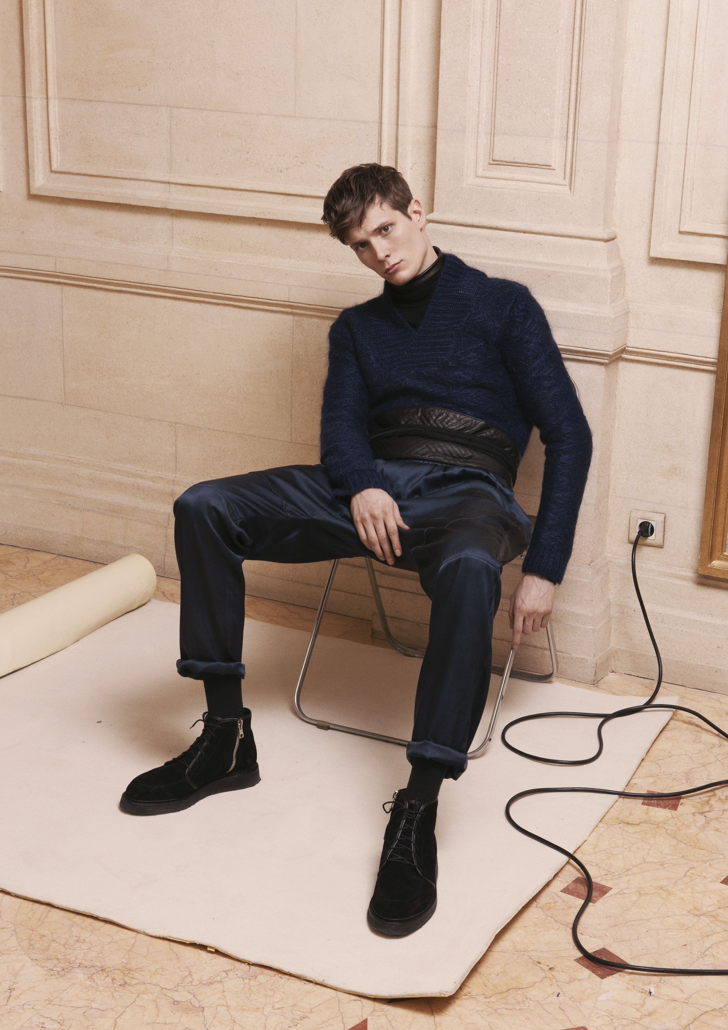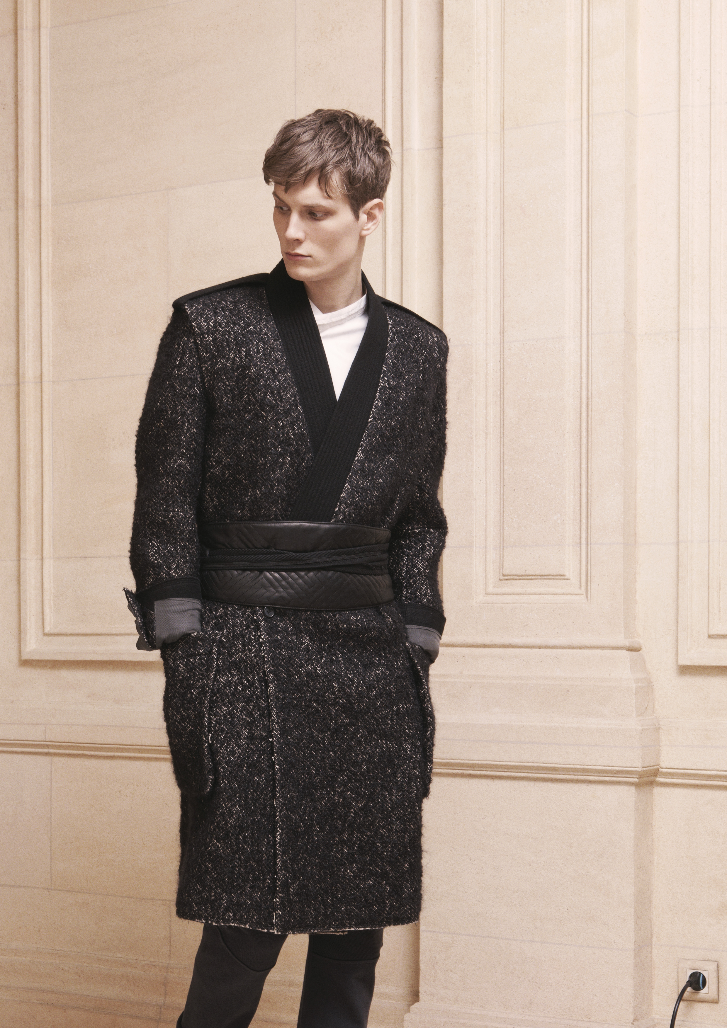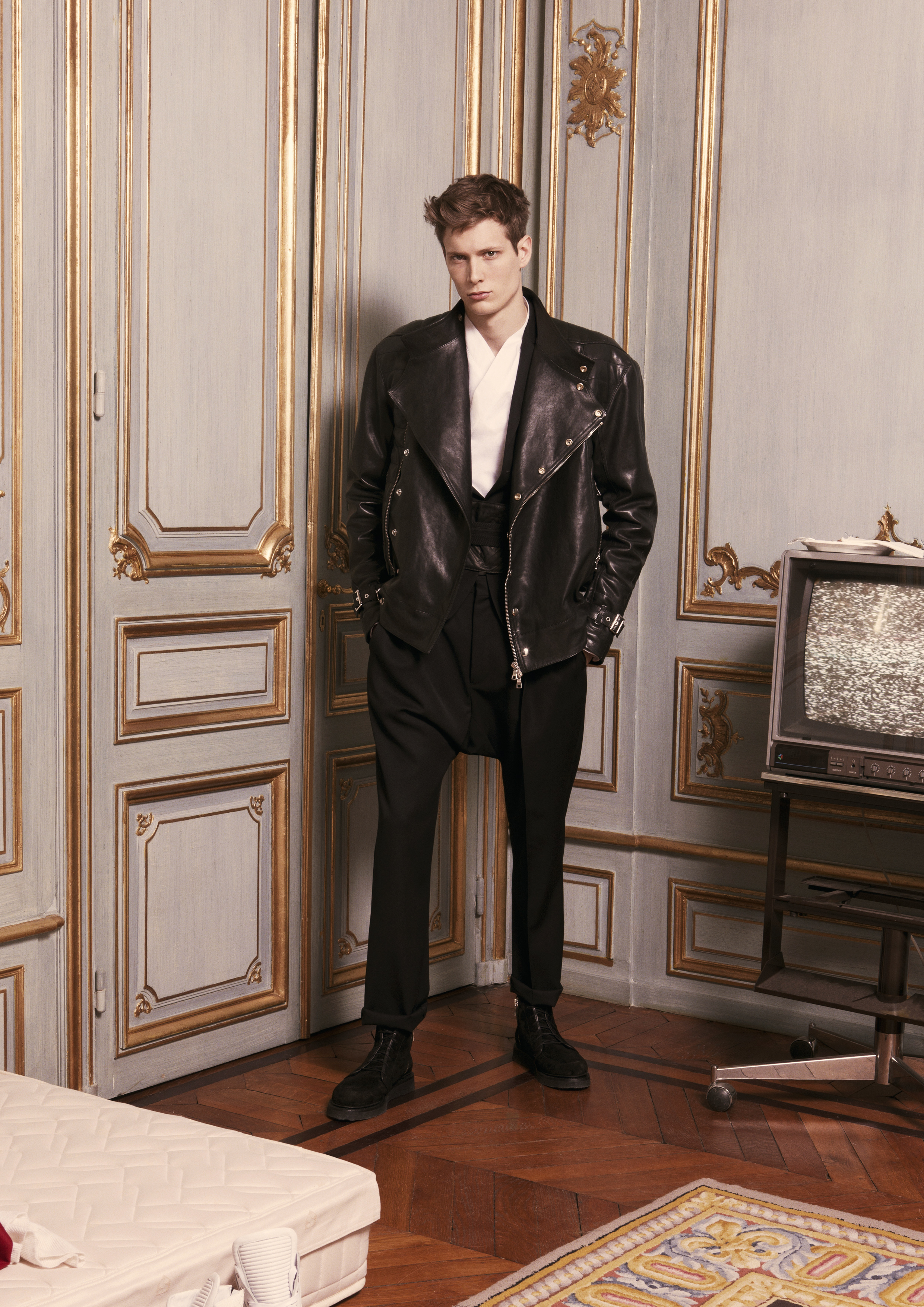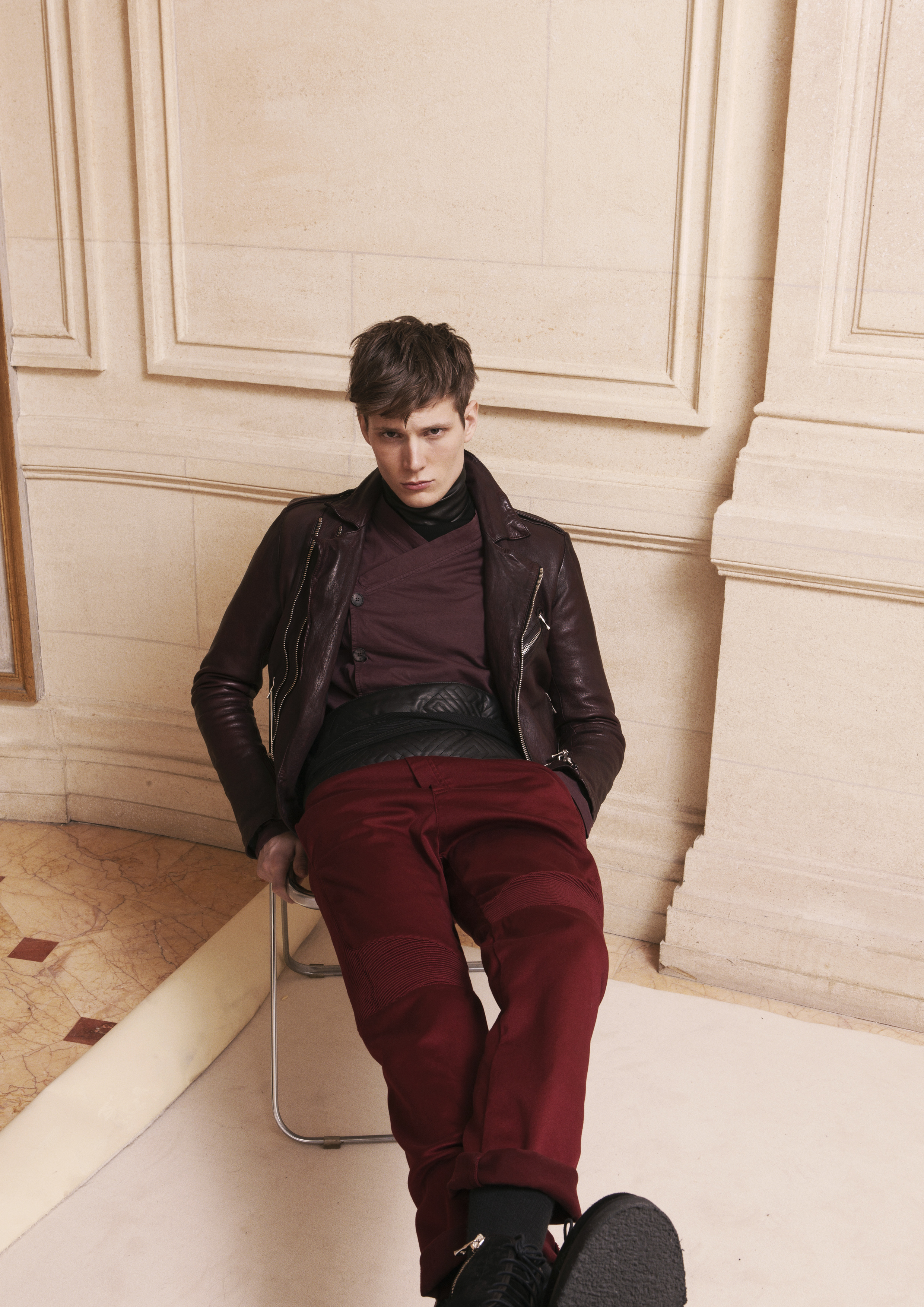 L’homme Balmain se démarque aussi par son appréciation des matières matelassées que l’on retrouve sur les doudounes a col en laine façon pull, mais aussi un perfecto, les teintes monochromes et les pantalons type sarouel.