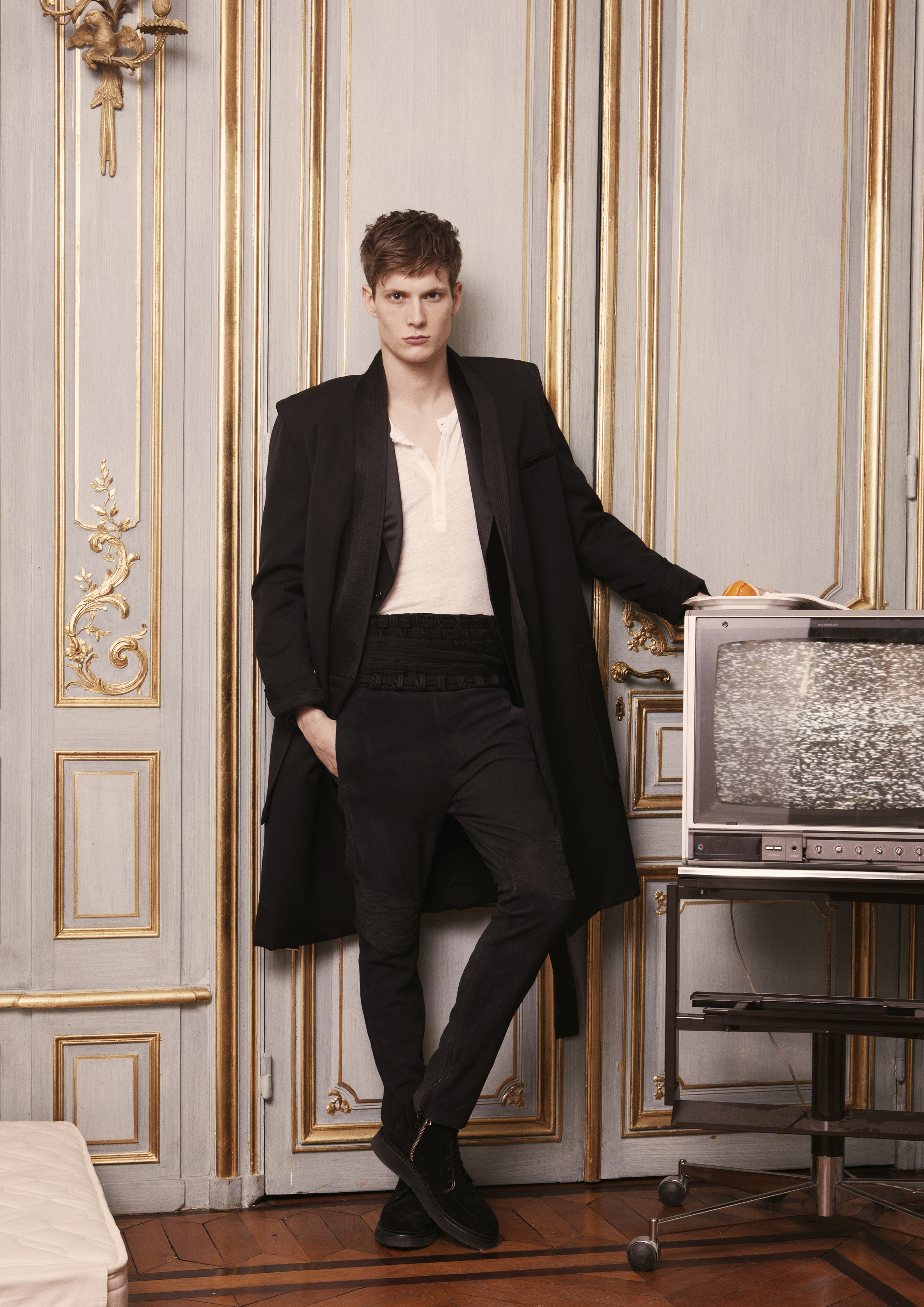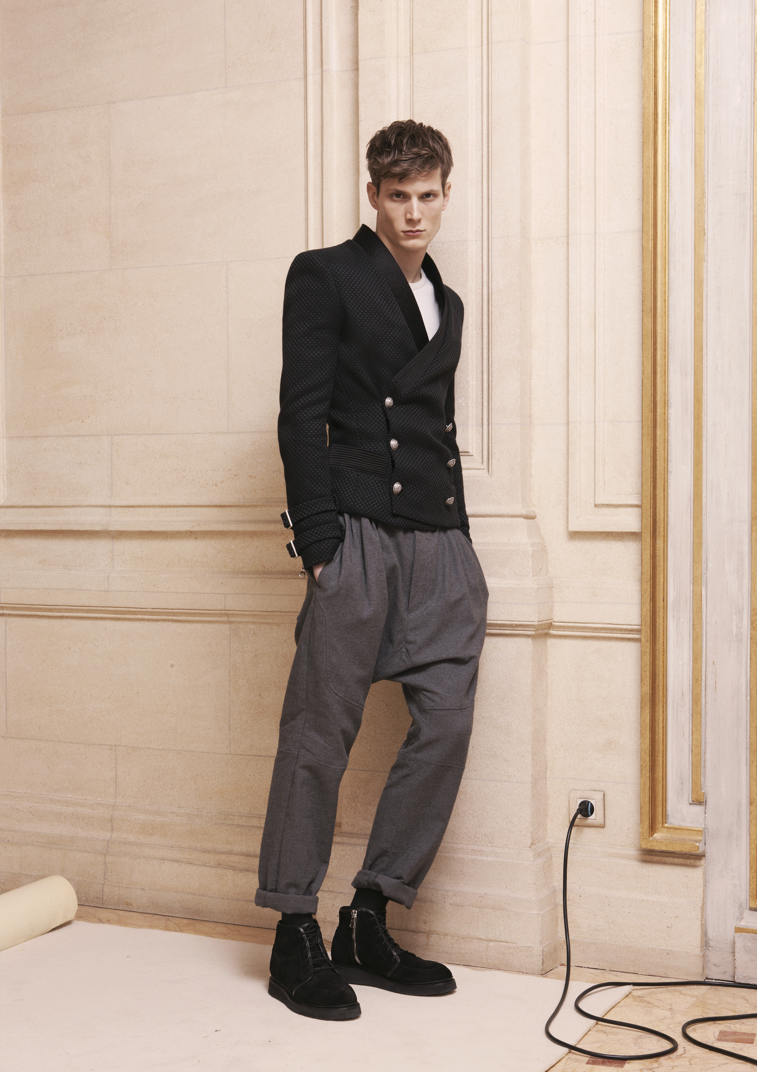 L’homme chez Balmain est jeune, trendy et choisi de porter des vêtements aux coupes nettes et près du corps. Pas de place pour les jeux de volumes chez Balmain, le corps, la silhouette sont sublimés et les tenues en sont les écrins.