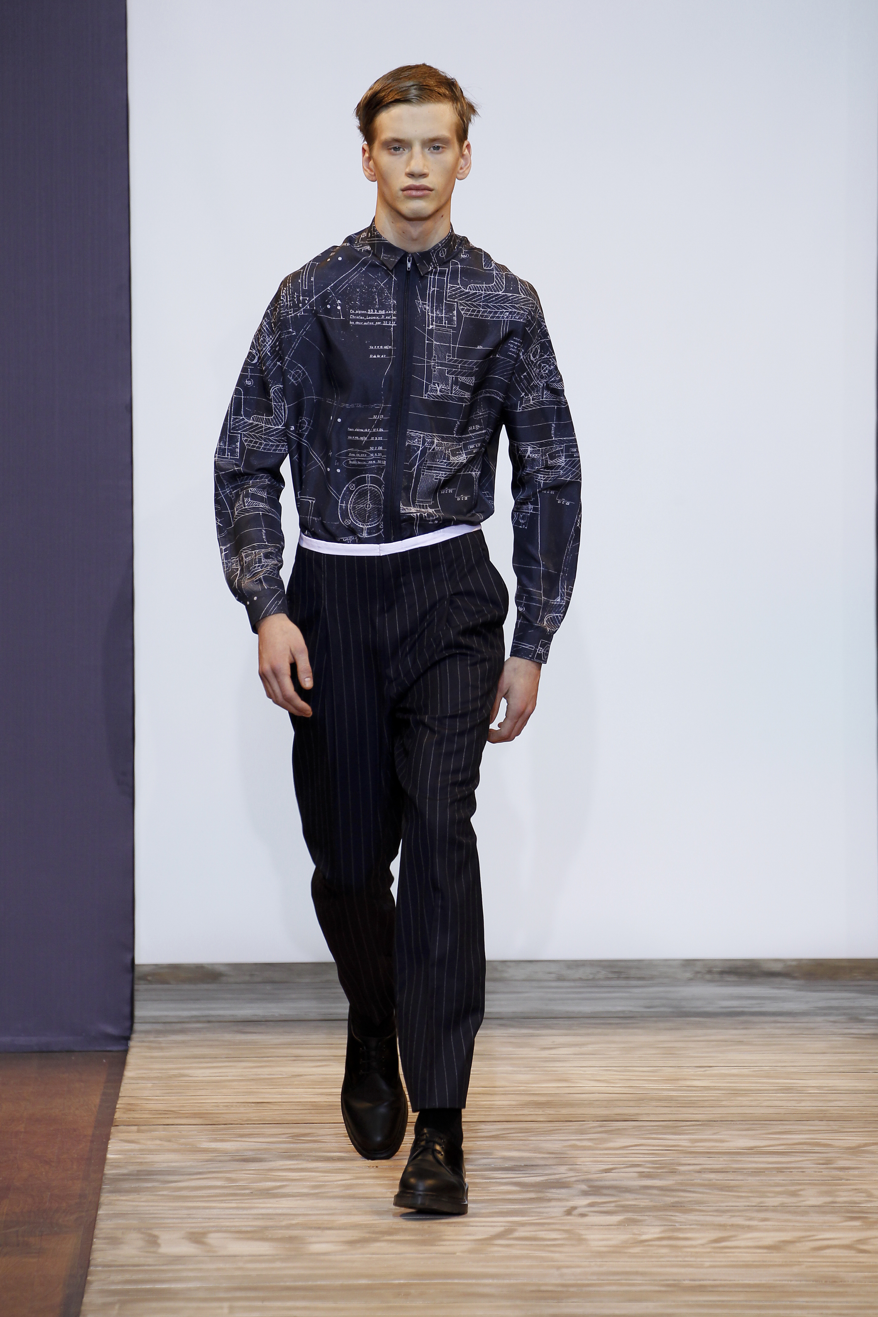 Les imprimés techniques ou rayures ayant tous un rapport avec le procédé de création sont présents : plans d’architecte ou imprimés a la manière des pochette d’étudiants en art, tous les clins d’œil aux processus artistique et créatif sont réunis et utilisés de façon a s’intégrer aux vêtements et aux accessoires. Nous sommes la bien loin de la revendication, mais plutôt dans l’hommage.