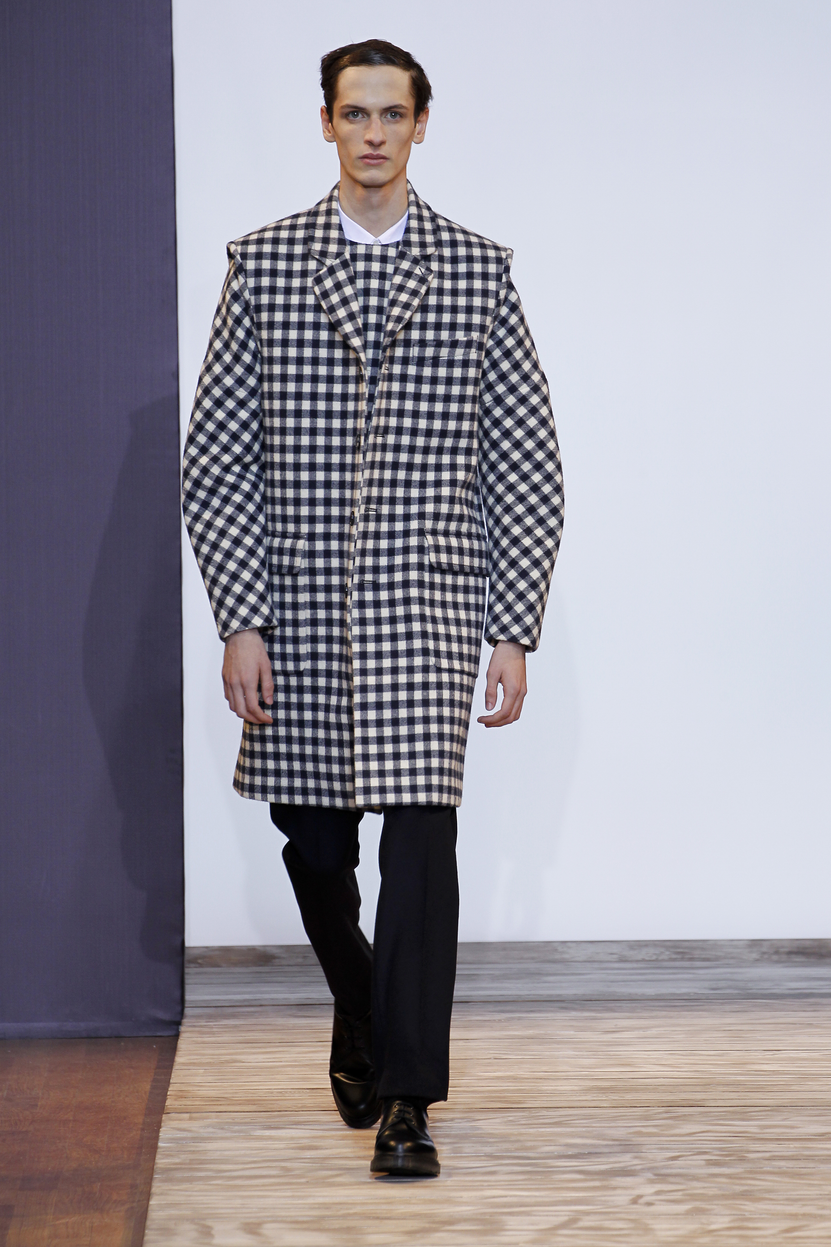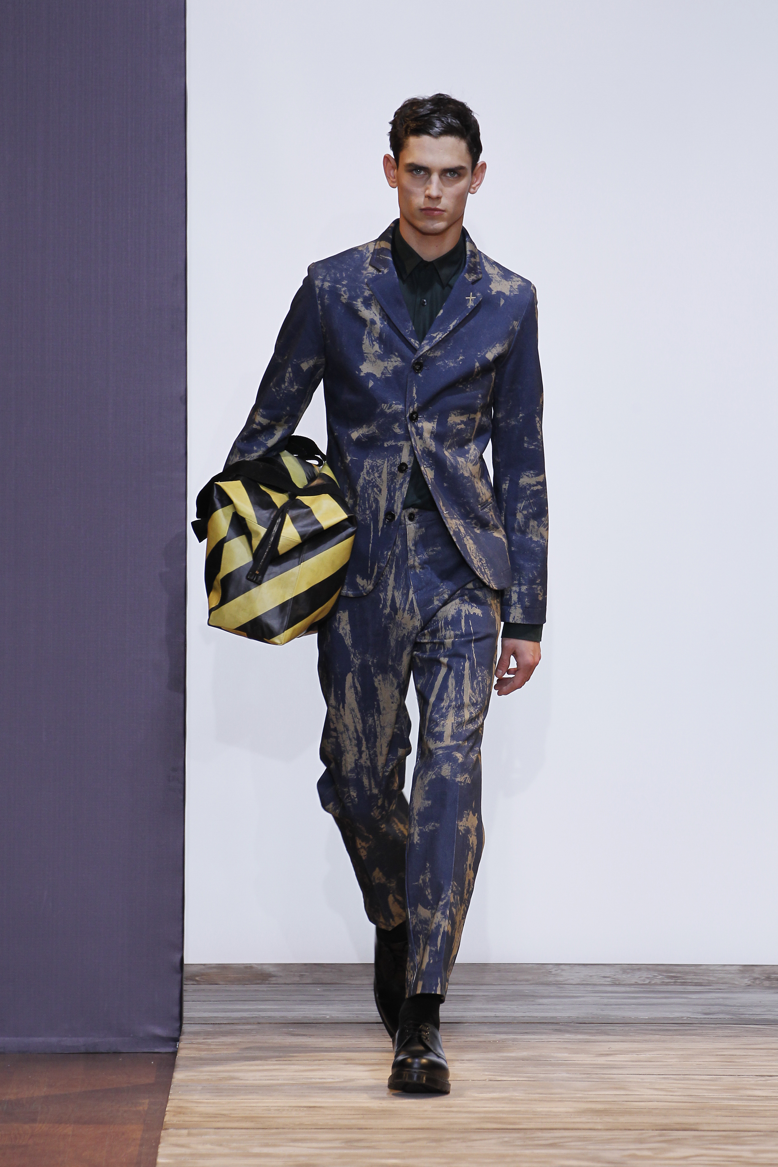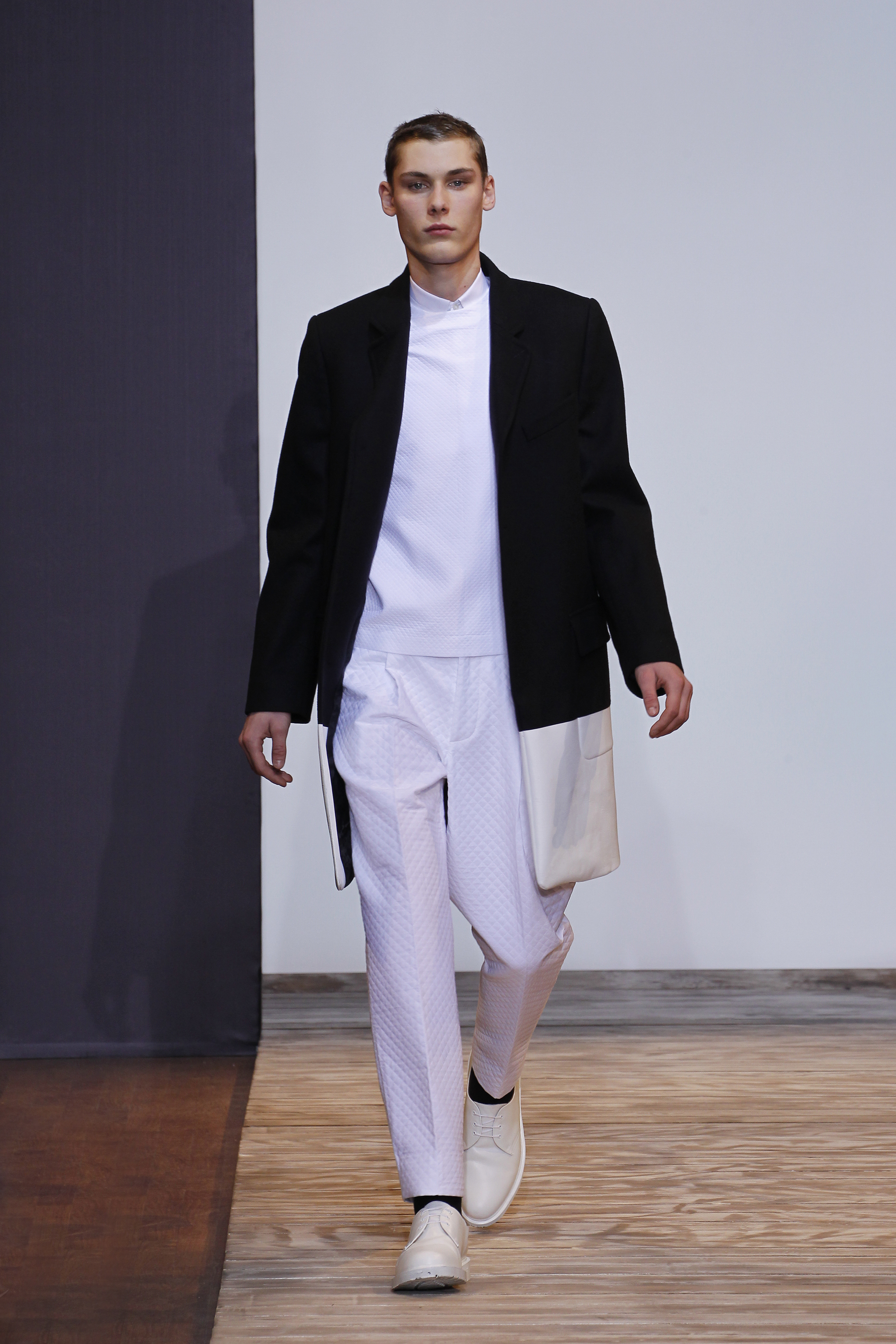 Les costumes sont de rigueur mais sans pour autant être rigide, c’est une nouvelle idée de l’uniforme qui nous est proposée chez Christian Lacroix Homme. Architecturale et directement inspirée du travail d’un artiste cette collection est aussi d’une légèreté incroyable.