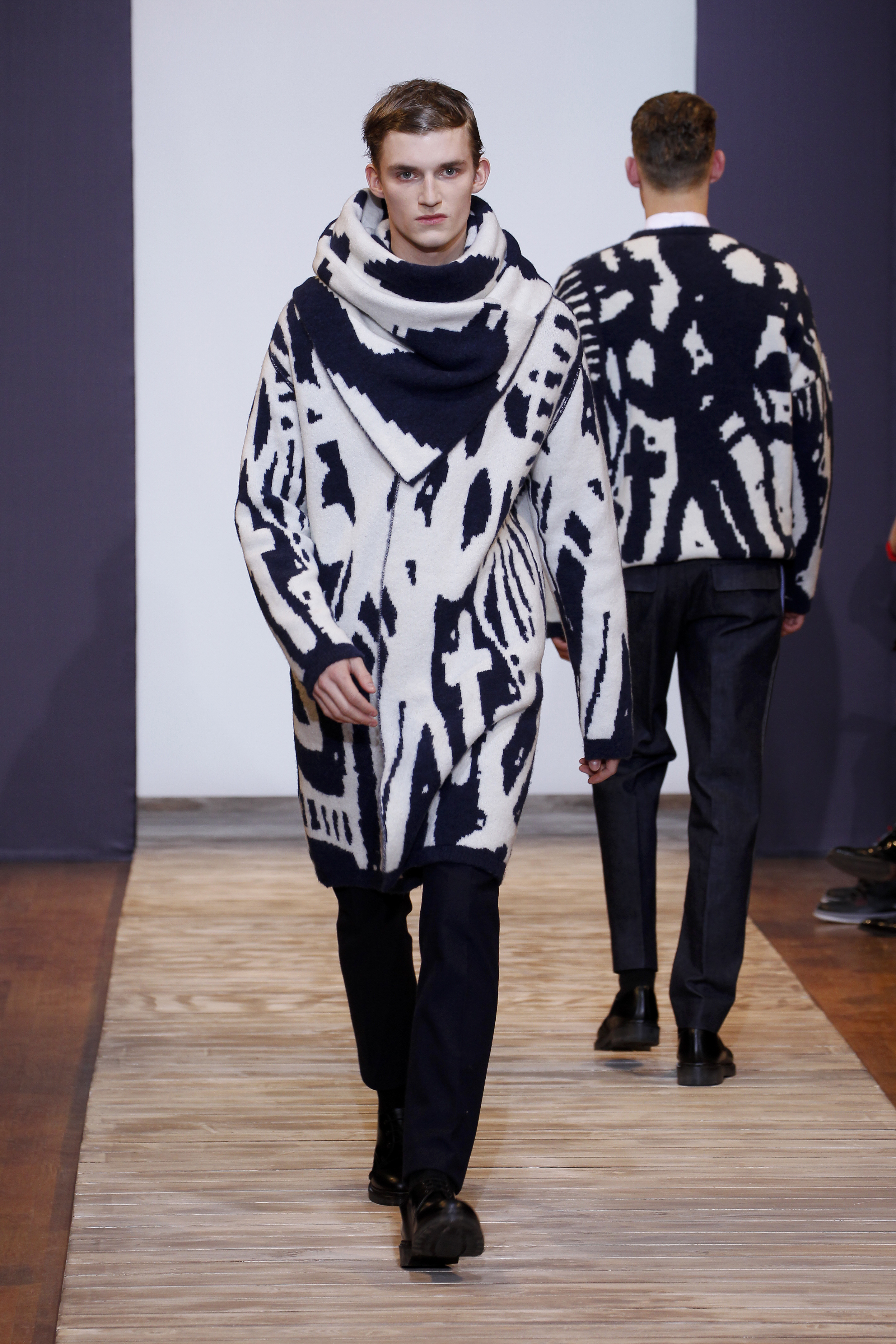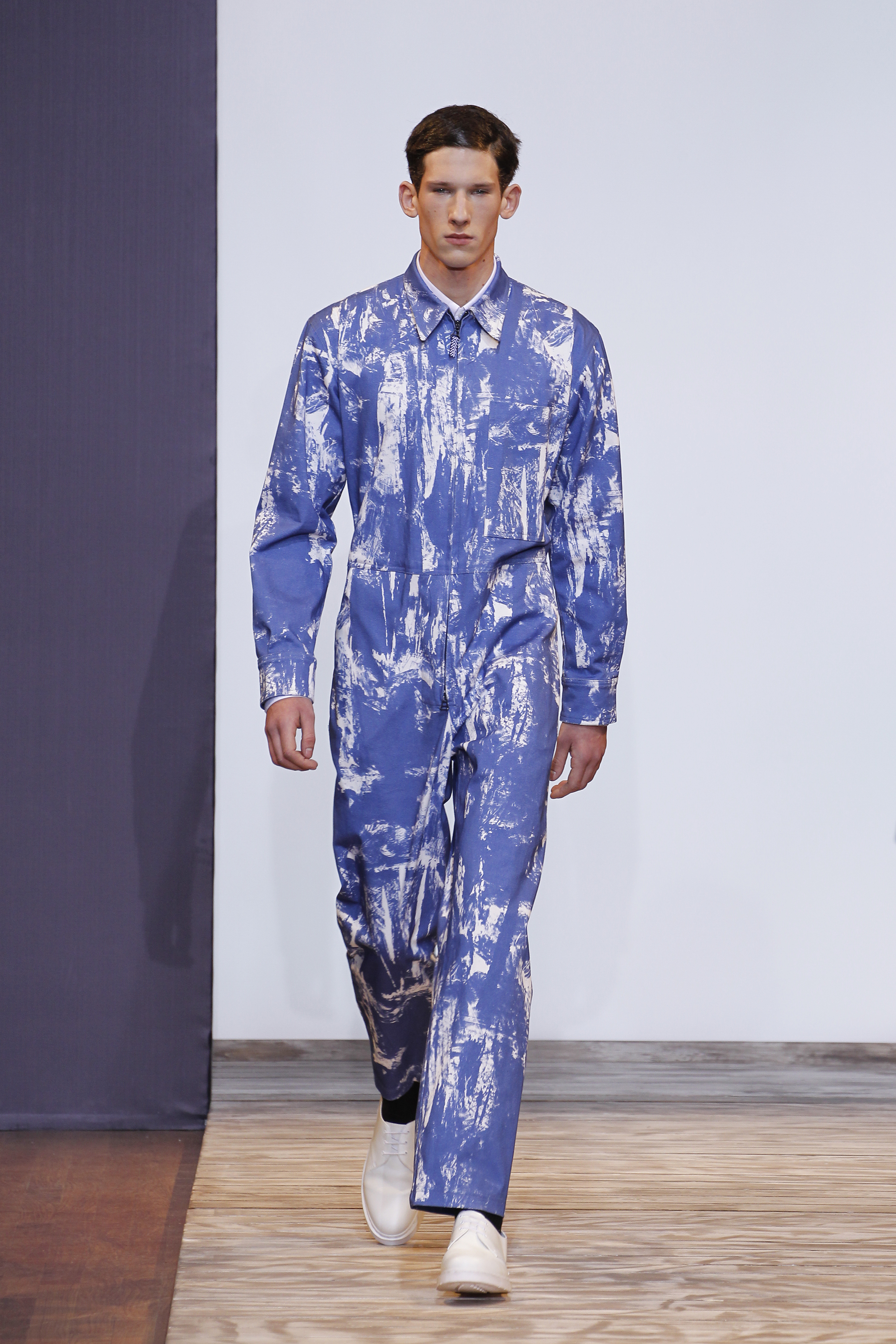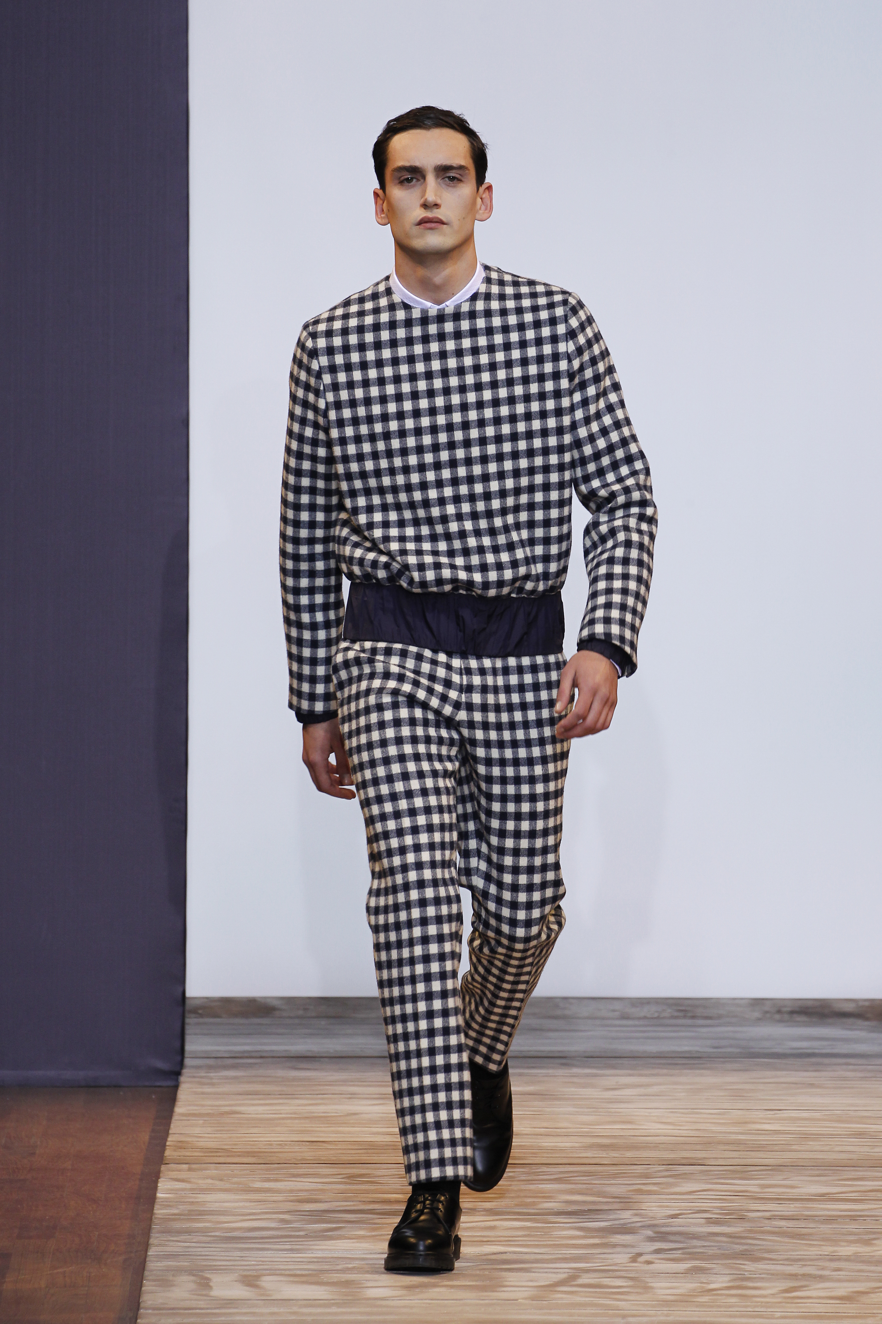 Les costumes sont de rigueur mais sans pour autant être rigide, c’est une nouvelle idée de l’uniforme qui nous est proposée chez Christian Lacroix Homme. Architecturale et directement inspirée du travail d’un artiste cette collection est aussi d’une légèreté incroyable.