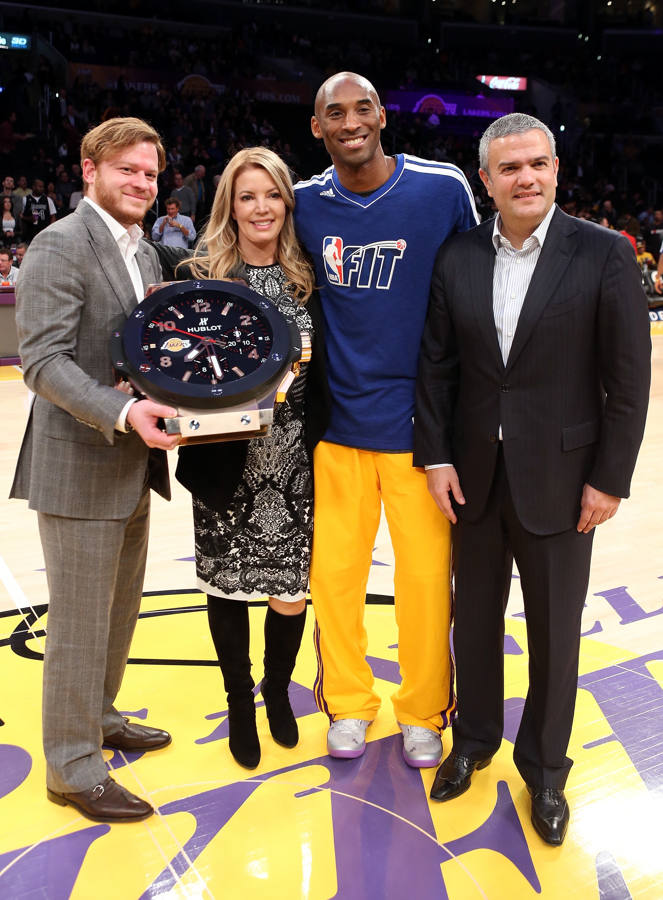 Hier soir, Ricardo Guadalupe – CEO de Hublot – était sur le parquet du Staples Center pour présenter à Jeanie Buss, Vice-President Executive, Opérations commerciales, l’horloge officielle des Lakers, symbole du nouveau partenariat qui fait de la marque horlogère suisse de luxe l’Official Timekeeper de la légendaire équipe NBA.