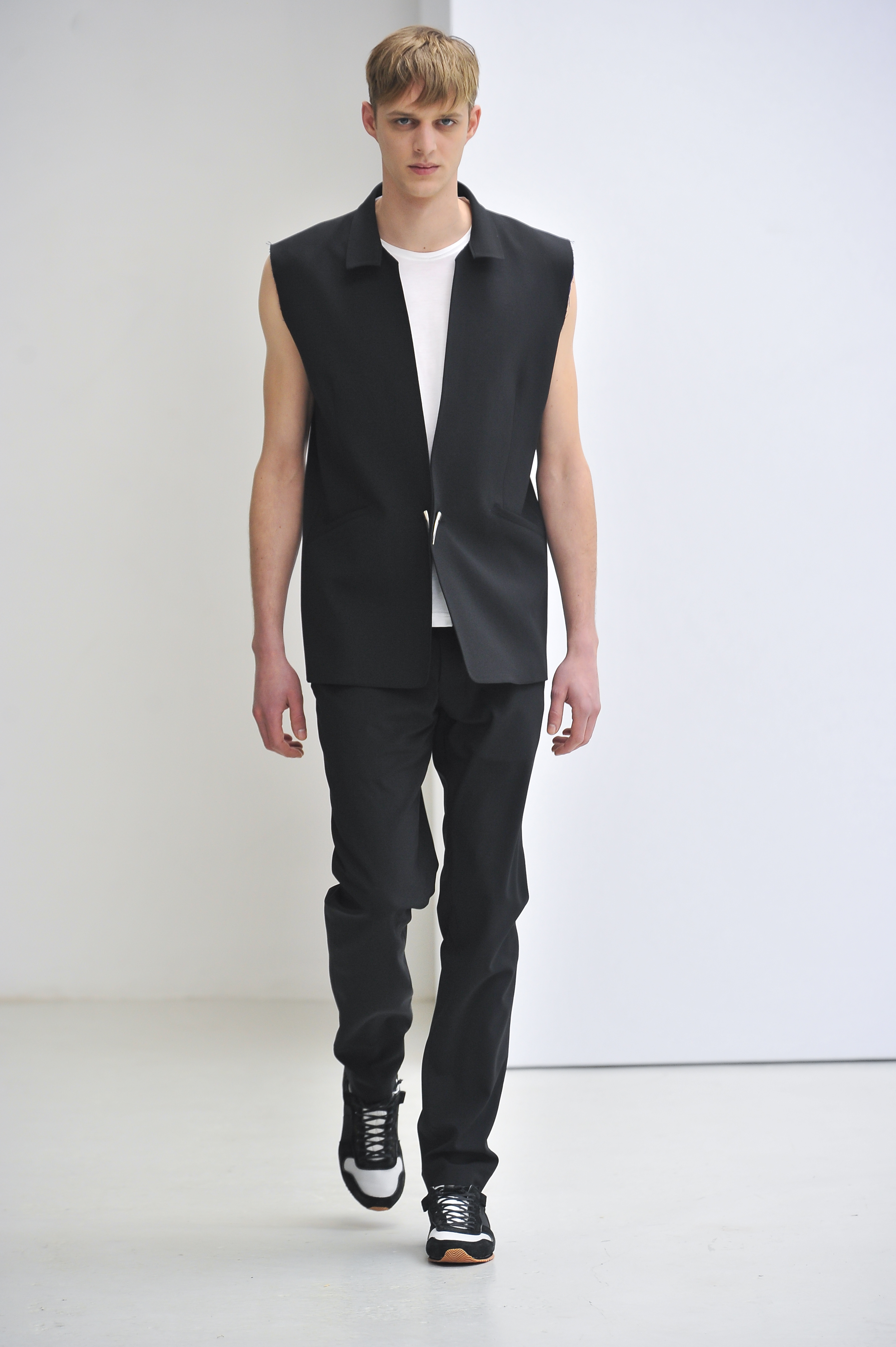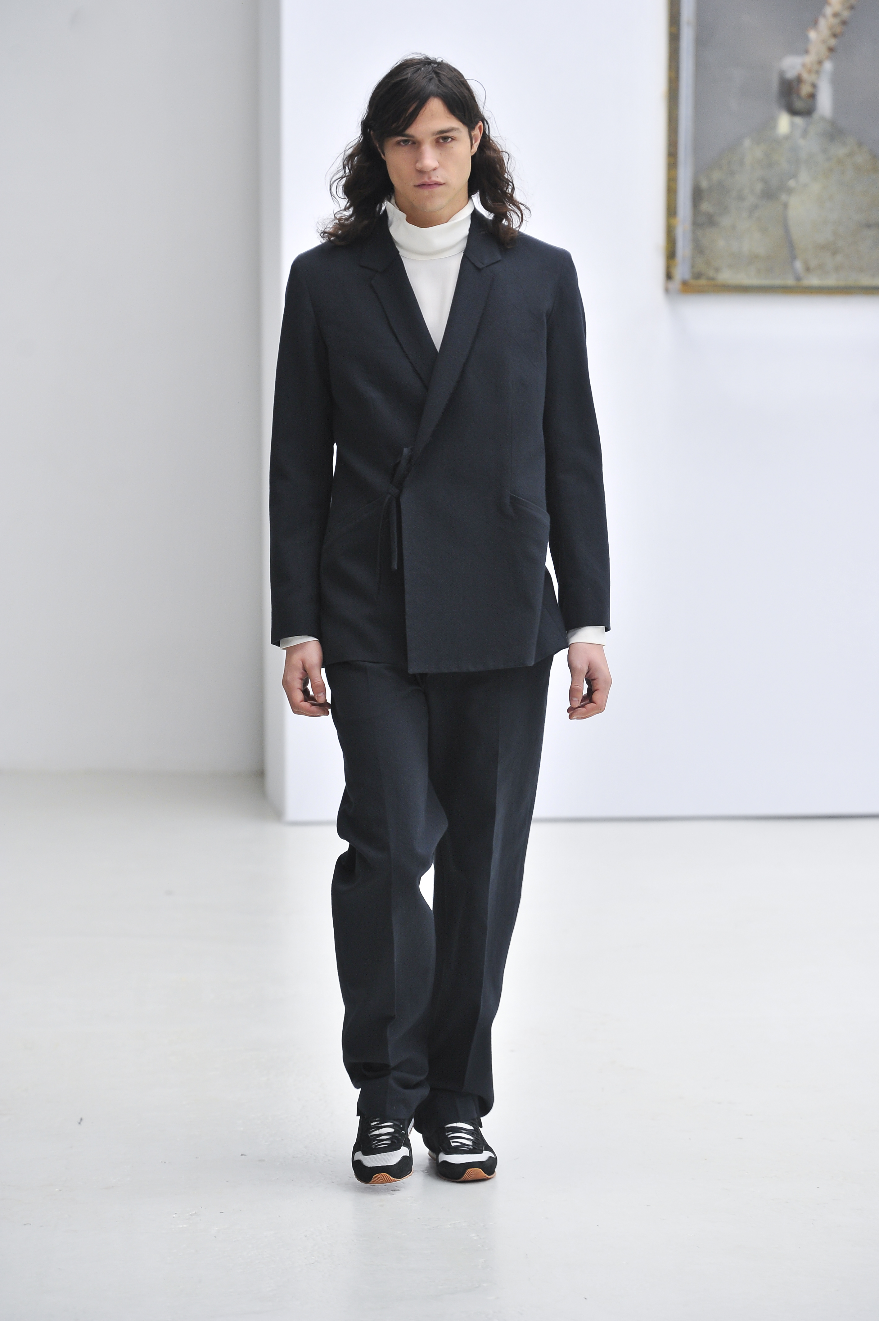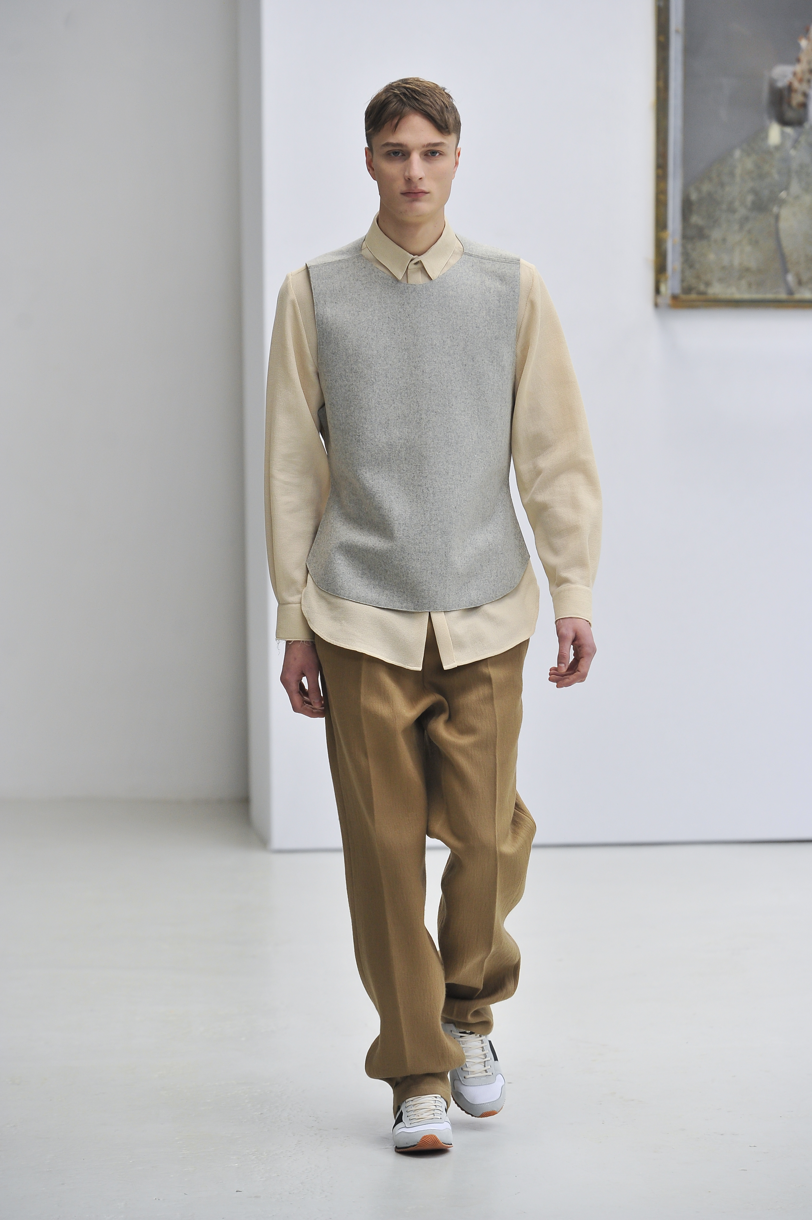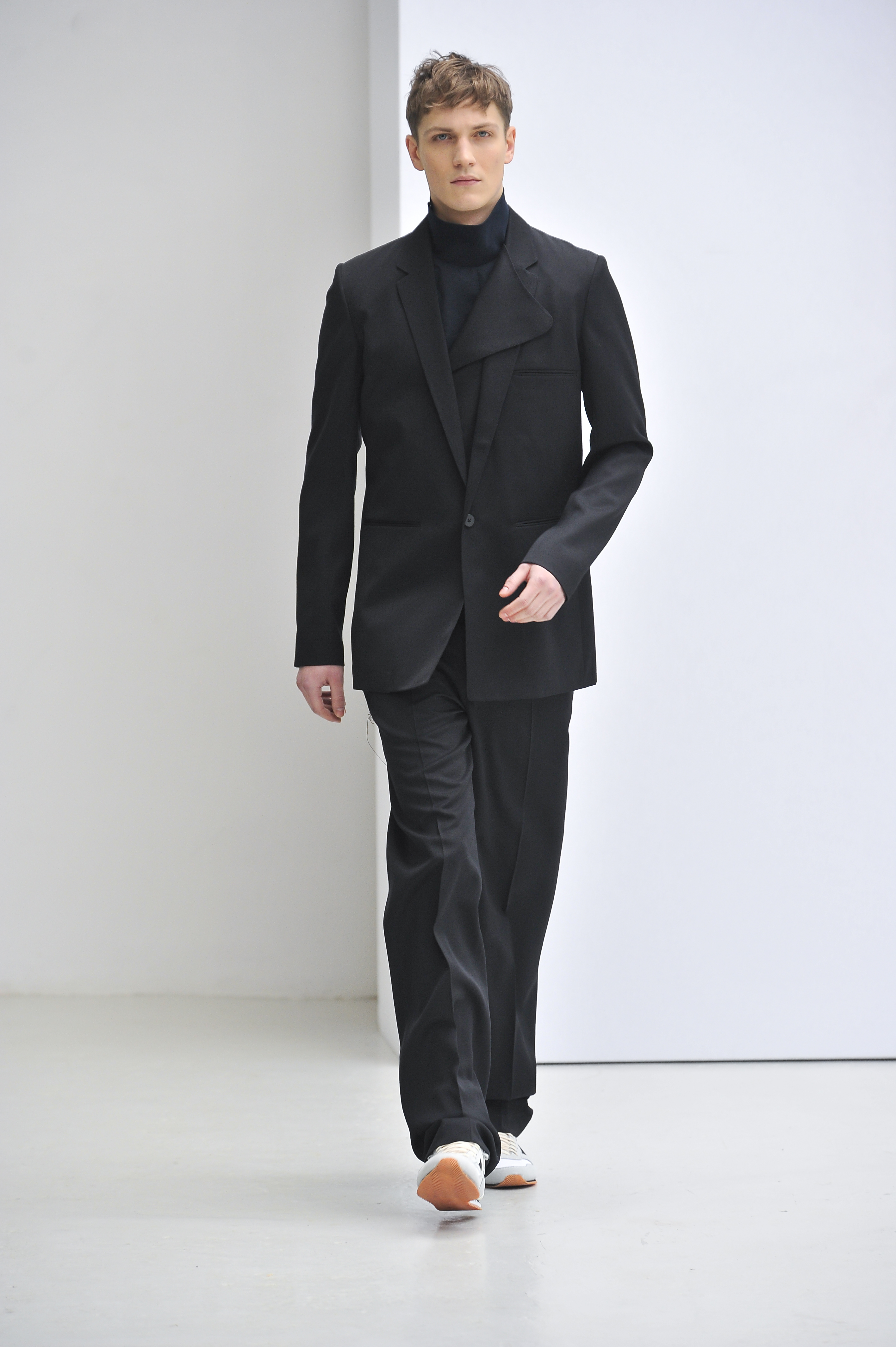 Les sneakers sont le dénominateur commun de la collection comme on les retrouve aux pieds de tous les modèles, et chaque look explore une facette différente de l’habillement masculin interprété par Tillmann Lauterbach.