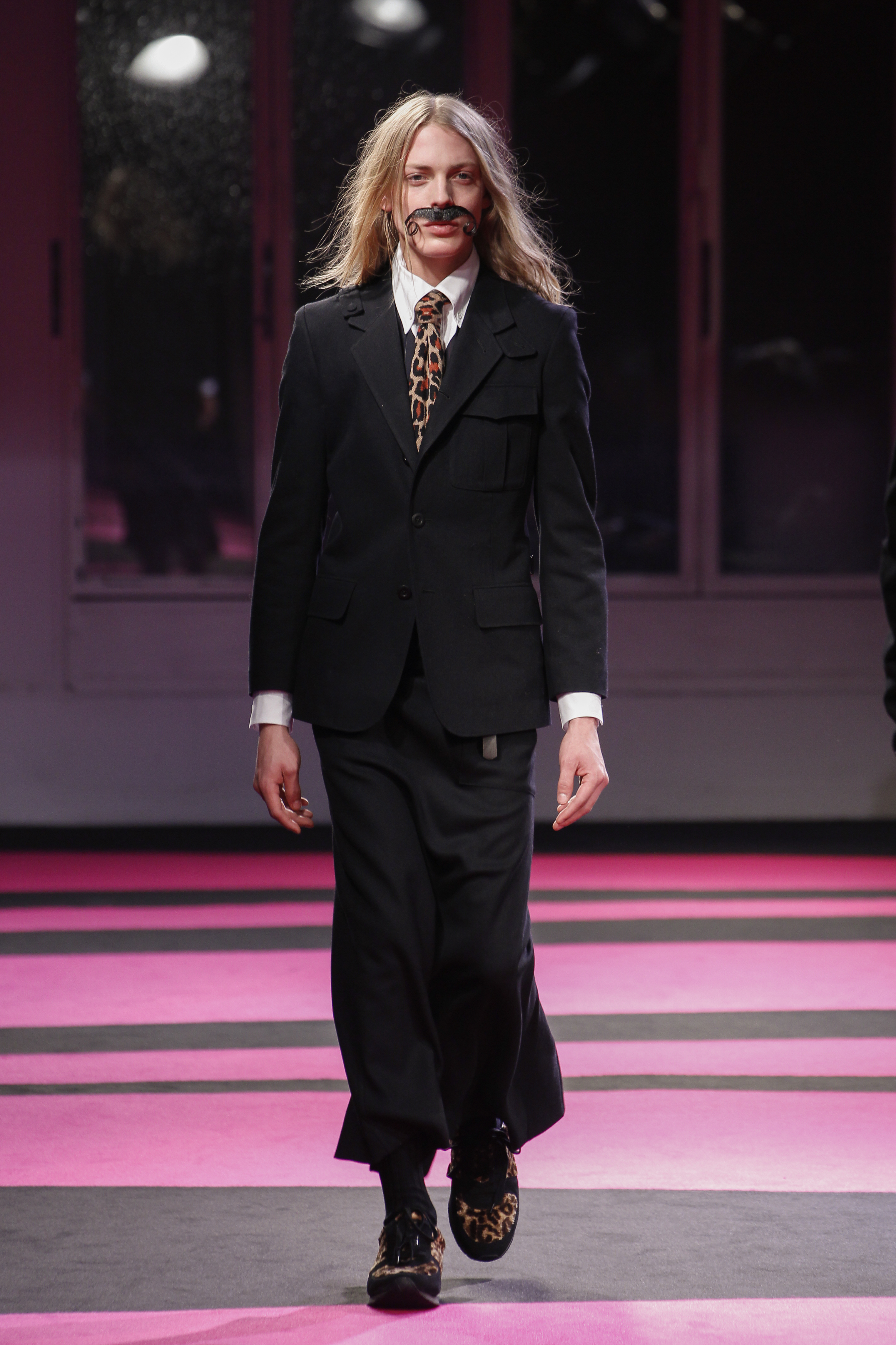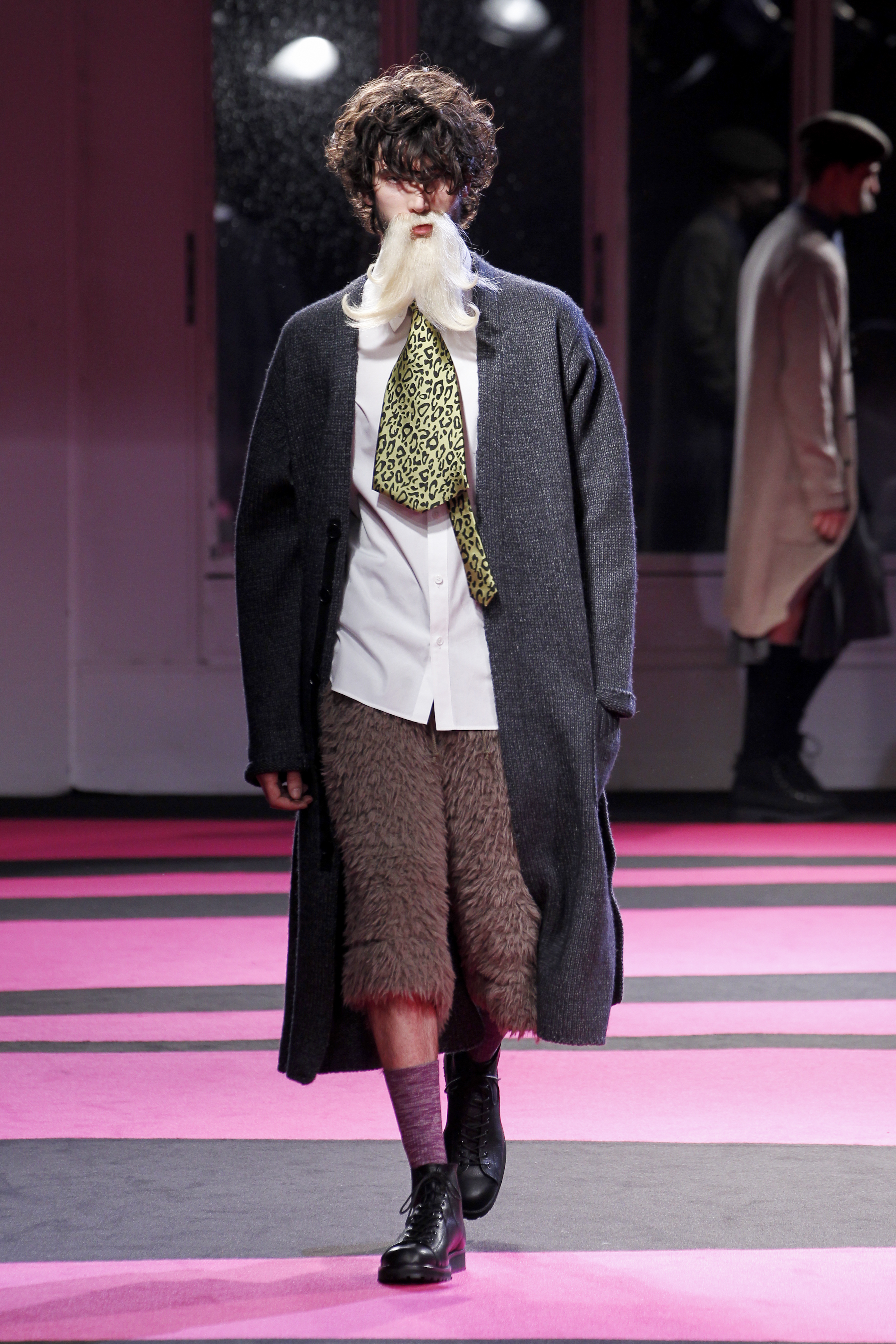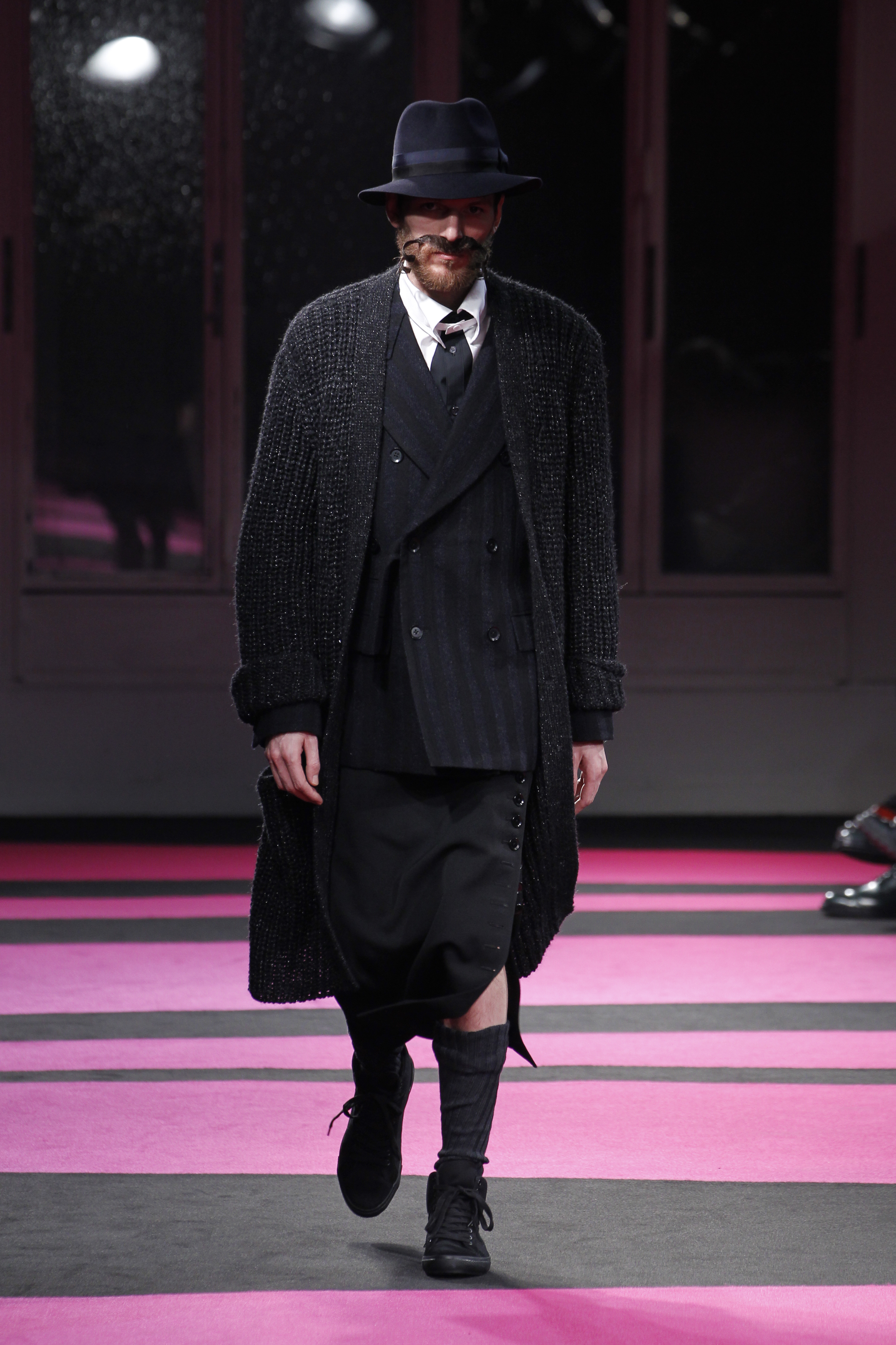 Lengths are the order of the day this time, and Yohji Yamamoto doesn’t hesitate to have his models wear knee-length cardigans or skirts. Layering is an integral part of this Fall/Winter collection, with animal prints and tartan motifs featured in a number of looks.