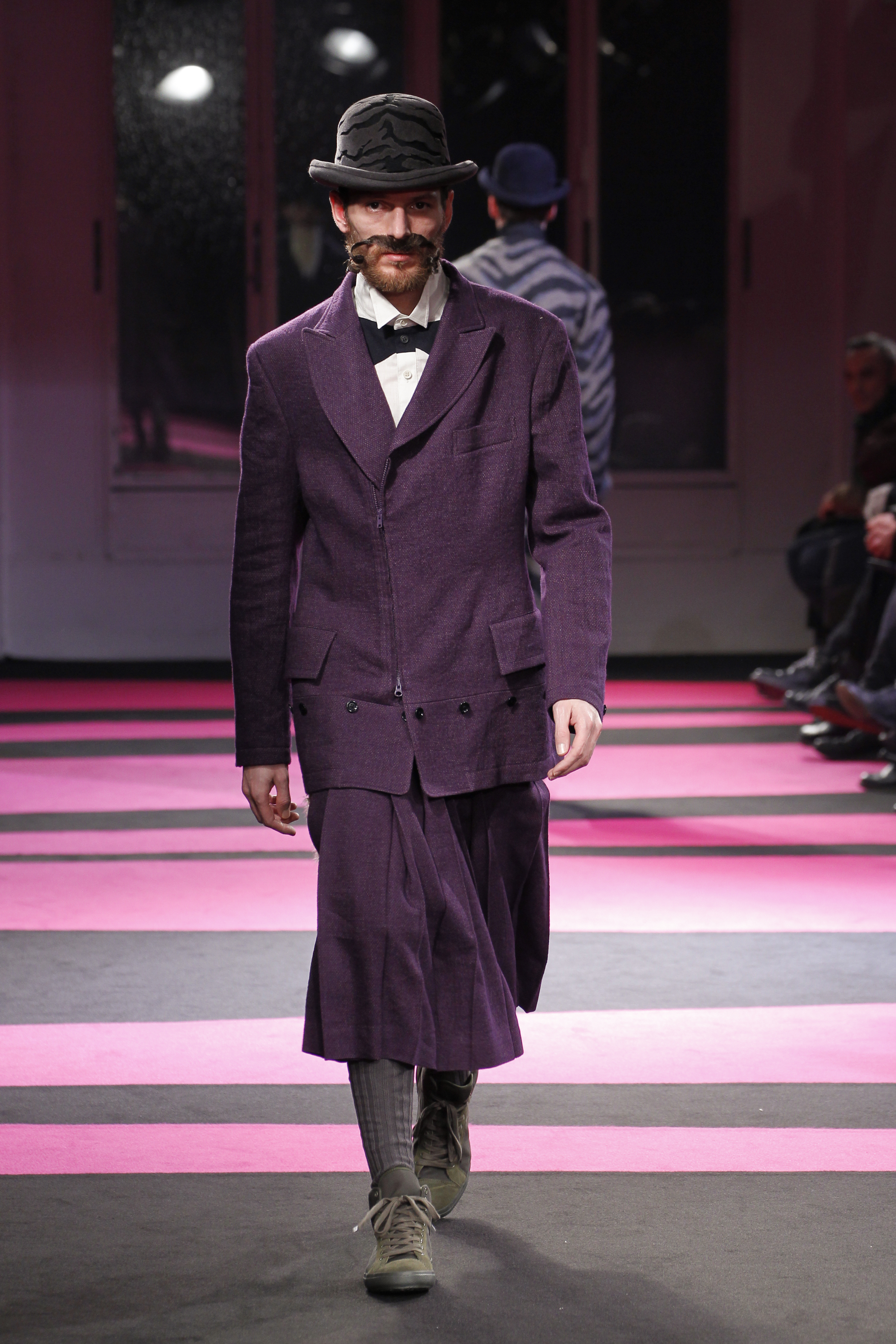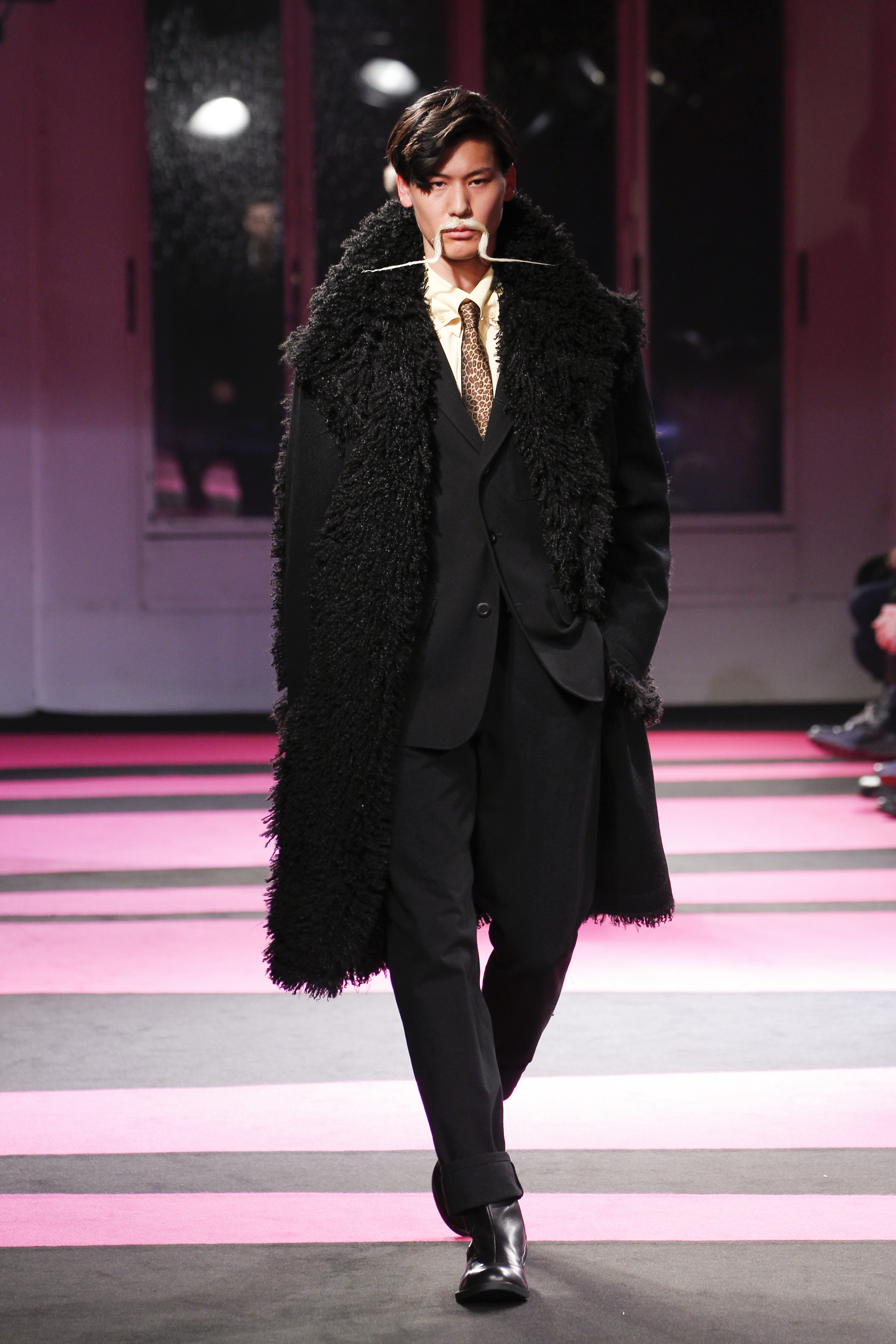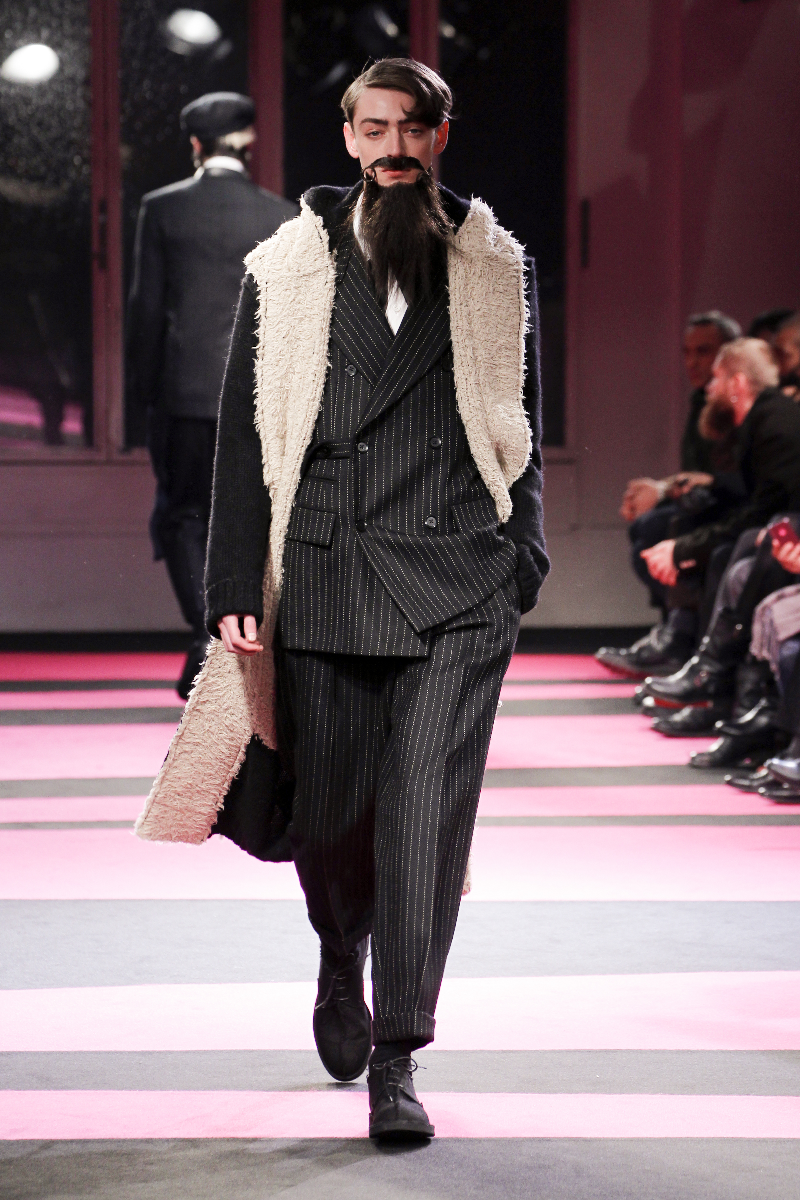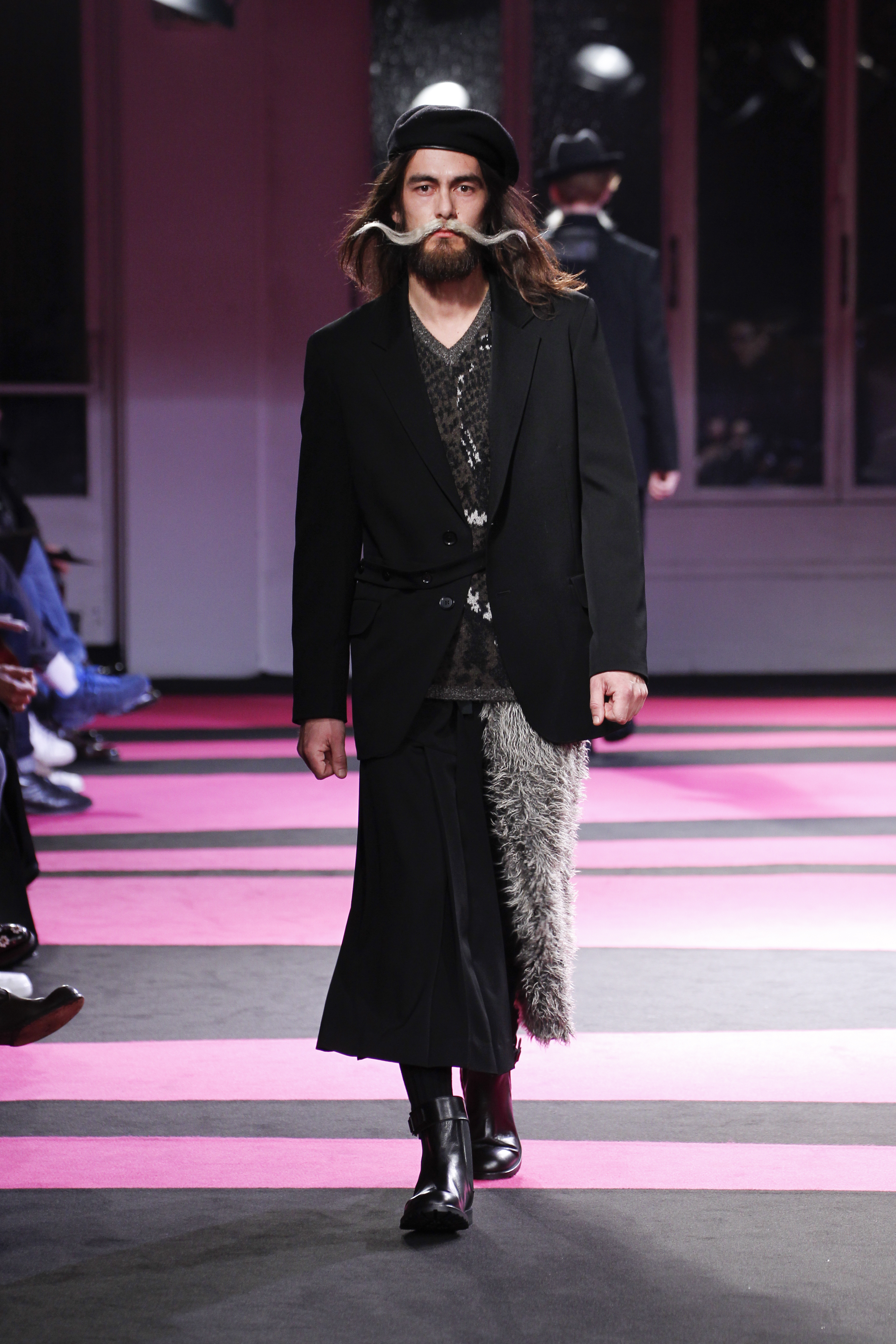 Yohji Yamamoto, the genius Japanese designer we’ve already told you about, has struck again (!). Not content with presenting collections that outdo each other in technicality, this season Yohji Yamamoto once again chose to surprise and disguise his models by affixing facial hairpieces, giving a very traditional look to the models’ faces (Adrien Sahores was also there).