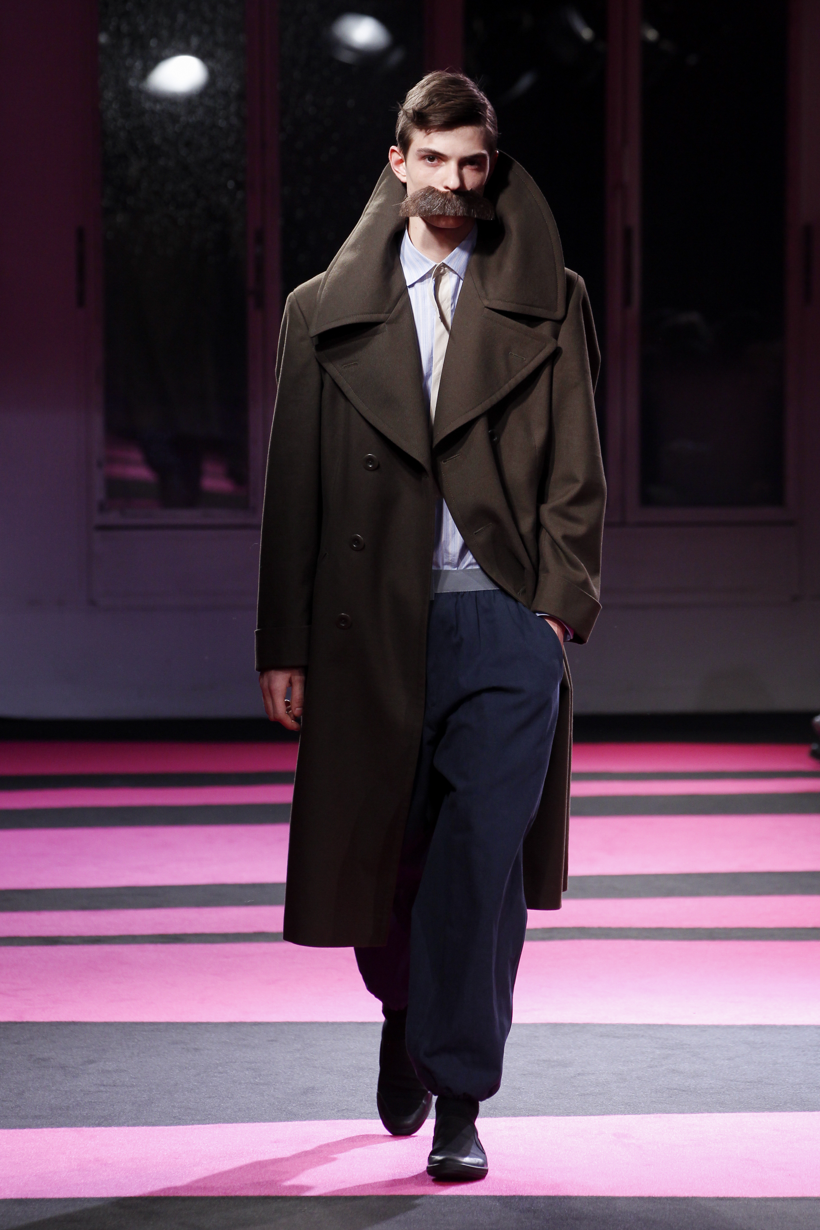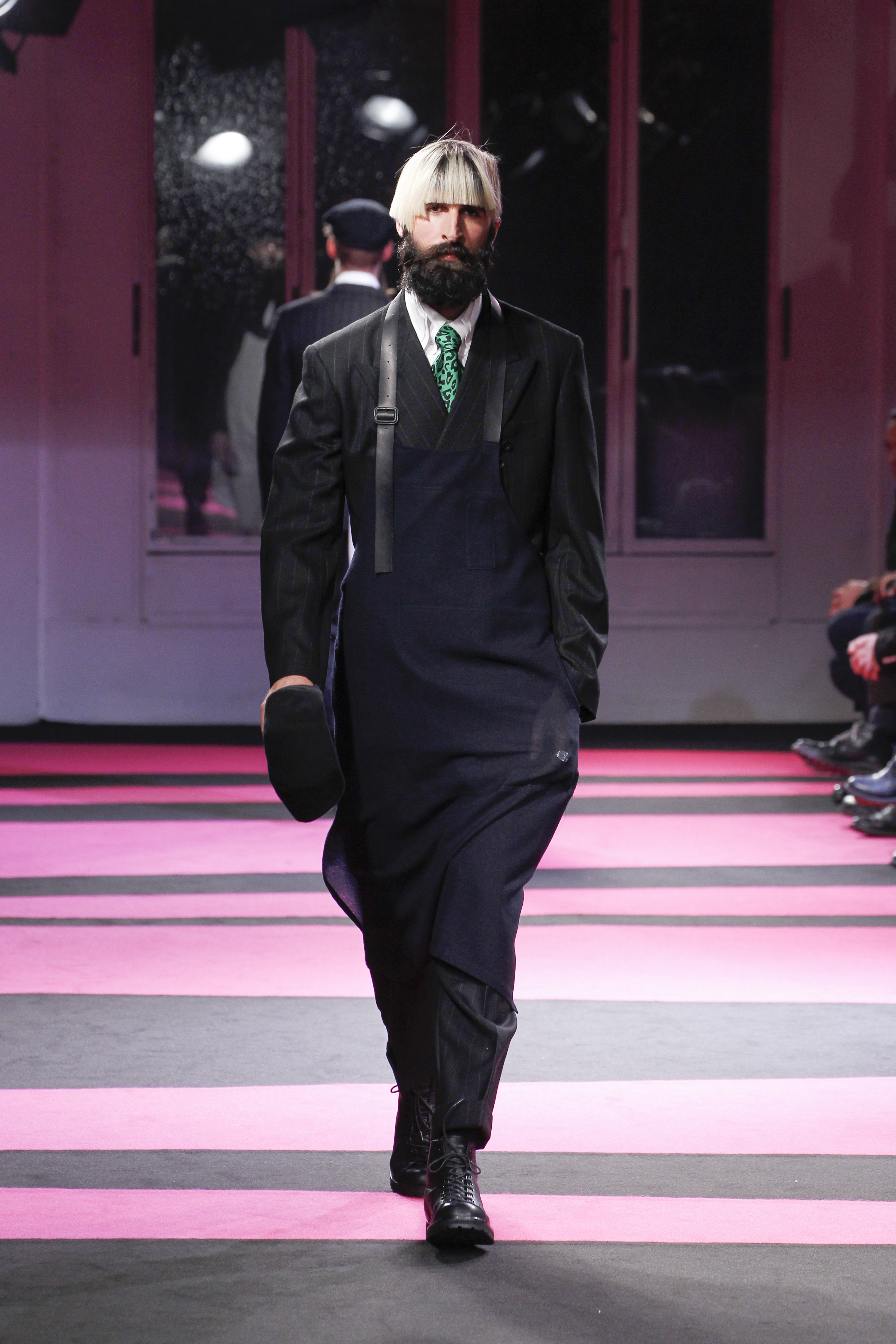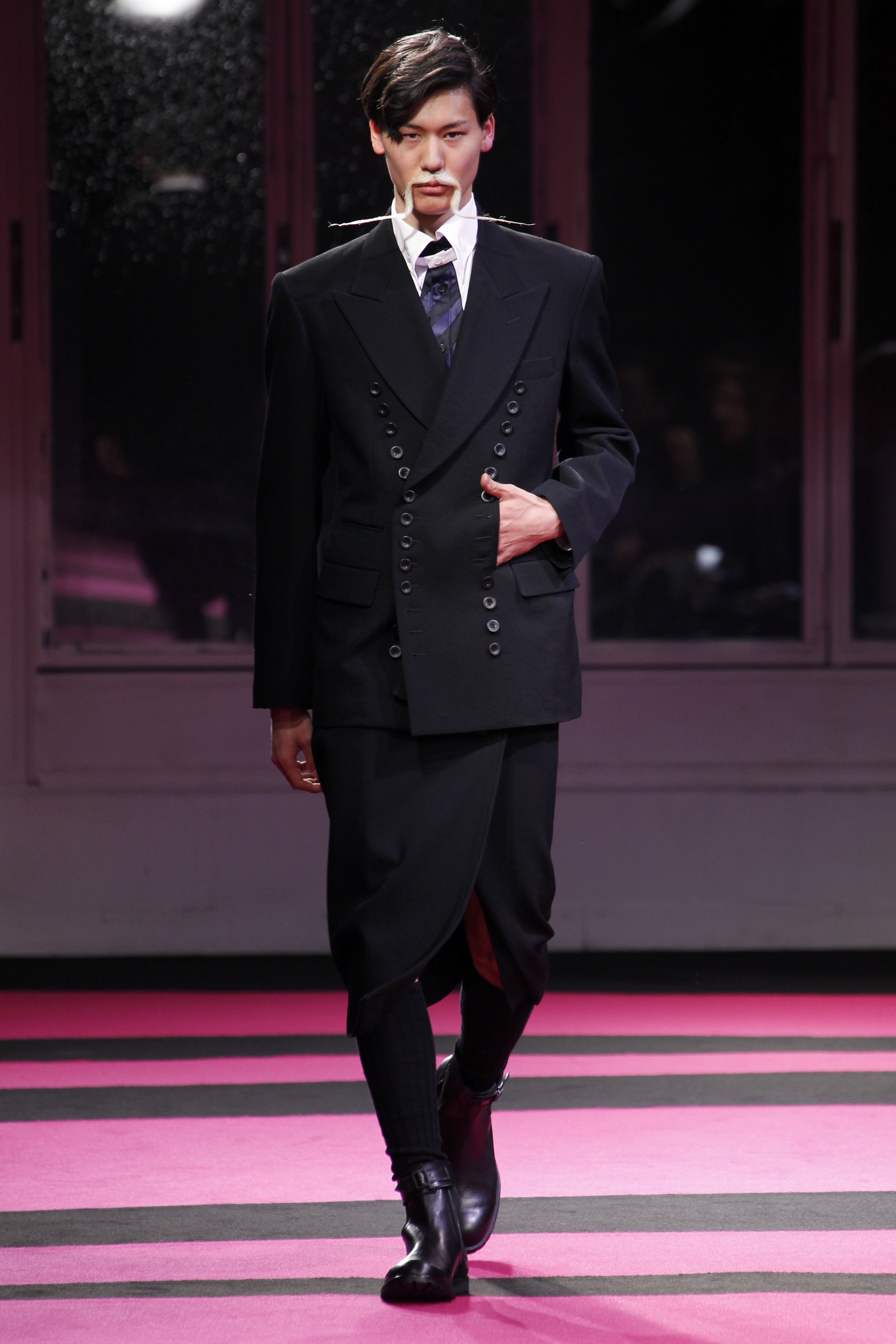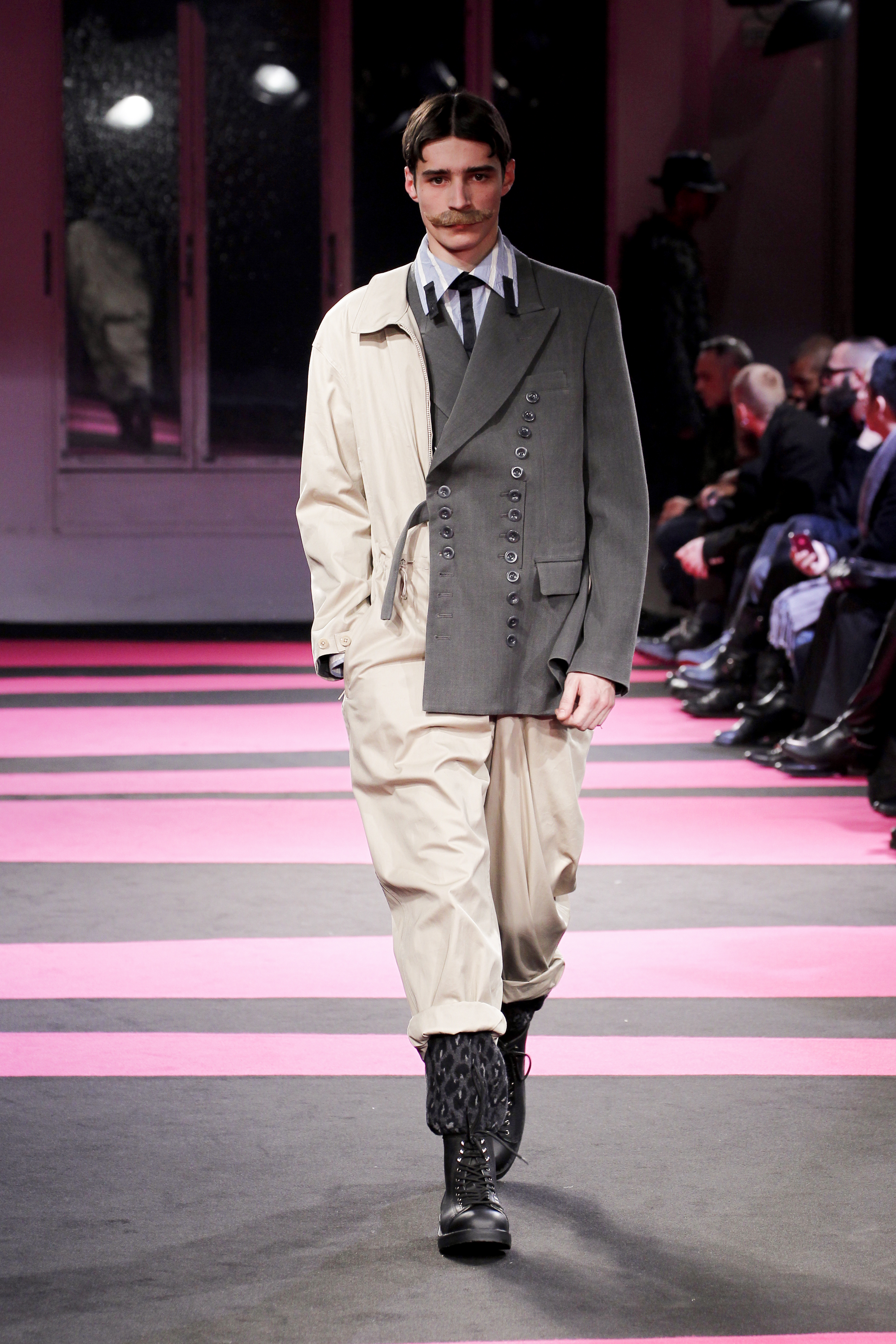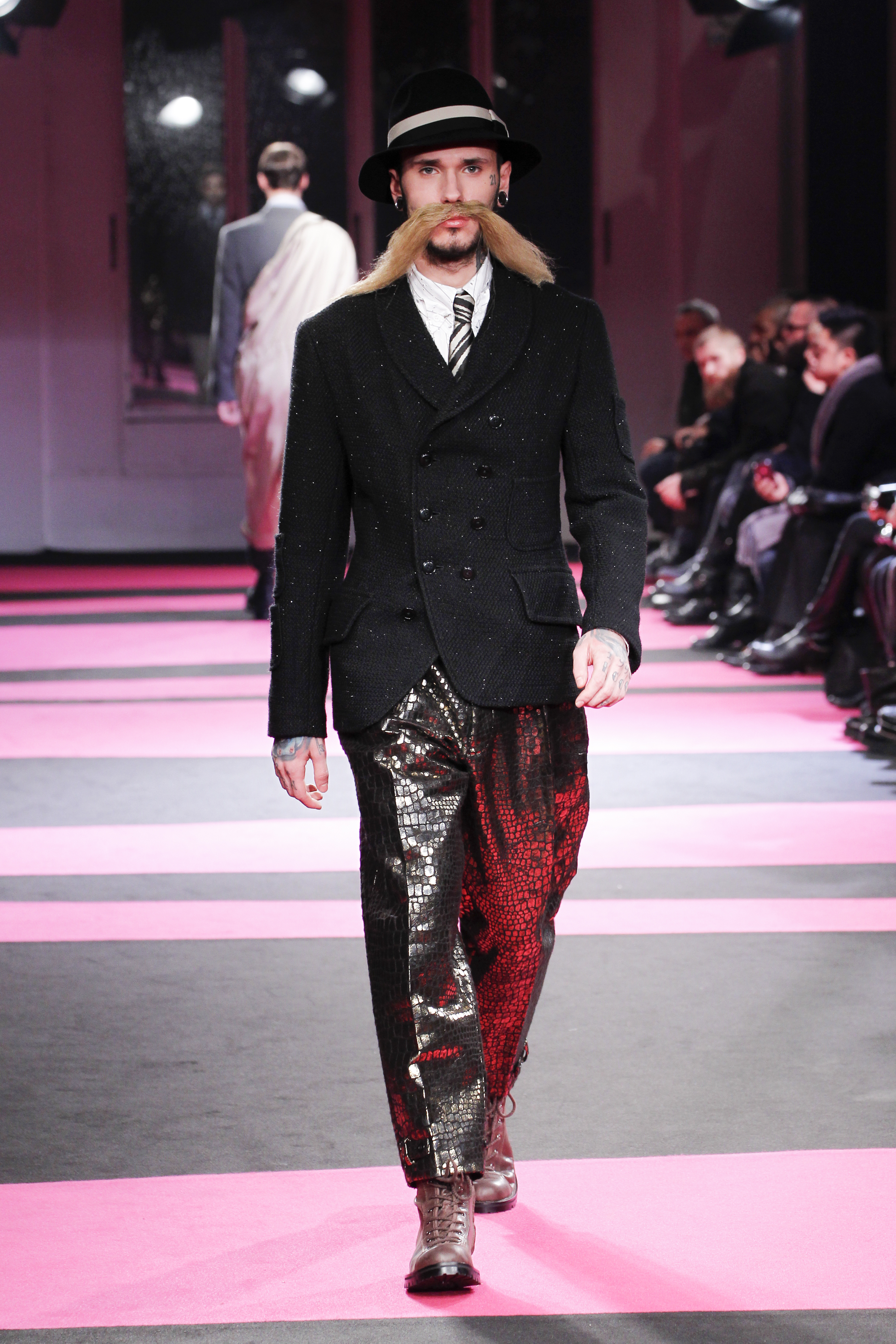 Yohji Yamamoto, the genius Japanese designer we’ve already told you about, has struck again (!). Not content with presenting collections that outdo each other in technicality, this season Yohji Yamamoto once again chose to surprise and disguise his models by affixing facial hairpieces, giving a very traditional look to the models’ faces (Adrien Sahores was also there).