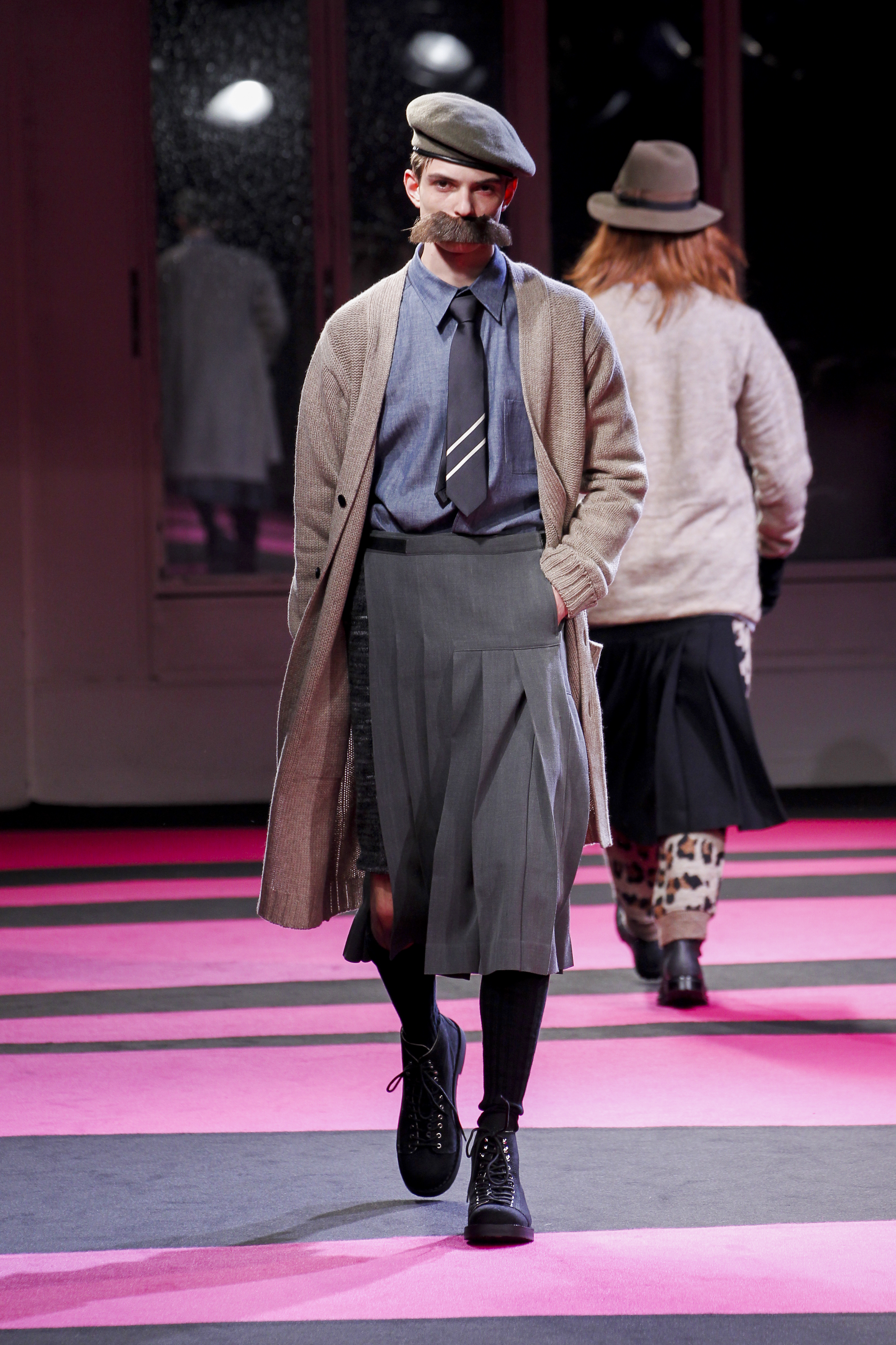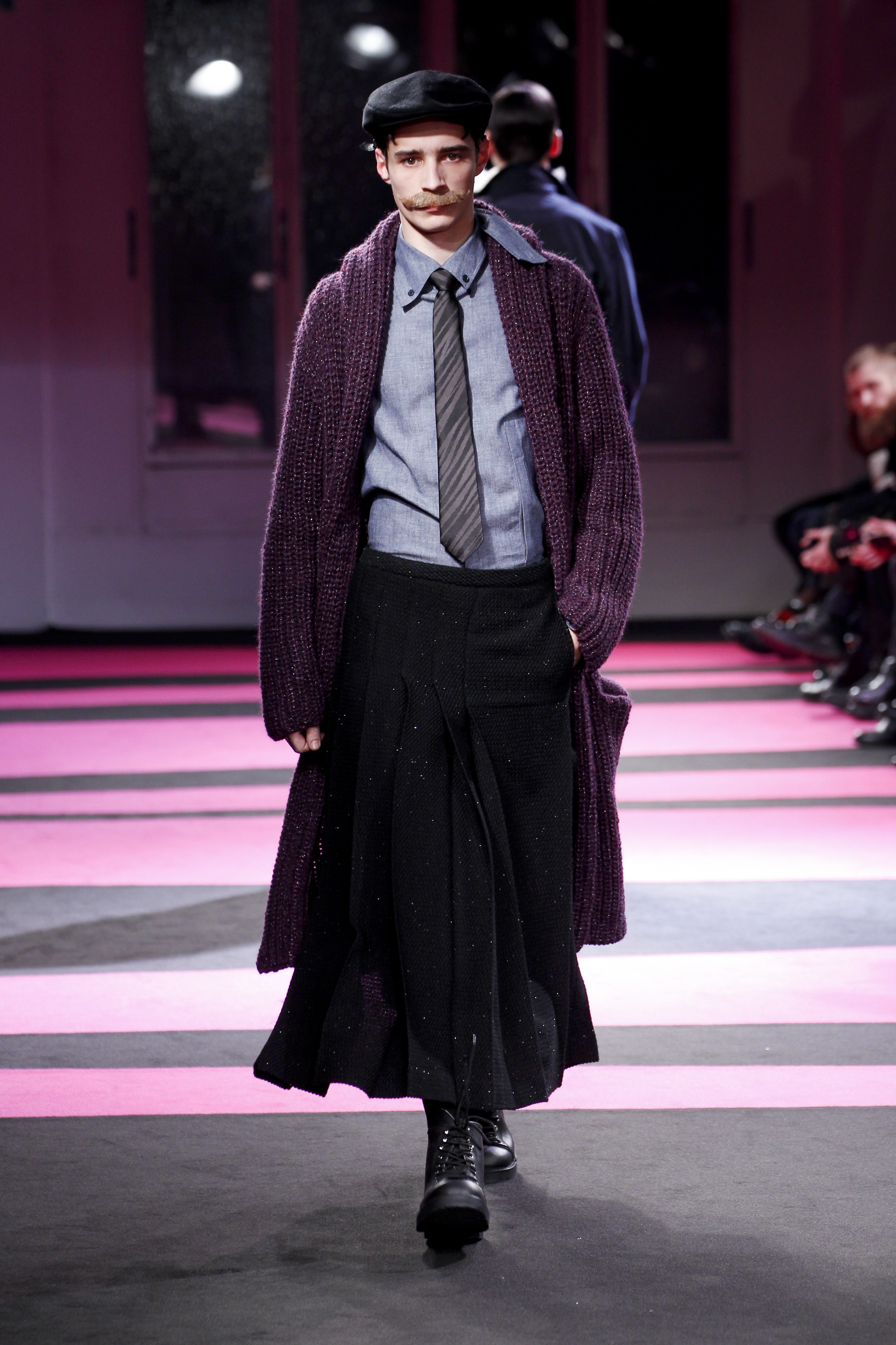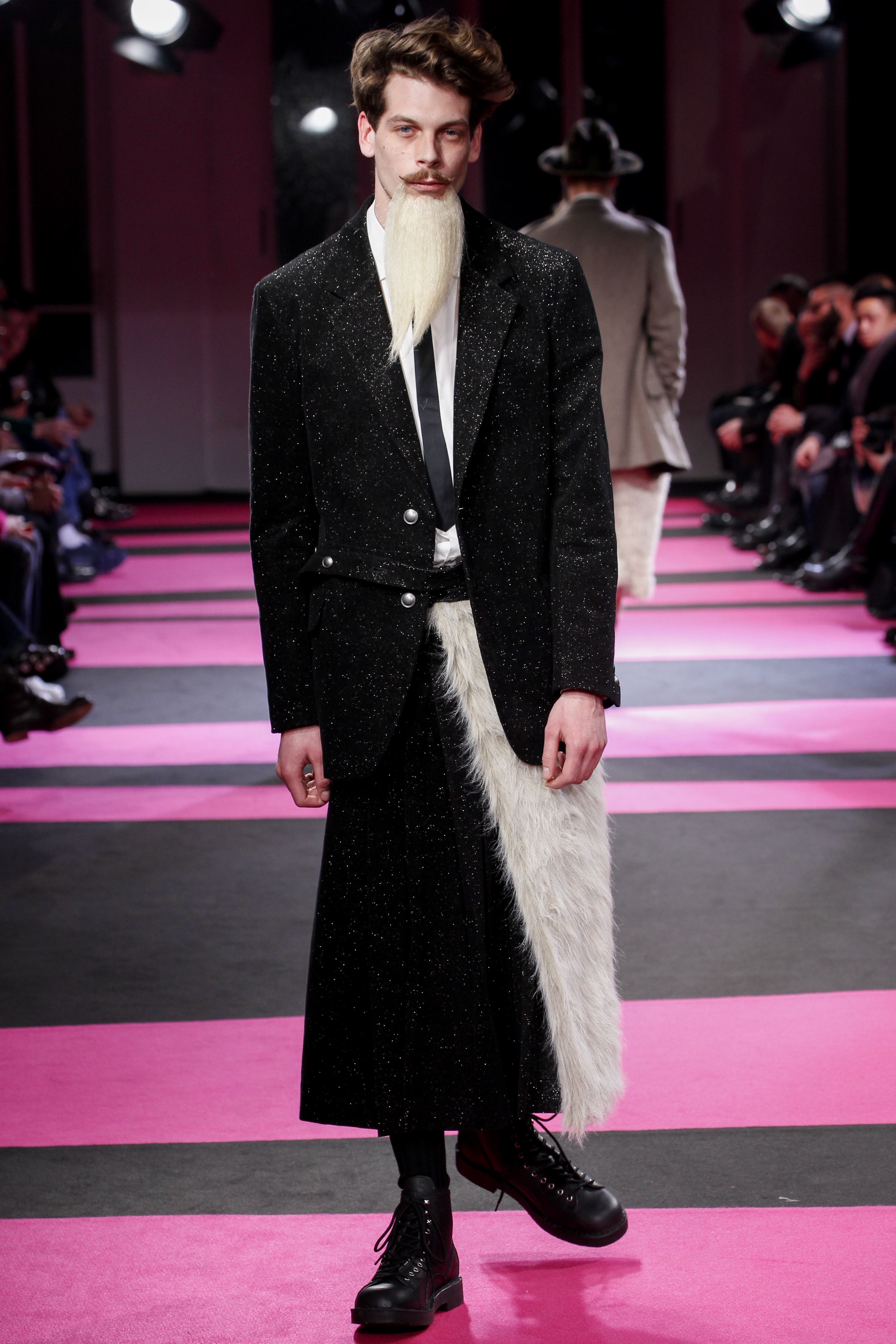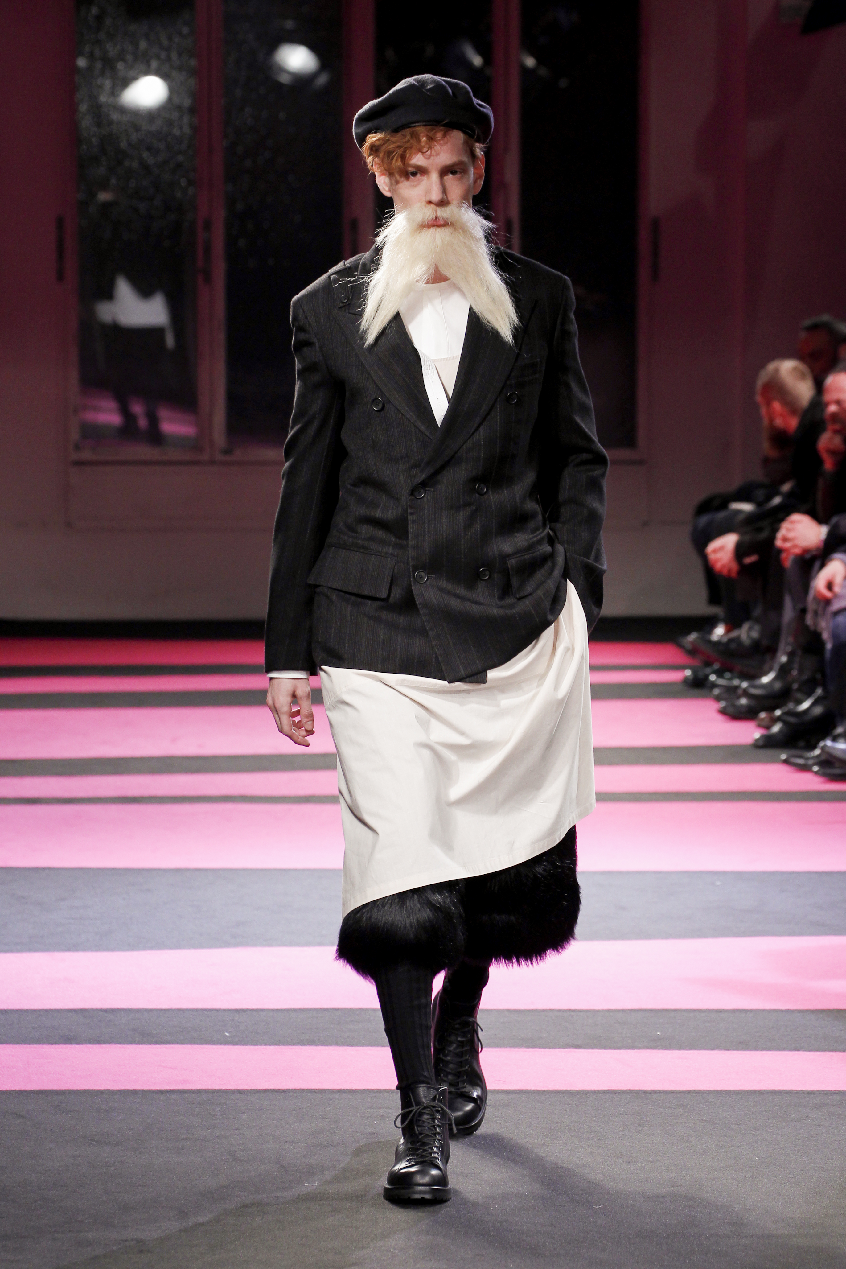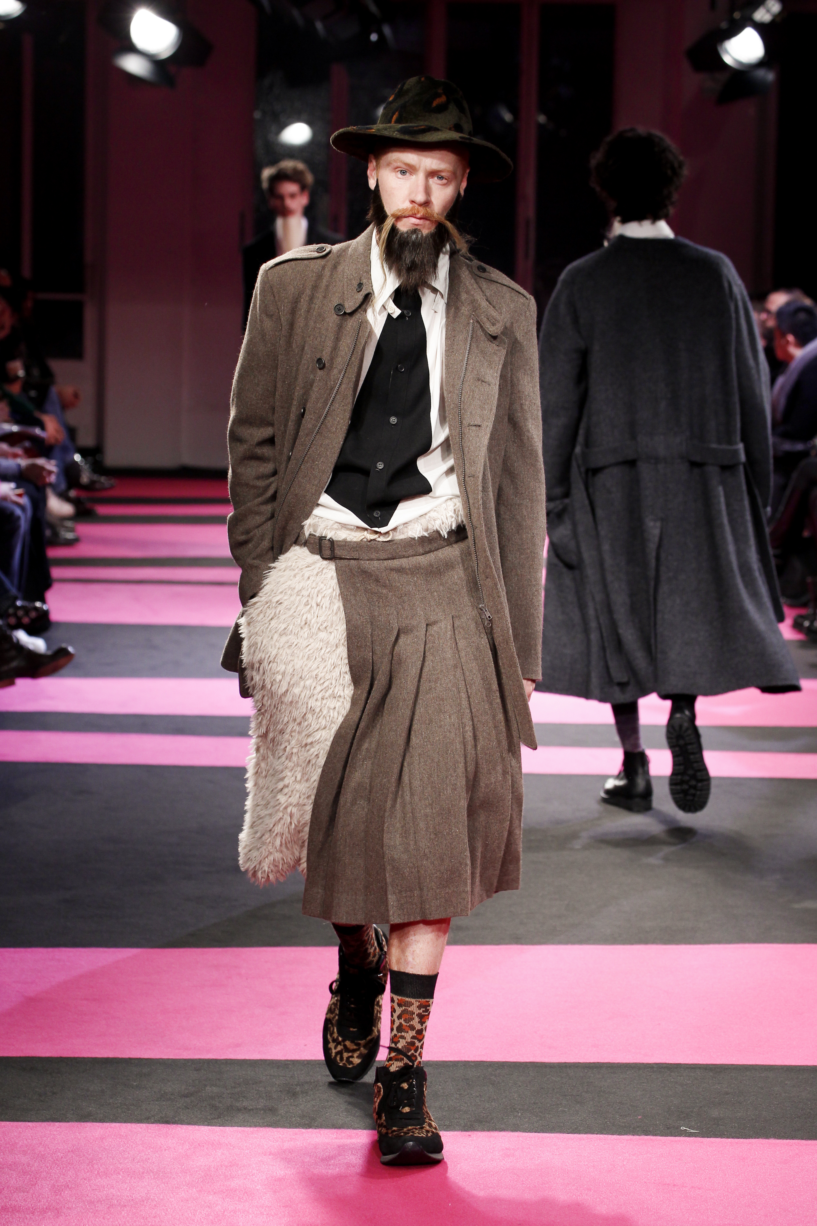 In cozy wool and fur, Yohji Yamamoto’s men’s skirts combine comfort and elegance.