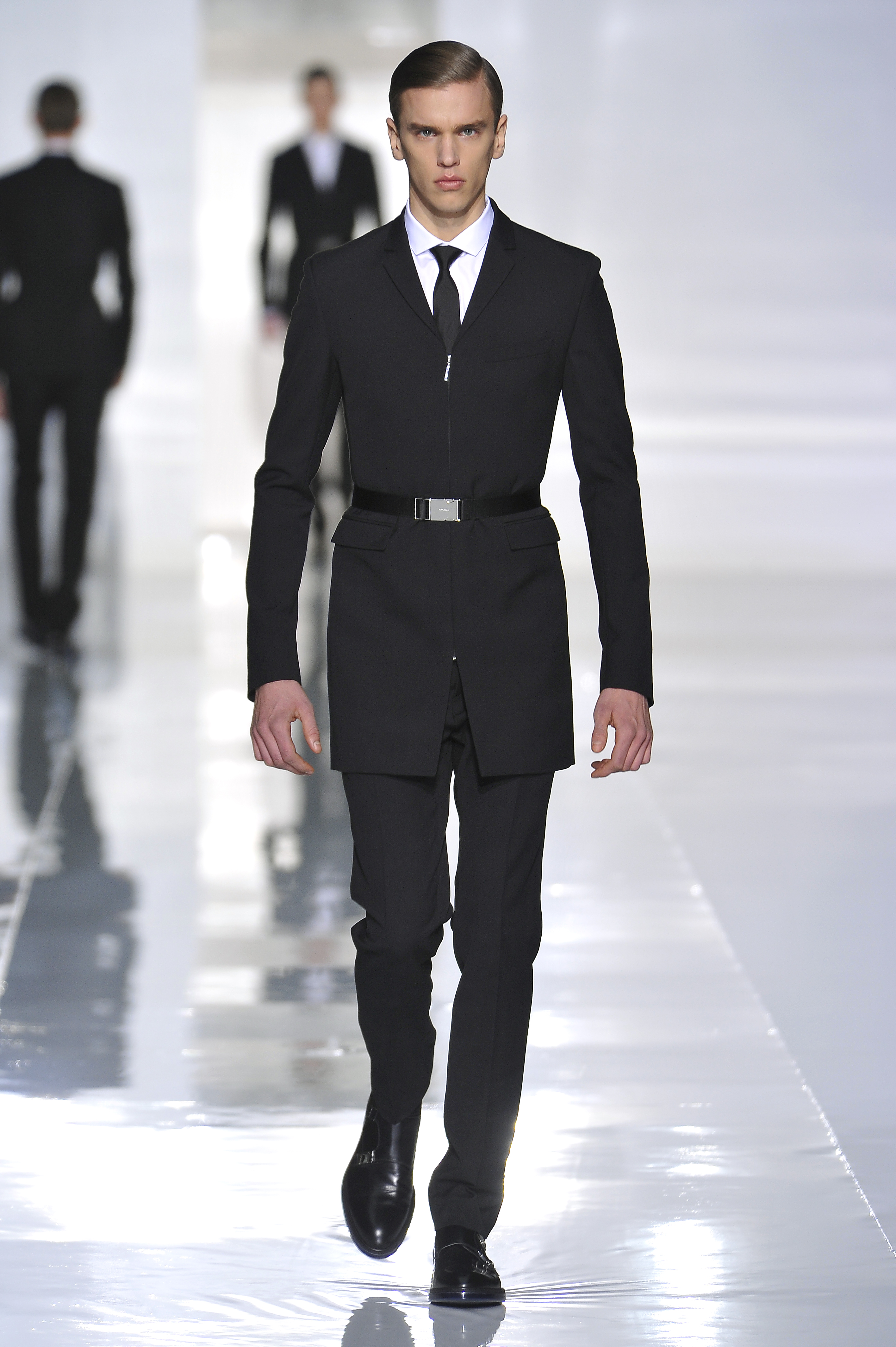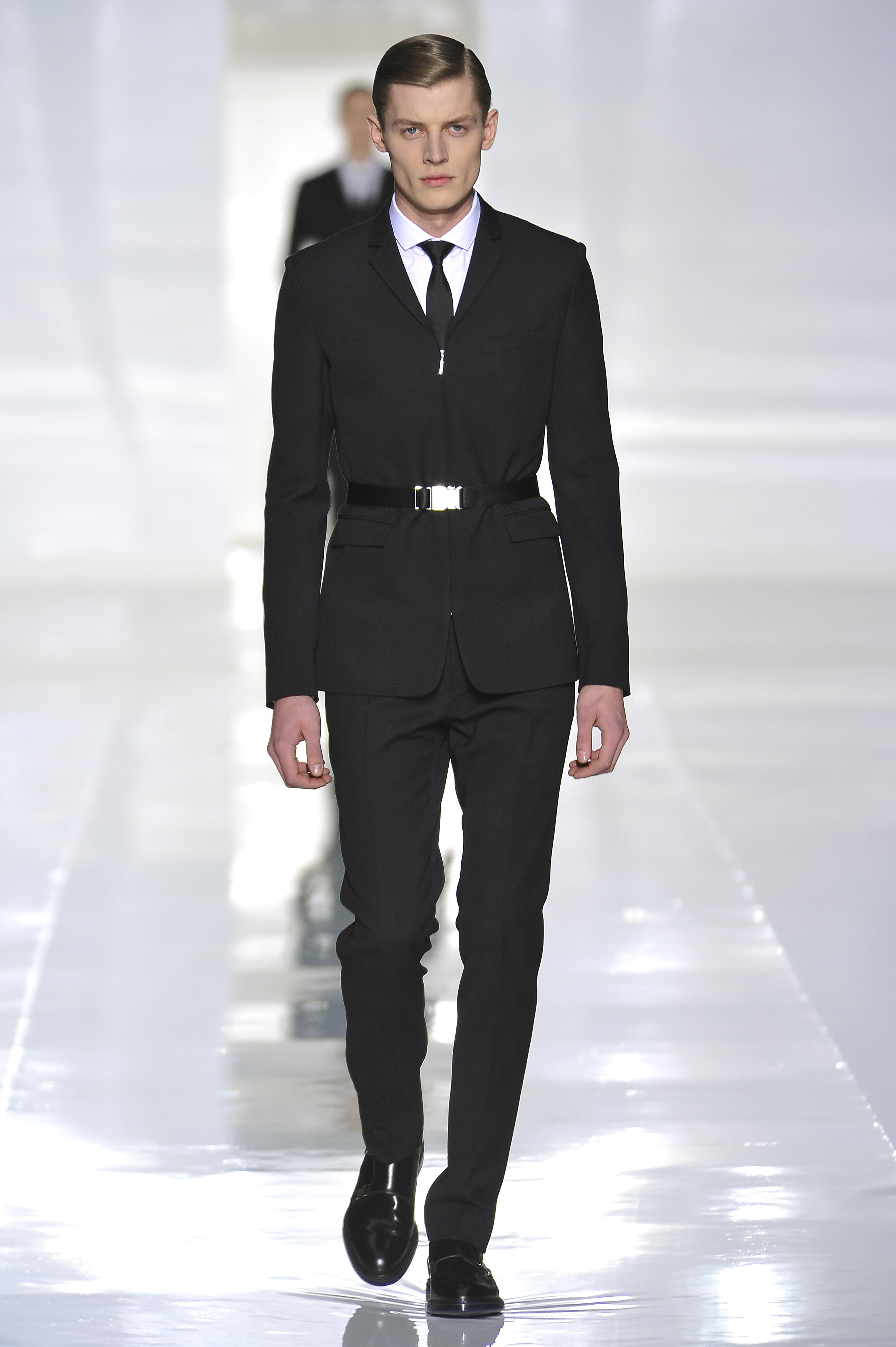 A polite opening to the show, the timeless, classic suit takes center stage. Nothing crazy at first glance, except that the jacket is zipped instead of buttoned. Dior men’s outfits are approached with military rigor, and practical details are plentiful without being shocking. These include belts with buckles reminiscent of those found on backpacks (quick-release buckles).