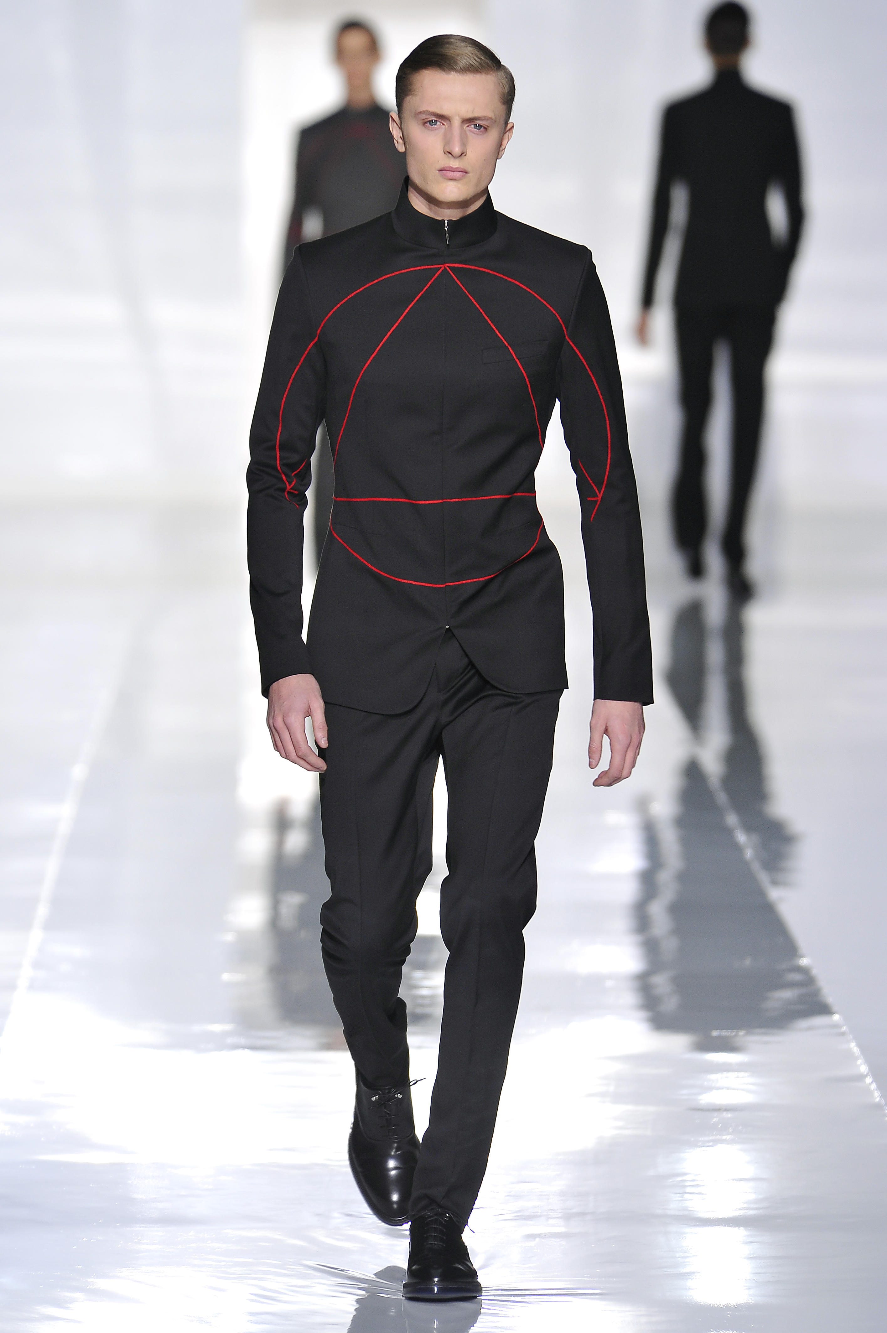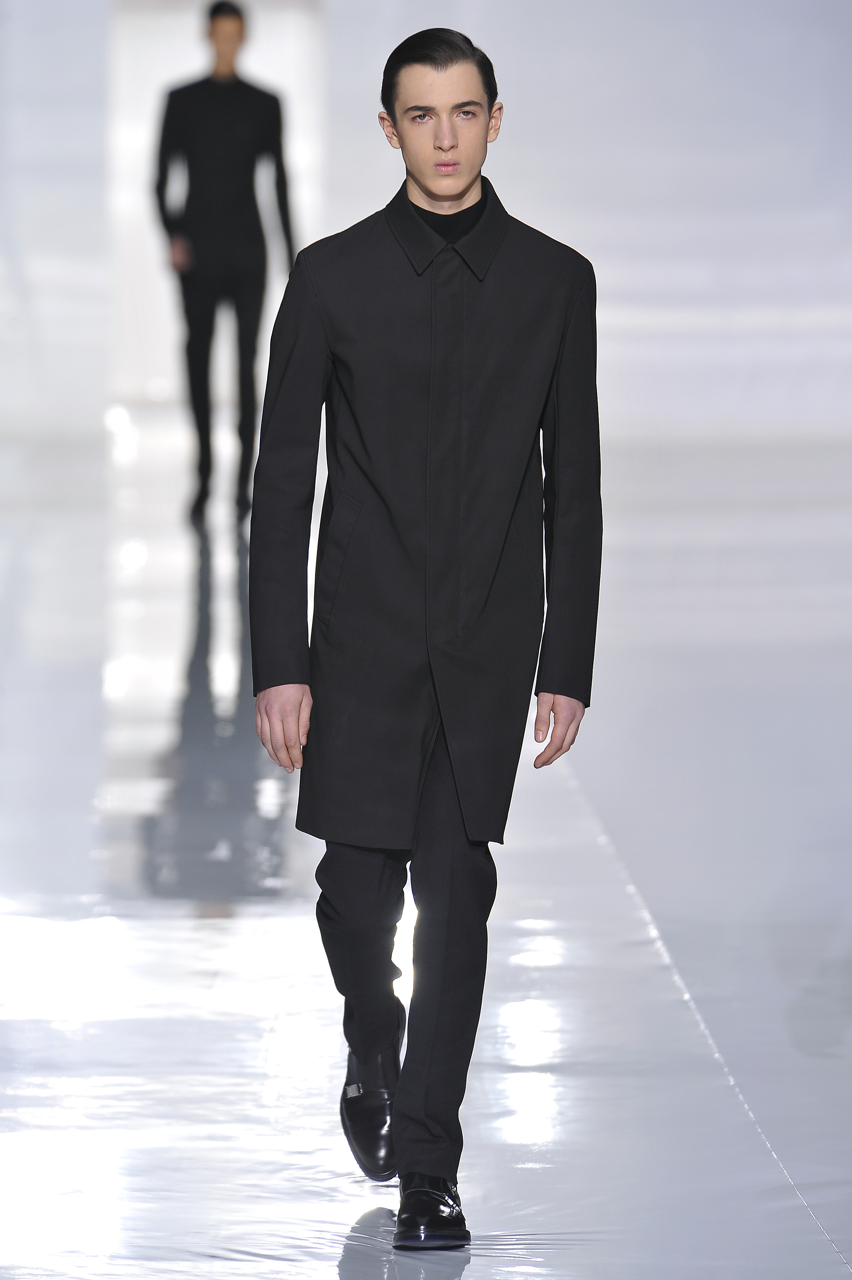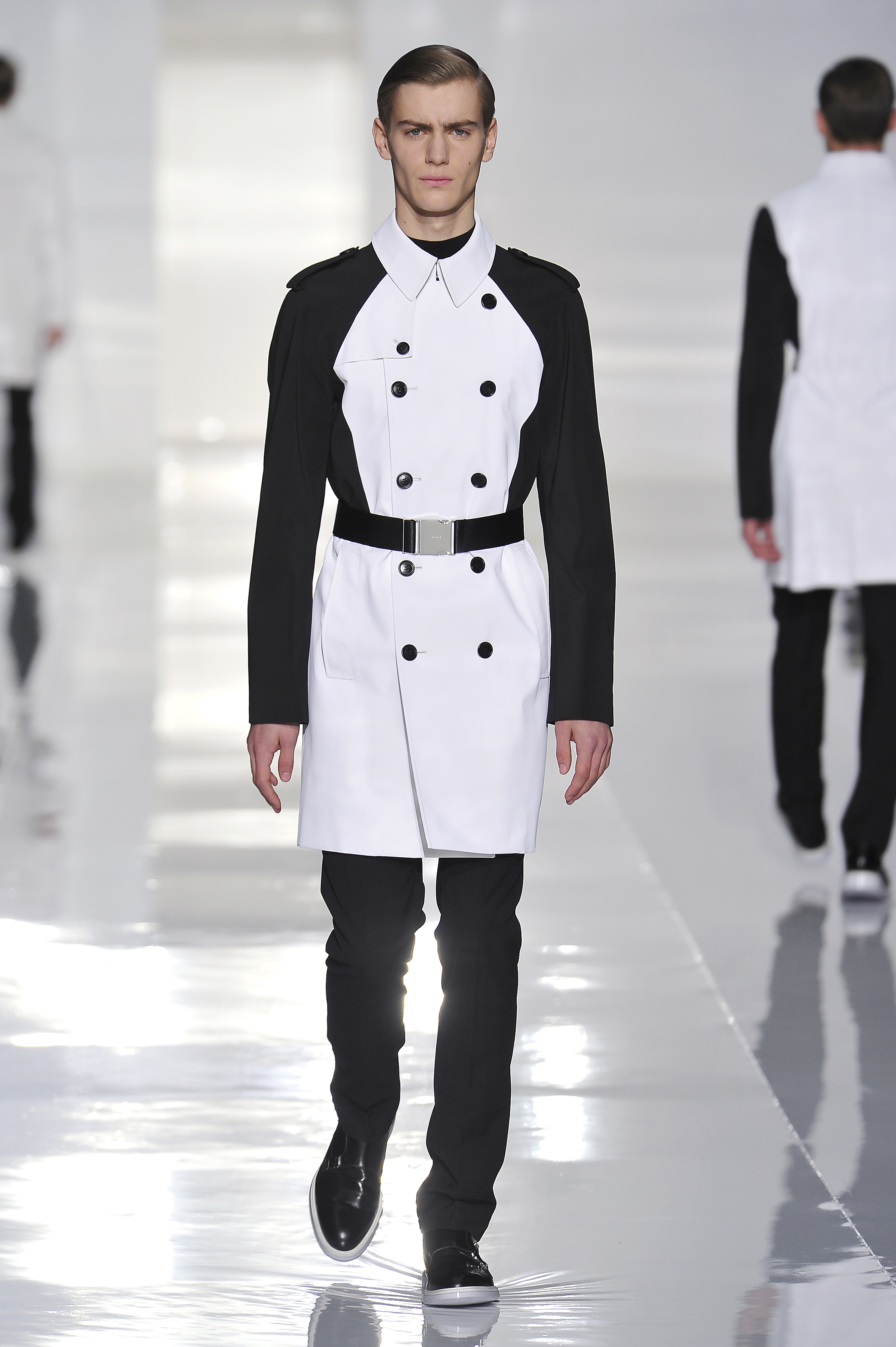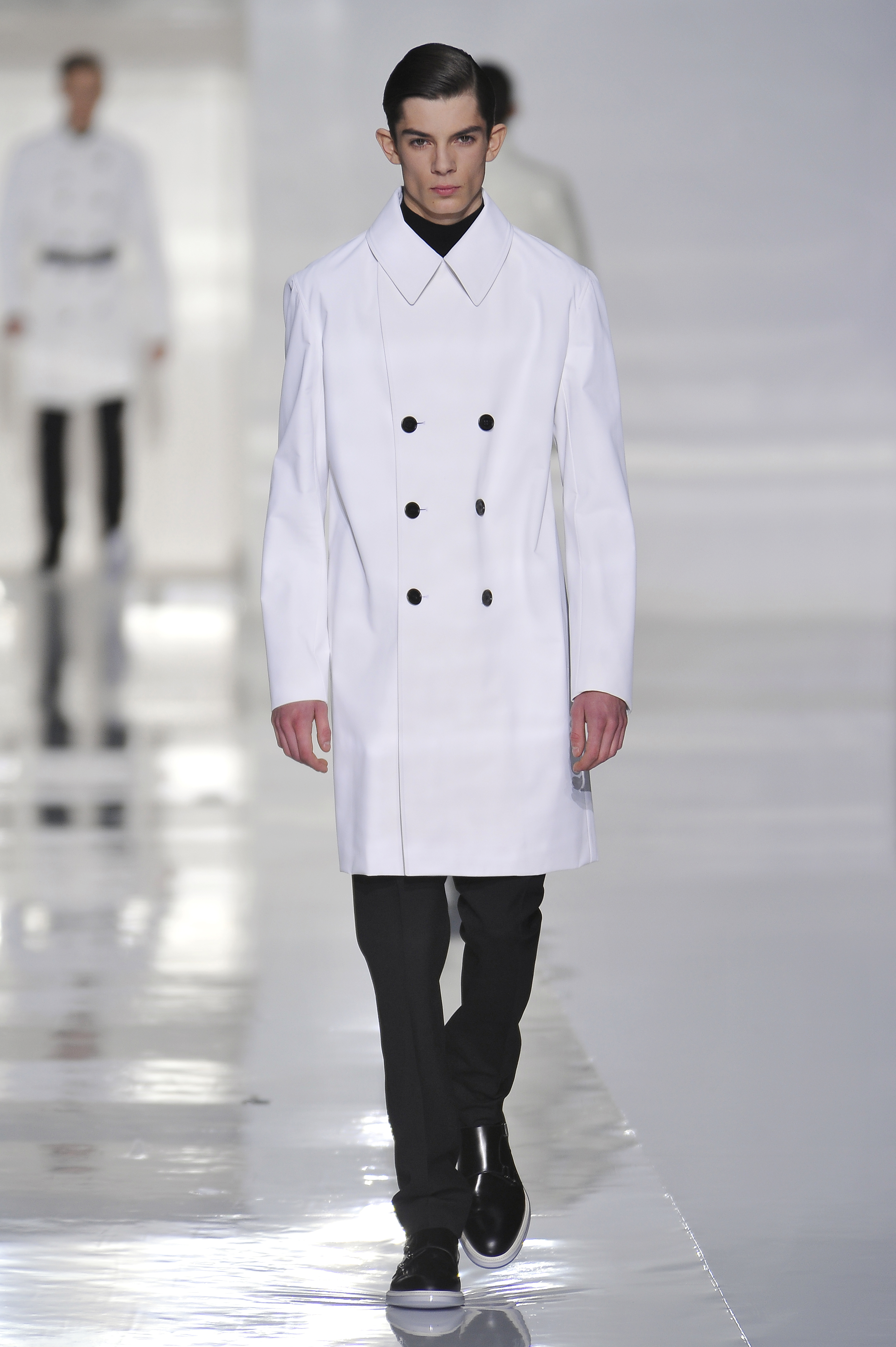 Virginal white closes the show synthesizing all the shapes and techniques Kris Van Assche has implemented for the Fall Winter 2013/2014 collection at Dior Homme.
