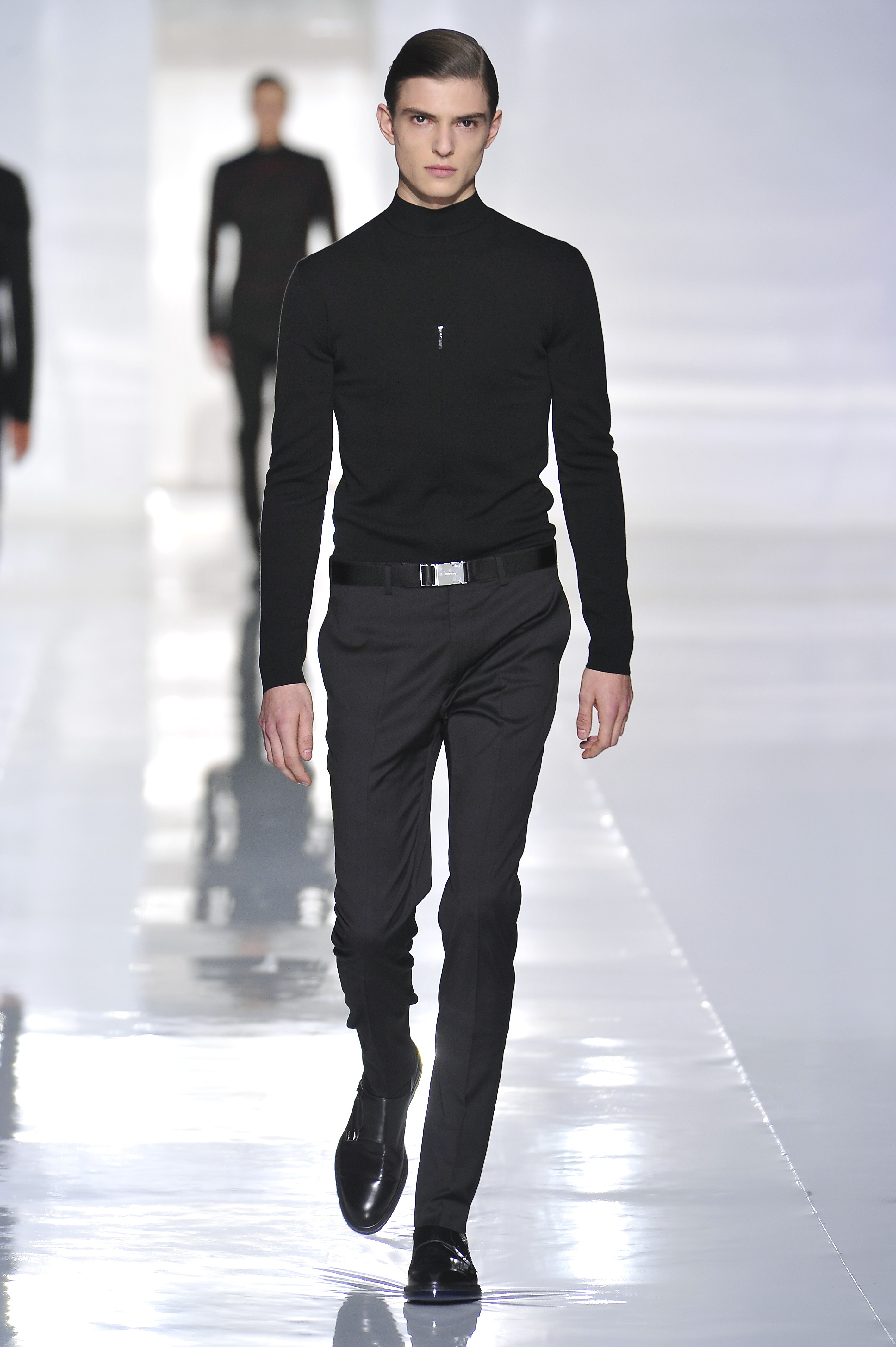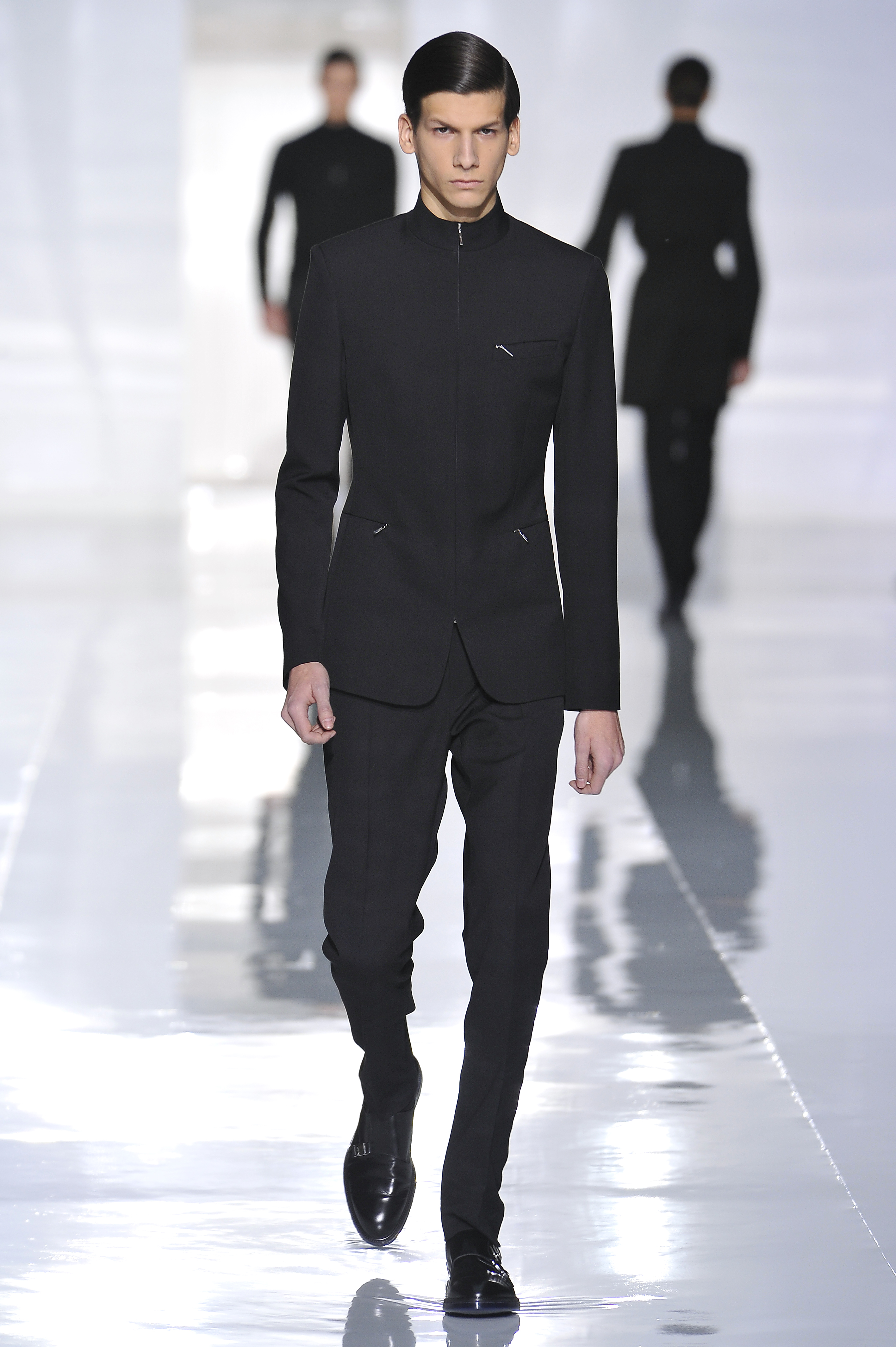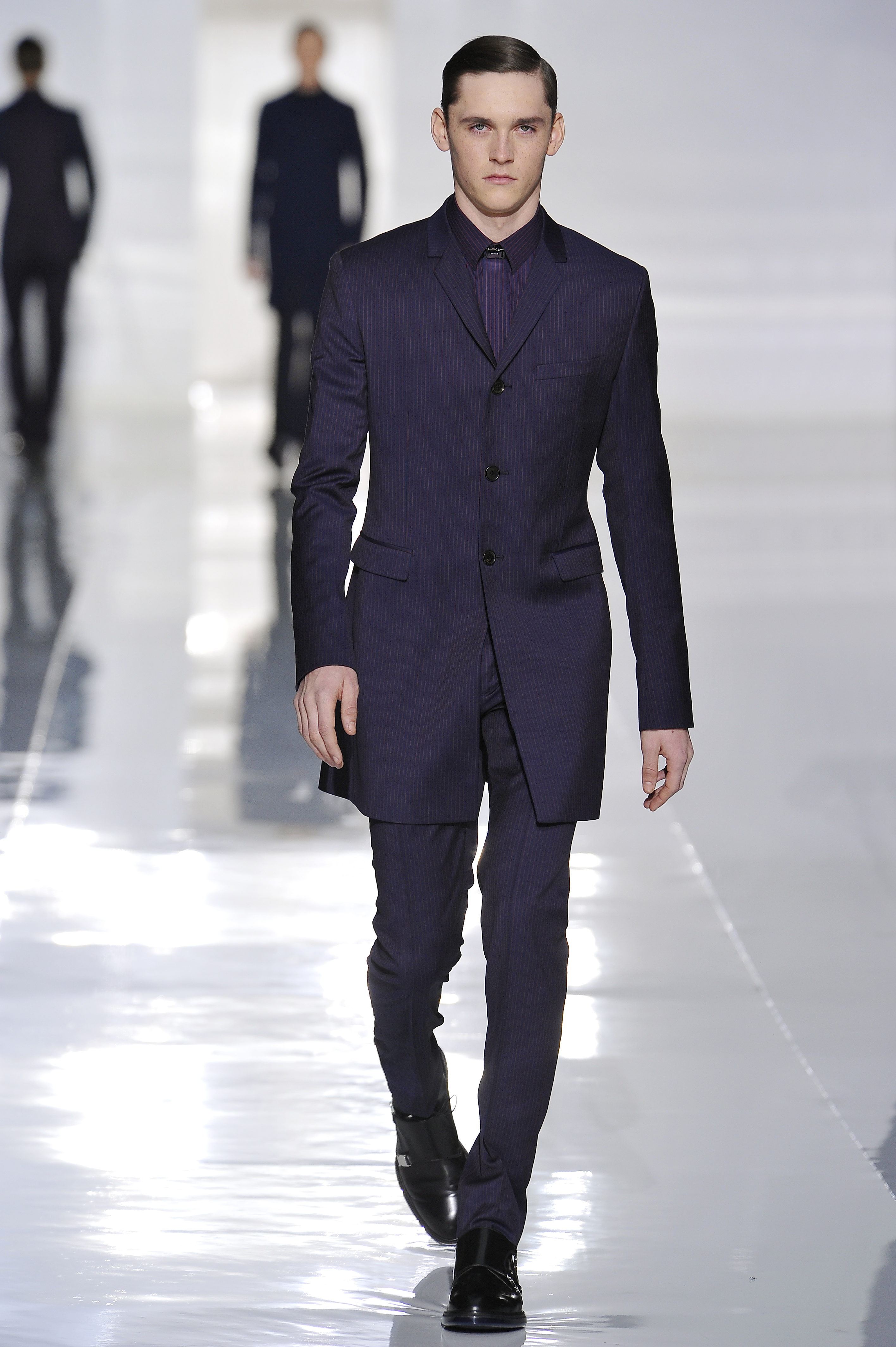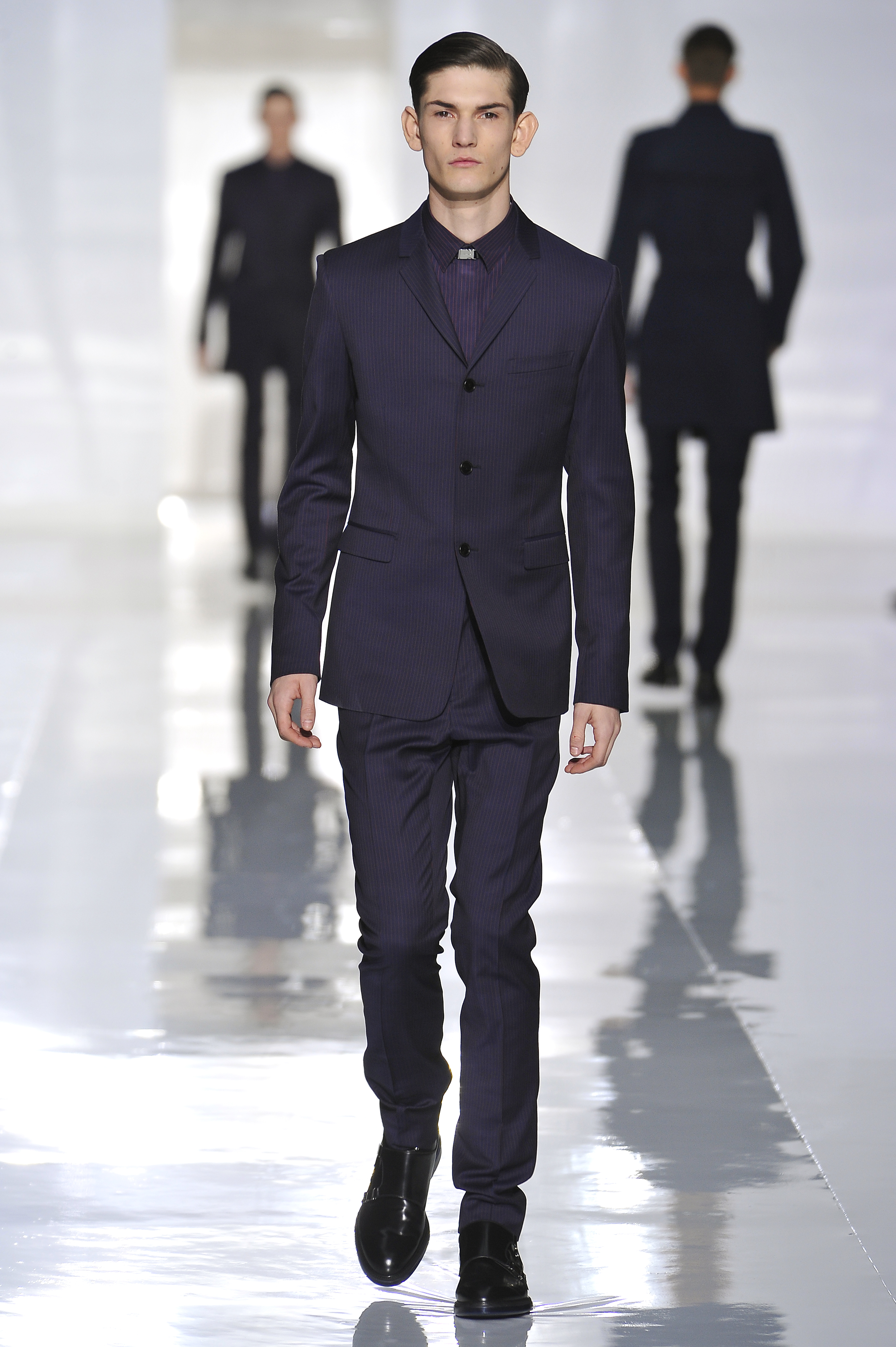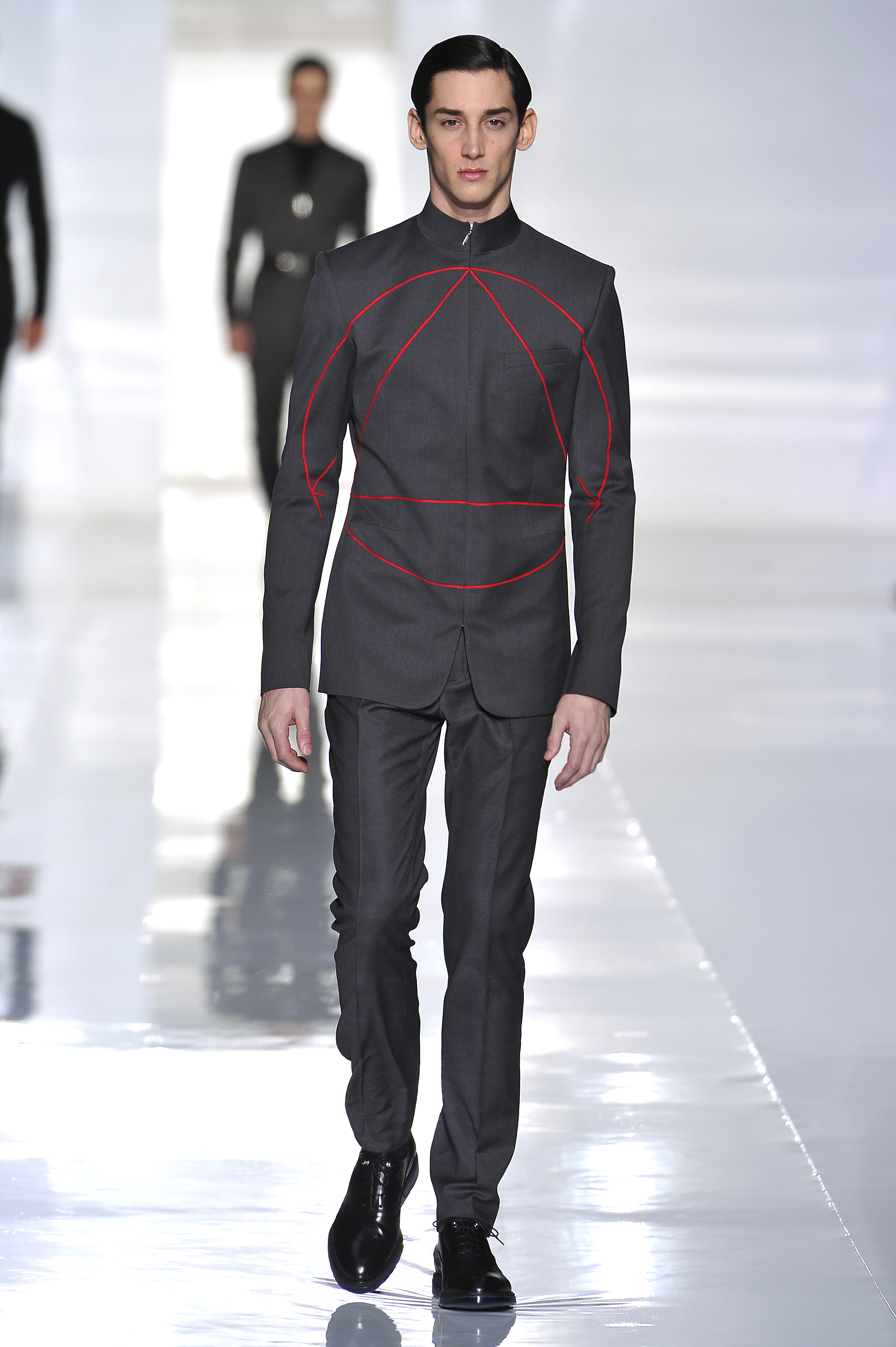Virginal white closes the show synthesizing all the shapes and techniques Kris Van Assche has implemented for the Fall Winter 2013/2014 collection at Dior Homme.