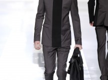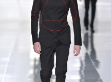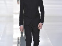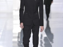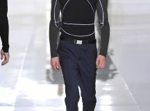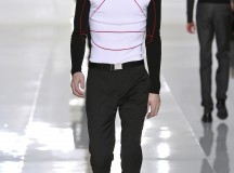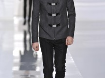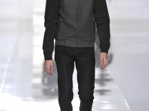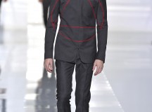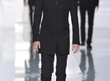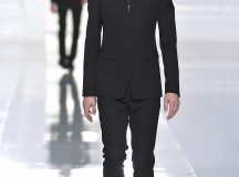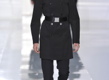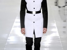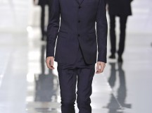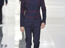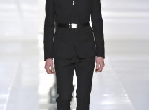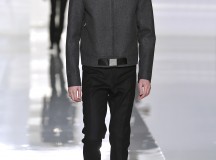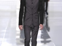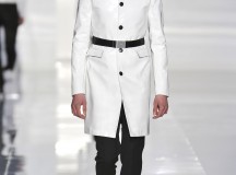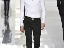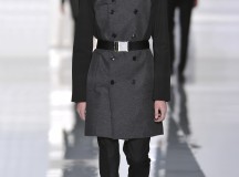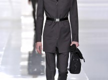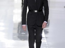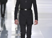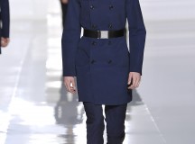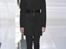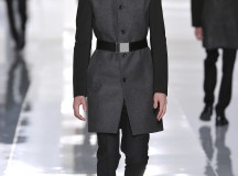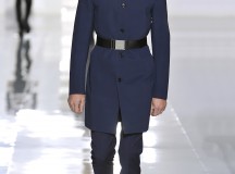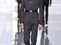 Tenues policées ouvrant le défilé, le costume, éternel et classique est mis à l’honneur. Pas de folies aux premiers abords si ce n’est que la veste est zippée au lieu d’être boutonnée. L’homme, chez Dior aborde les tenues avec une rigueur de militaire et les détails pratiques sont nombreux sans pour autant choquer. Ainsi, on retrouve des ceintures avec des boucles rappelant celles que l’on a sur les sacs a dos (les boucles rapides).