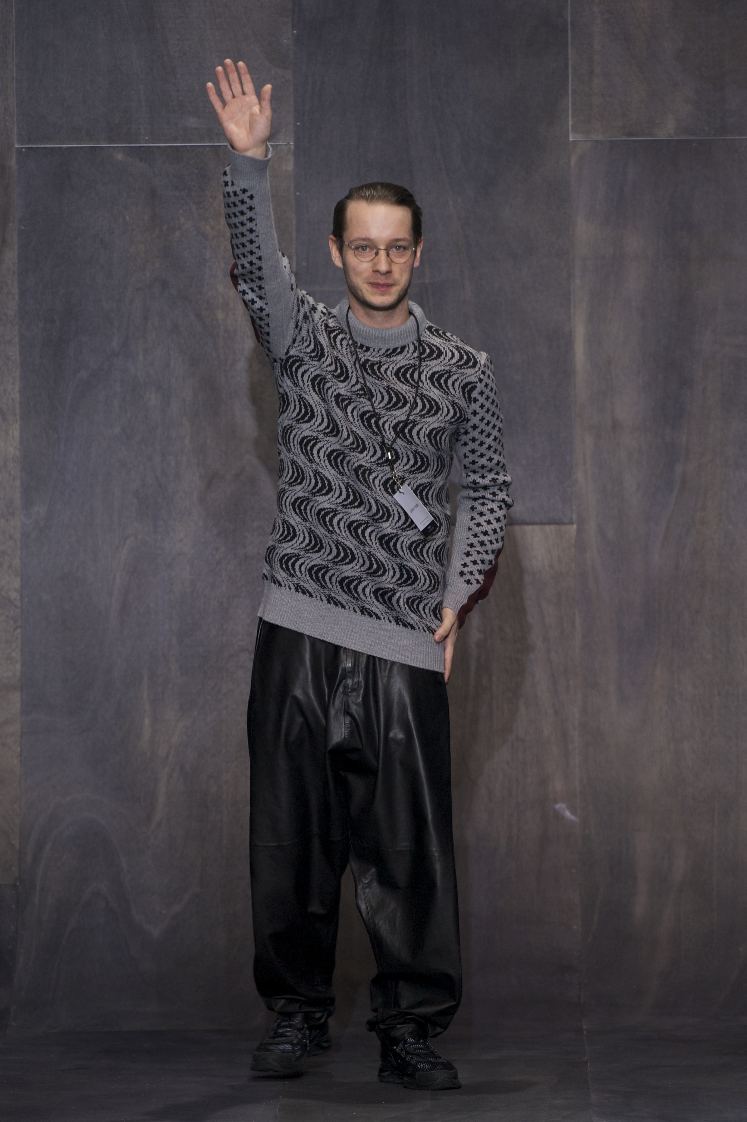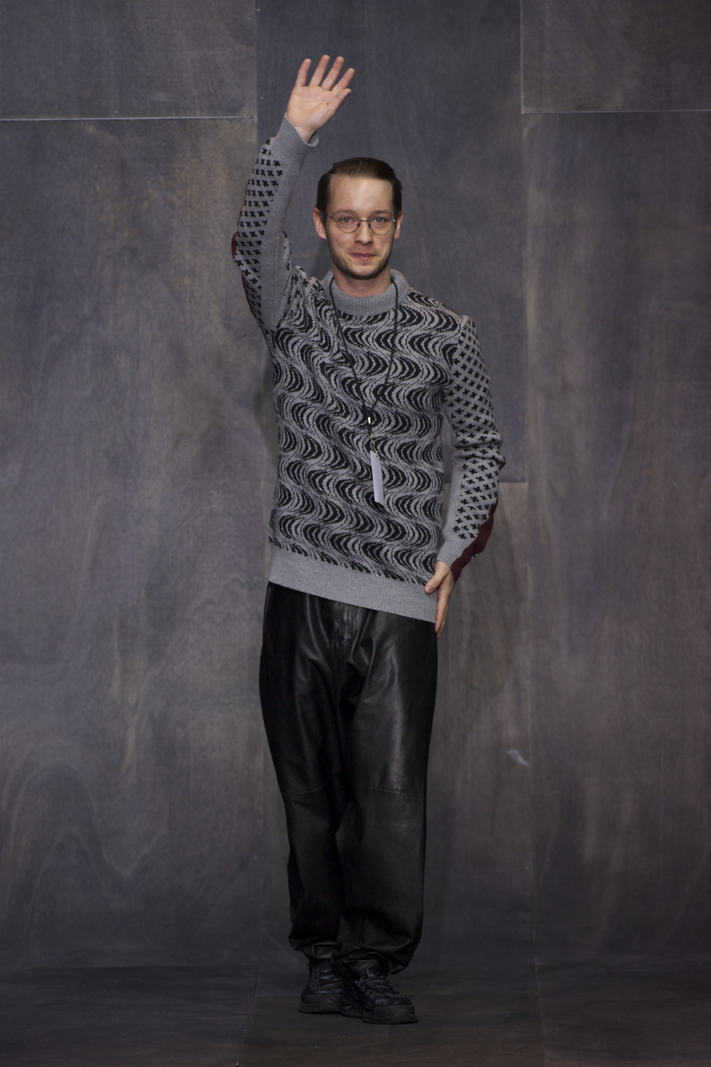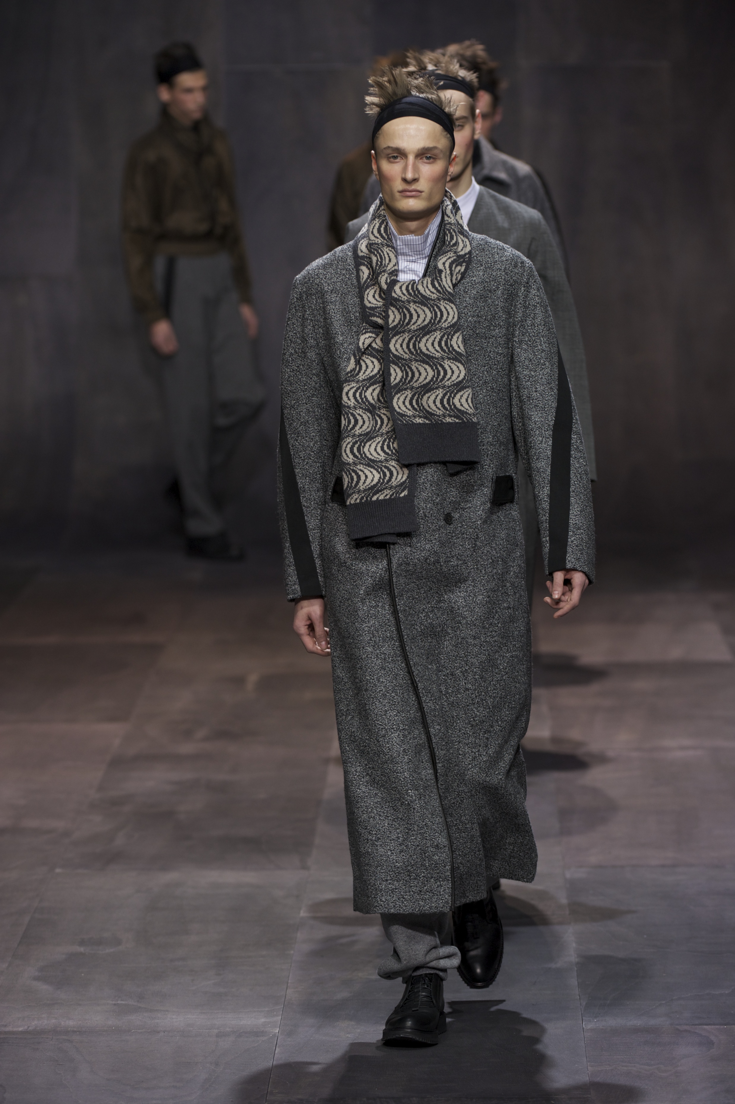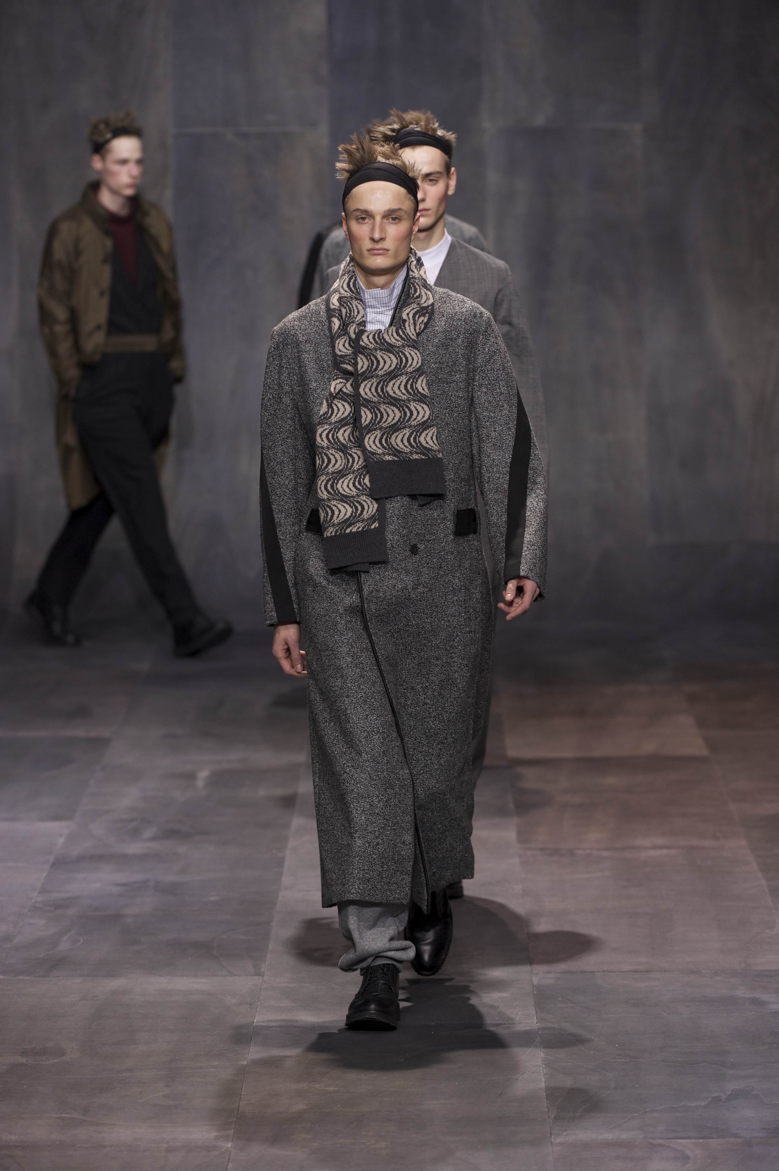 Le gris, couleur dominante chez Damir Doma, il se retrouve sur des looks mélangeant les volumes, griffe du créateur, et des vêtements plus près du corps.