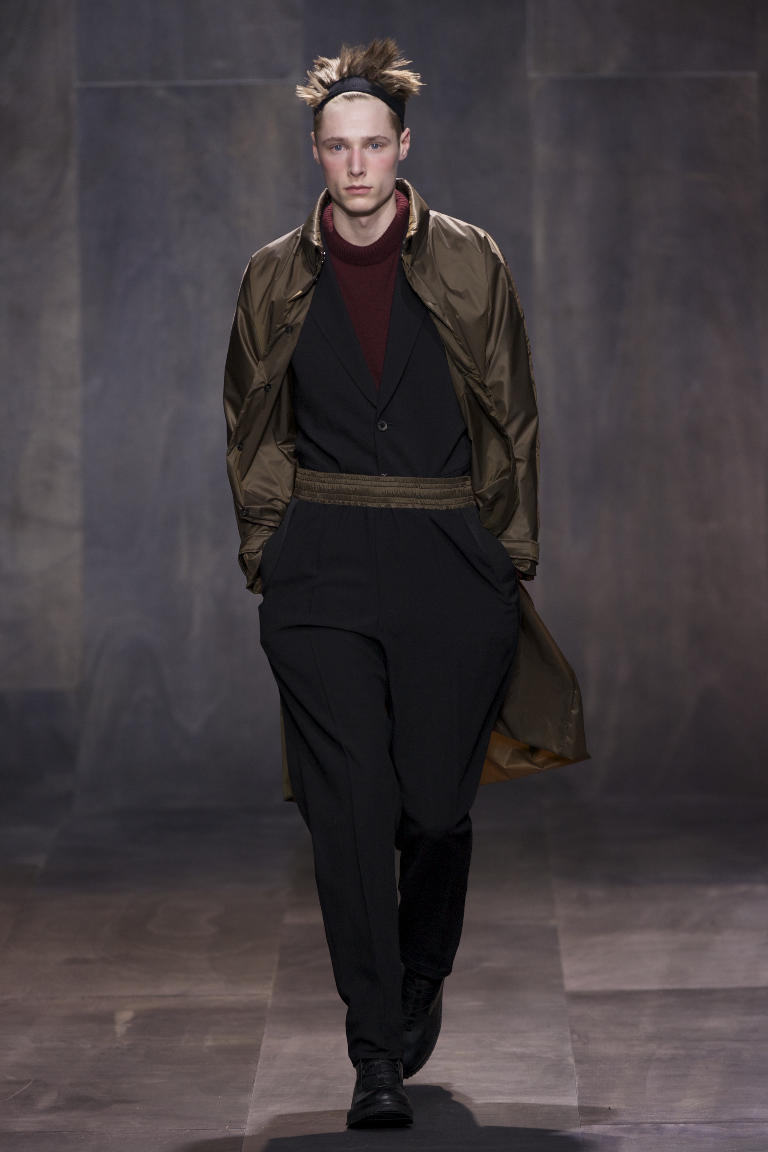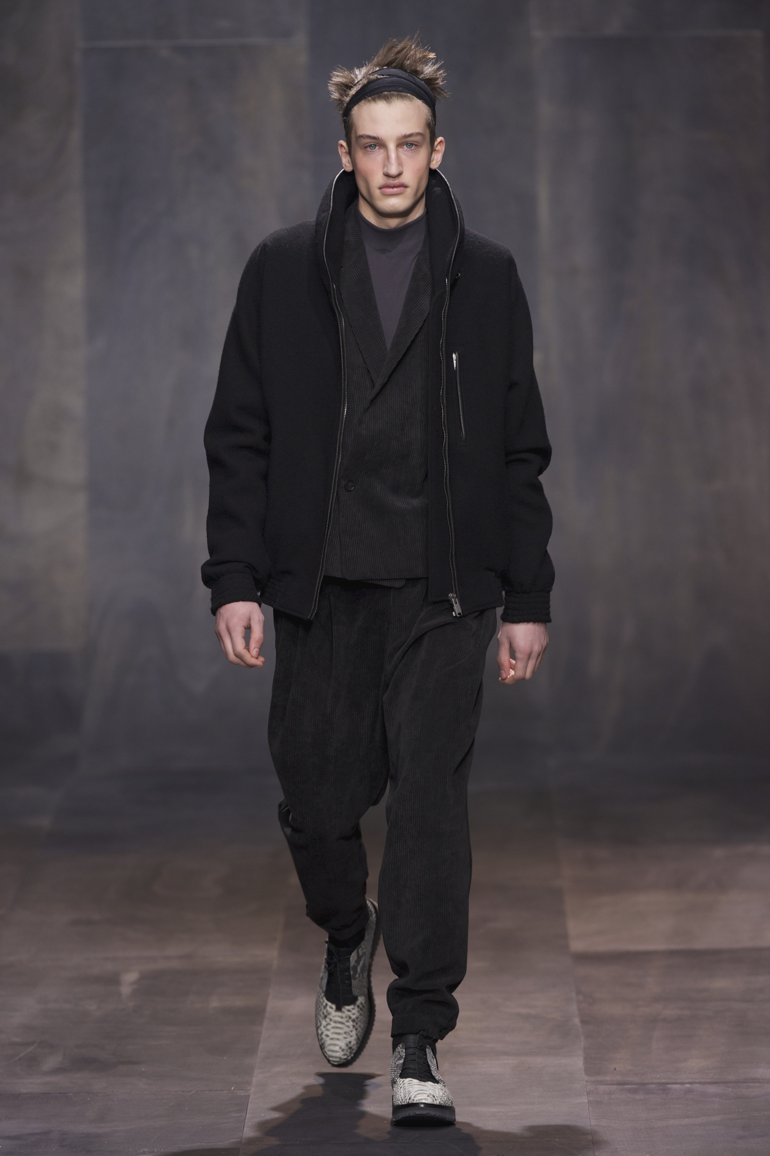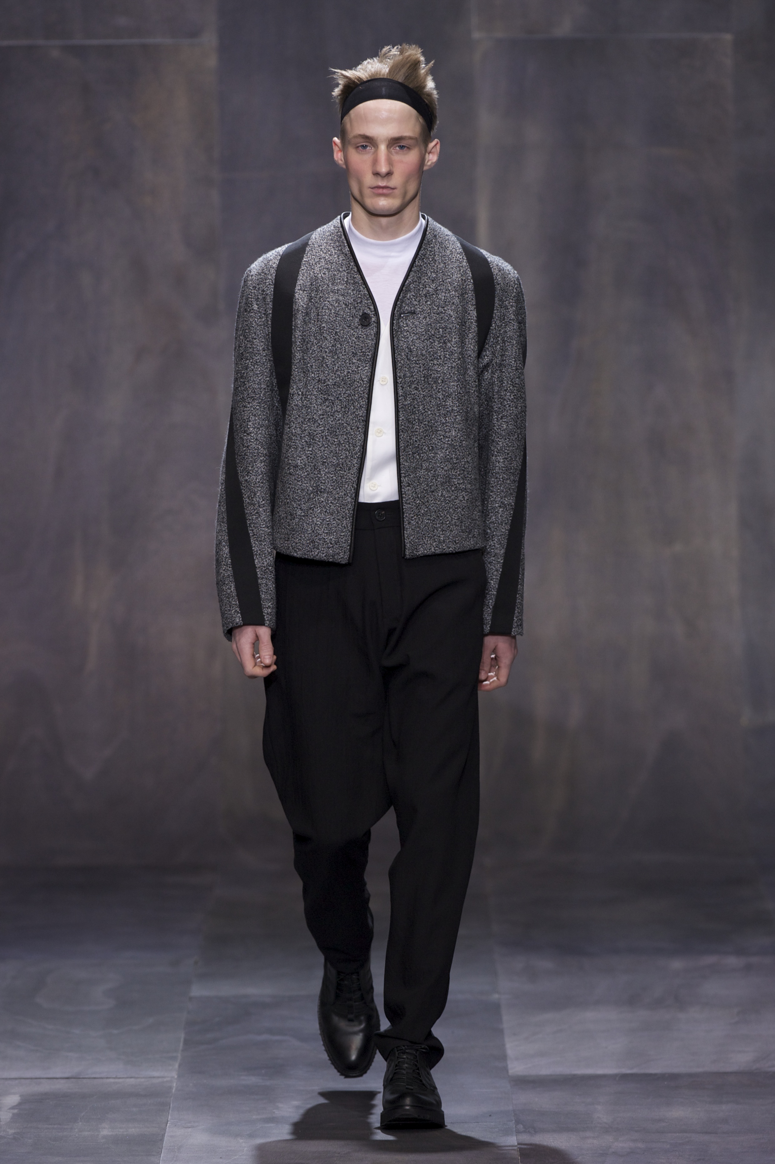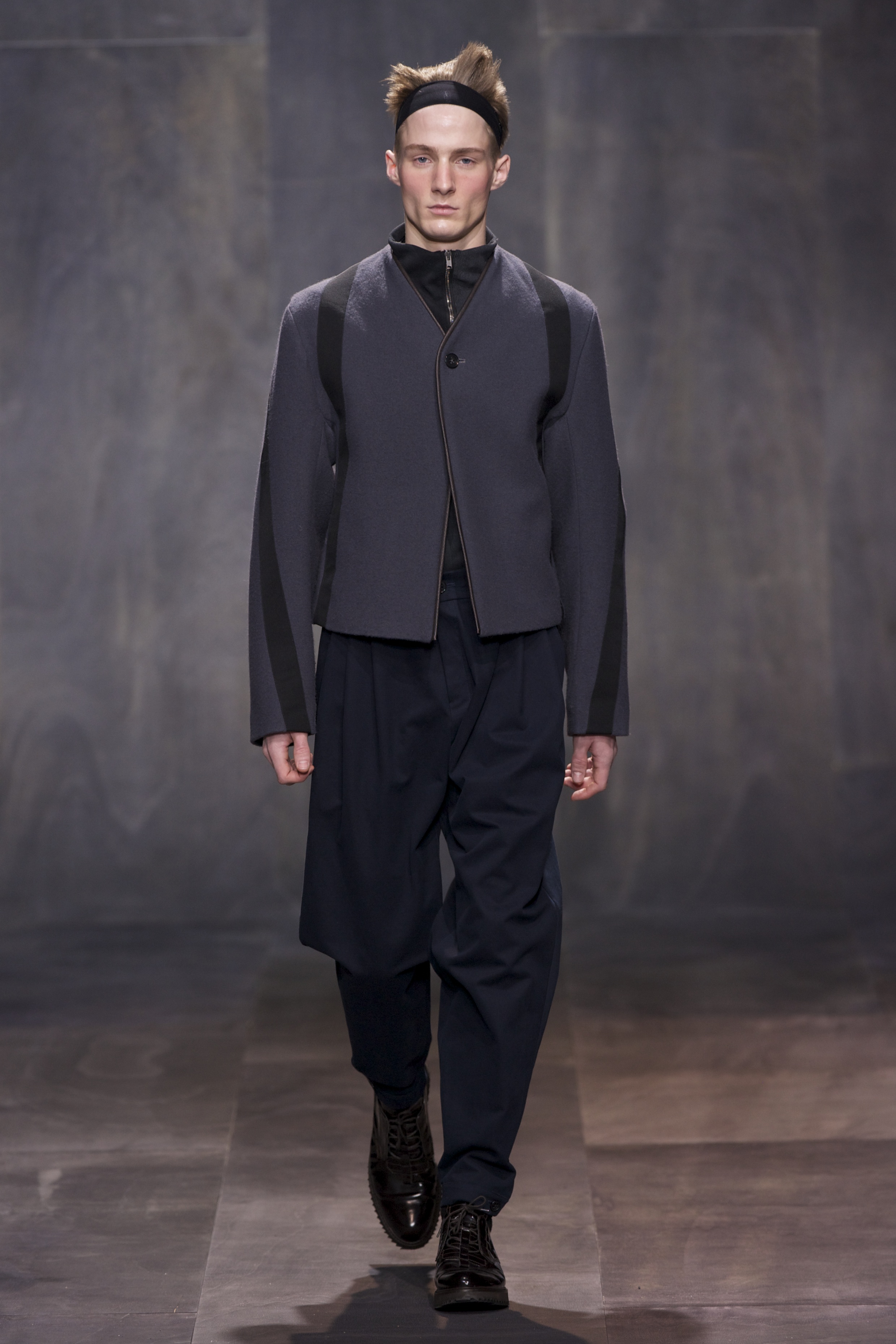 Une collection toute en (dé)construction maitrisée chez Damir Doma, c’est ce à quoi on a pu assister lors de son défilé hommes automne/hiver 2013/2014. Cheveux déstructurés pour des tenues ou le tailoring est définitivement le chemin pris, Damir Doma se rapproche d’un style plus structuré que ce a quoi il nous avait habituait, le créateur a choisi des coupes plus précises et pointues que les saisons précédentes.