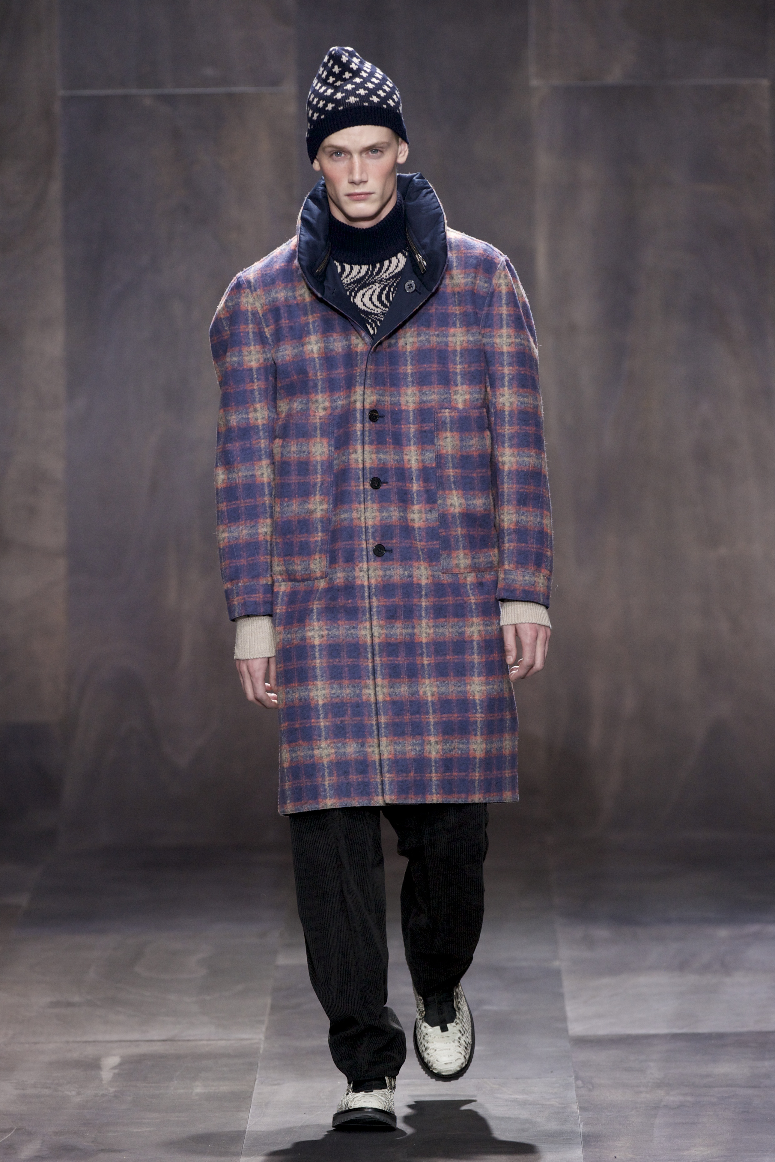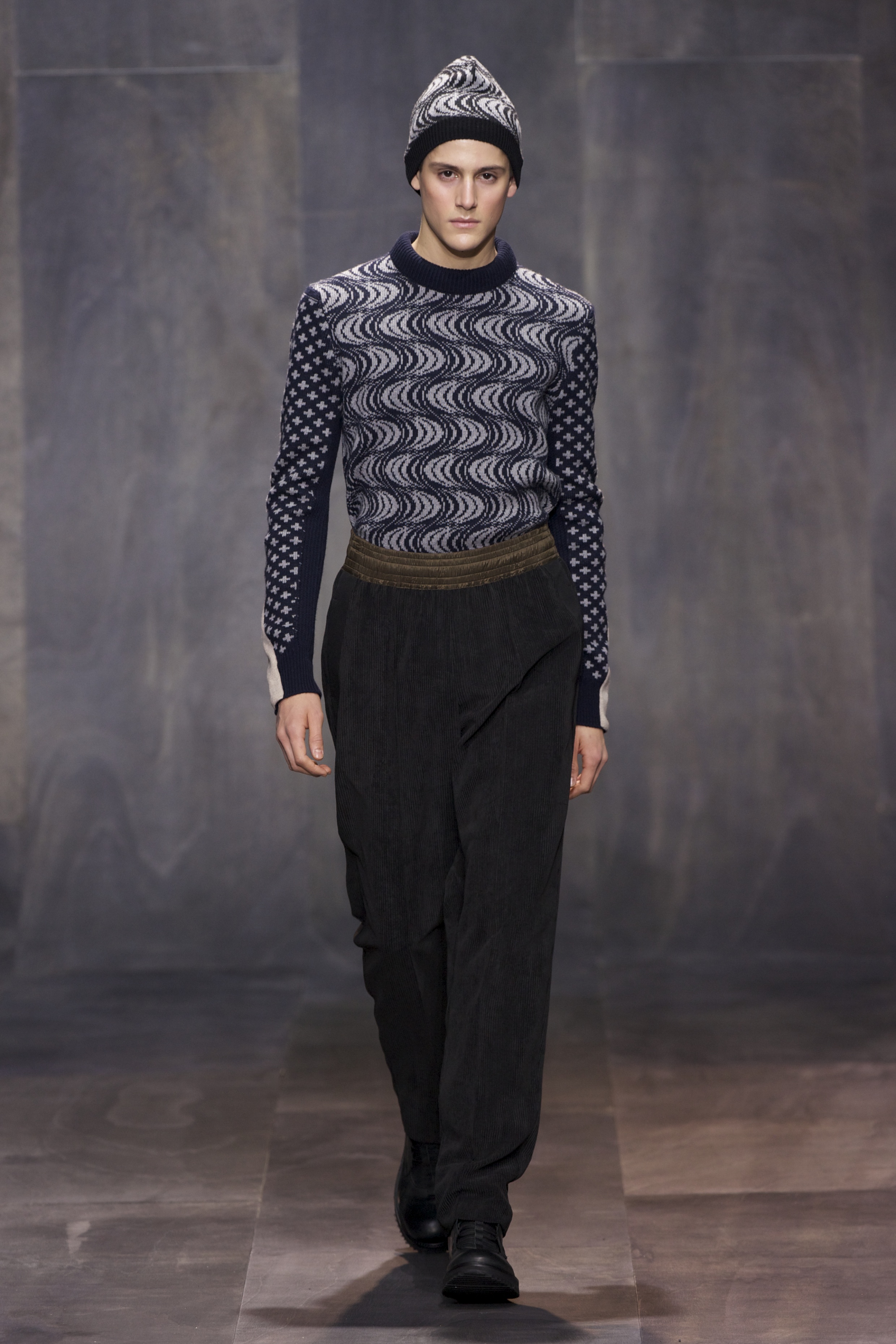 Saison oblige, c’est aussi une collection hivernale et montagnarde ou l’on retrouve des mailles et de la laine et quelques imprimés (tartan oversize sur les vestes manteaux ainsi que des motifs ondulatoires et des croix carrées sur les manches).