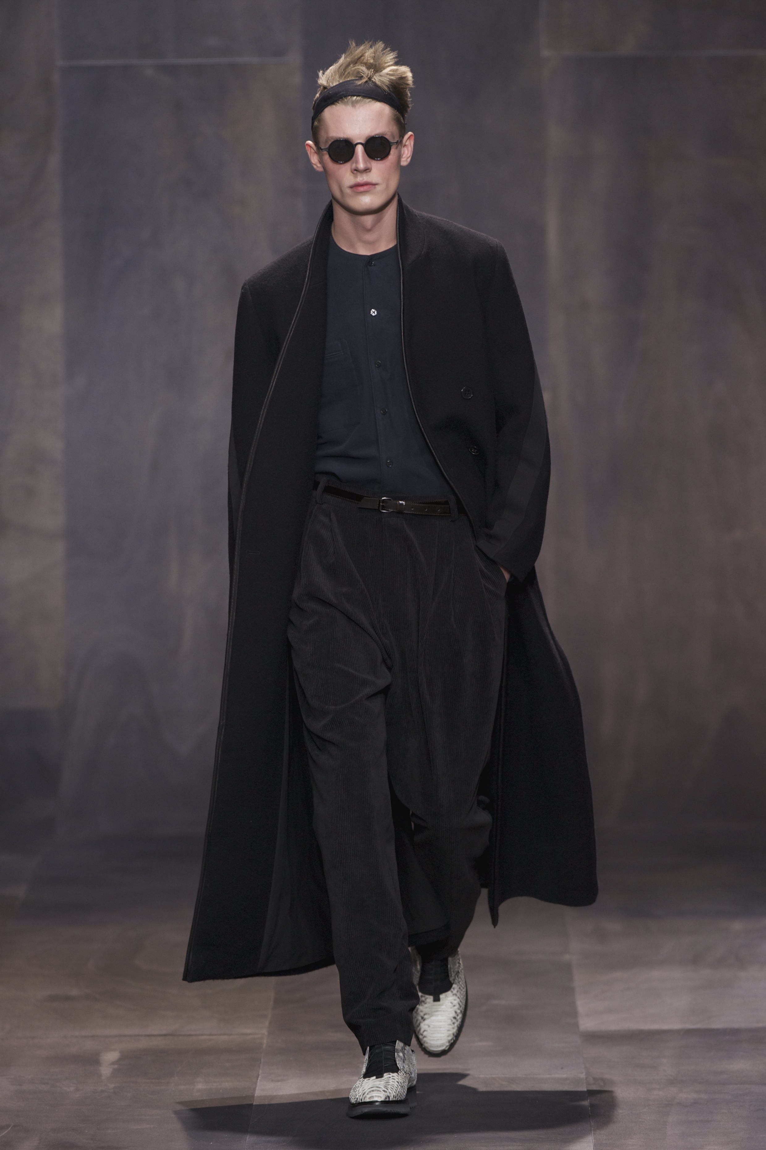 Le gris et le noir sont rois dans le royaume glace de Damir Doma, ce qui n’empêchent pas des couleurs telles que le bleu marine, l’ocre, le marron ou même le blanc, clin d’œil aux neiges éternelles, de se joindre à la collection.