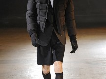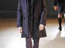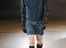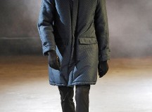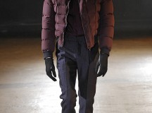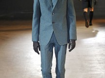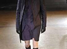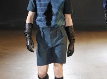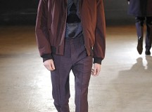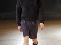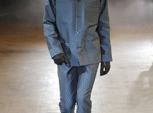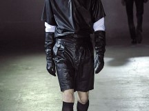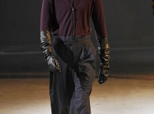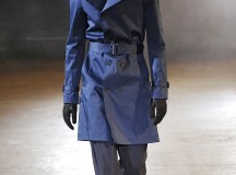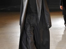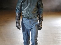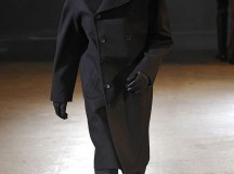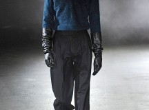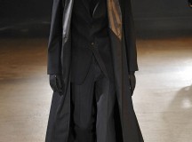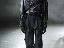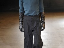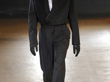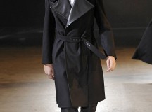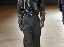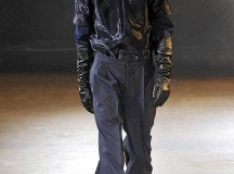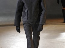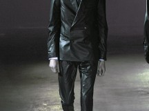 Le cuir noir travaillé de façon à ressembler a du papier évoque un homme, qui, au détour d’un recoin sombre, frôle mais ne touche pas, la matière accompagnant le mouvement de façon légère et aérienne. Versatile ? Assurément, il mélange les matières allègrement mais sans ostentation, c’est un personnage torturé mais, dans sa psychose, il reste élégant.