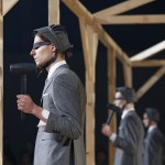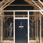 Le défilé, était un peu différent de ce dont on a l’habitude. En lieu et place d’un podium, une structure en bois, s’apparentant à une maison sur laquelle des mannequins martelaient et ce, des l’arrivée des invités, trônaient au milieu du Club de Tennis de Paris. Quant au défilé en lui même, il s’agissait en fait des mannequins traversant les différentes pièces de la maison de façon totalement synchronisée. L’effet visuel était assez surprenant et on n’ose pas imaginer la préparation que cela a du demander.