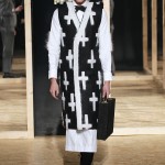 On dénote une certaine inspiration religieuse chez Thom Browne, les motifs de croix nous mettant sur la voie. Il est vrai que les longueurs de certains manteaux ainsi que la présence de jupes et robes font penser aux vêtements religieux et monacaux.