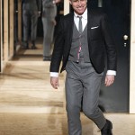 Célébré récemment par la première dame des États Unis qui avait choisi de porter un de ses manteaux pour l’inauguration du second mandat de son mari, Thom Browne présentait sa collection le dernier jour de la semaine de la mode masculine à Paris.