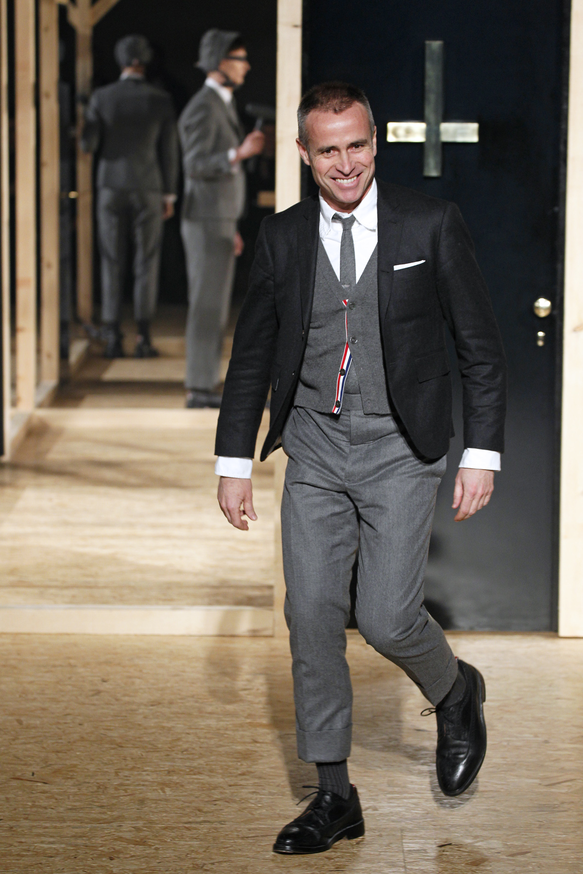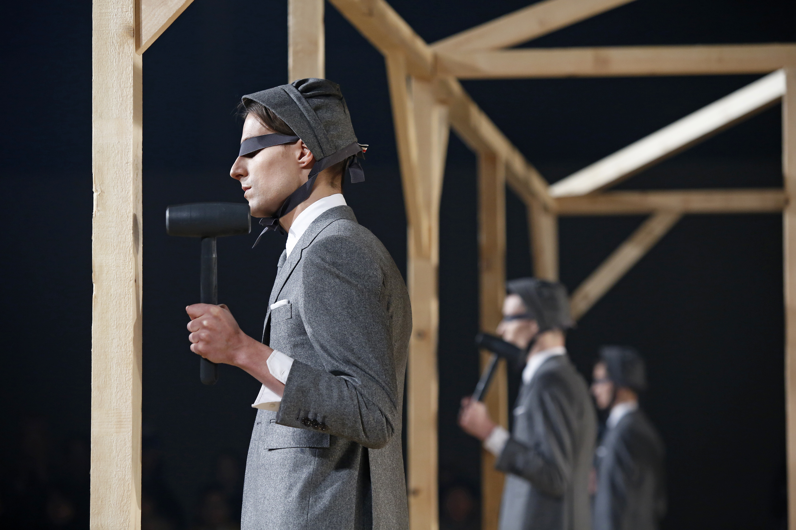 Célébré récemment par la première dame des États Unis qui avait choisi de porter un de ses manteaux pour l’inauguration du second mandat de son mari, Thom Browne présentait sa collection le dernier jour de la semaine de la mode masculine à Paris.