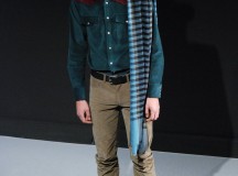 Dandy éternel, l’homme chez Agnes B a une allure chic sans effort, il reprend parfois les codes de la classe à l’italienne ( nœud papillons, foulards en soie) et n’hésite pas a laisser s’inviter la couleur dans sa garde robe. Le cuir est très présent, l’inspiration « cowboy » ayant visiblement déteint même sur le choix des matières.