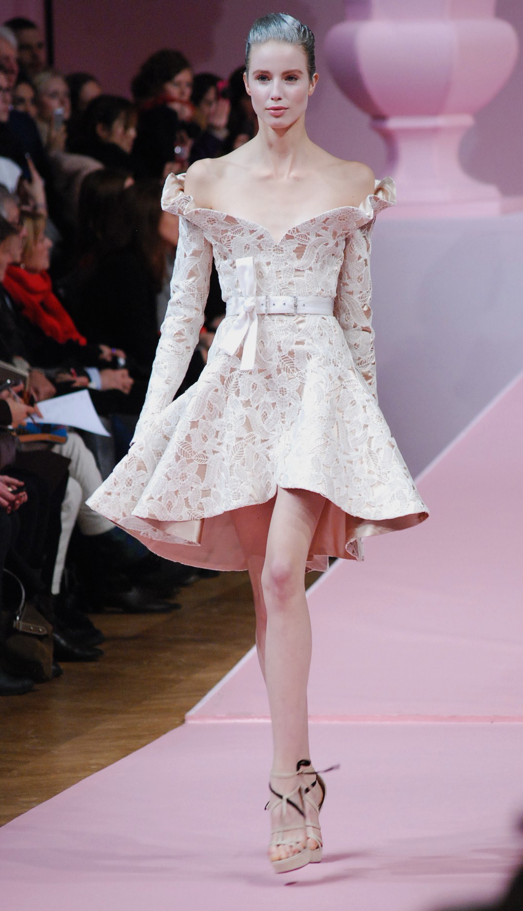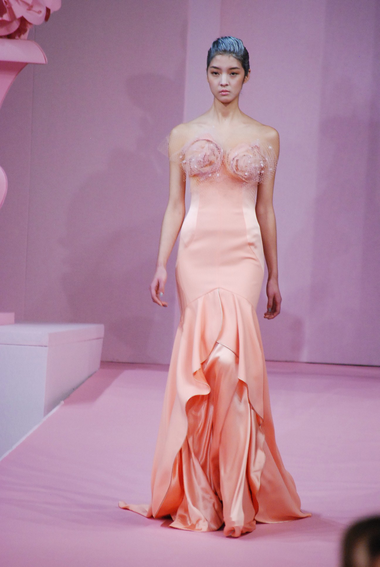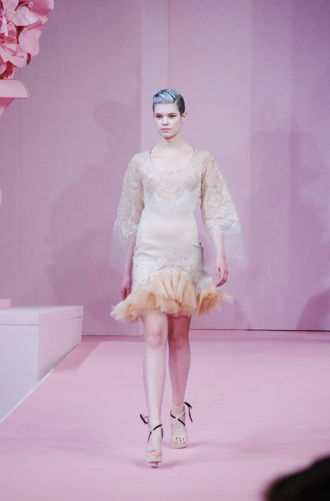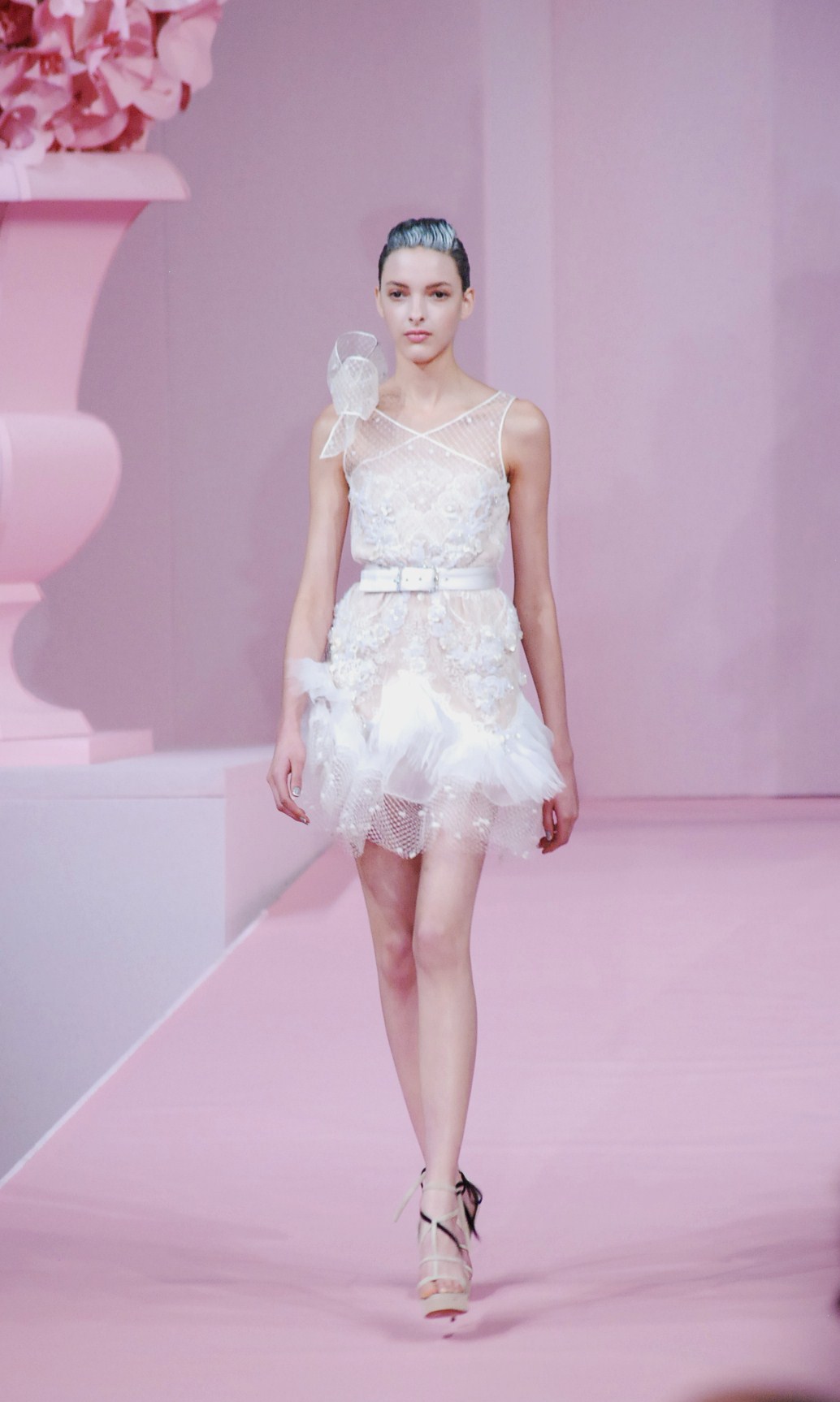 Le cadre du défilé, en lui-même, est féerique. Rose bonbon et fleurs, c’est une Marie-Antoinette revisitée que la femme chez Alexis Mabille Couture pour le printemps/été 2013.