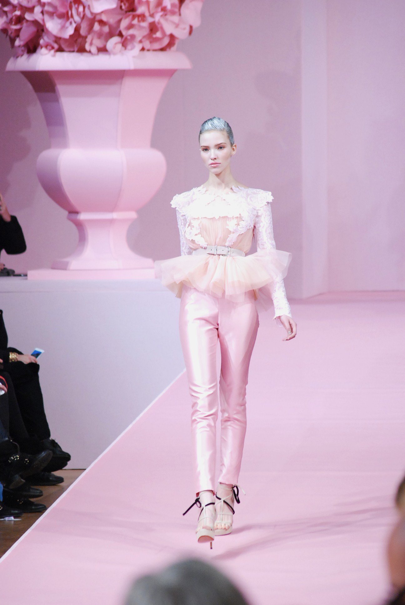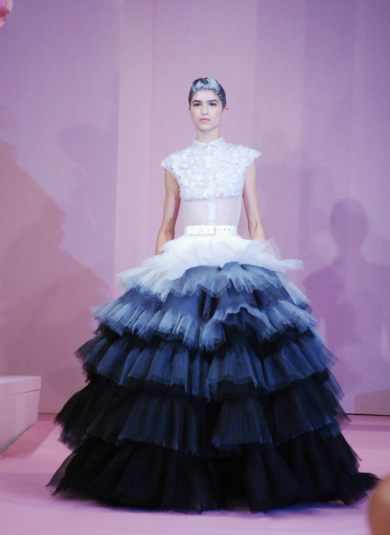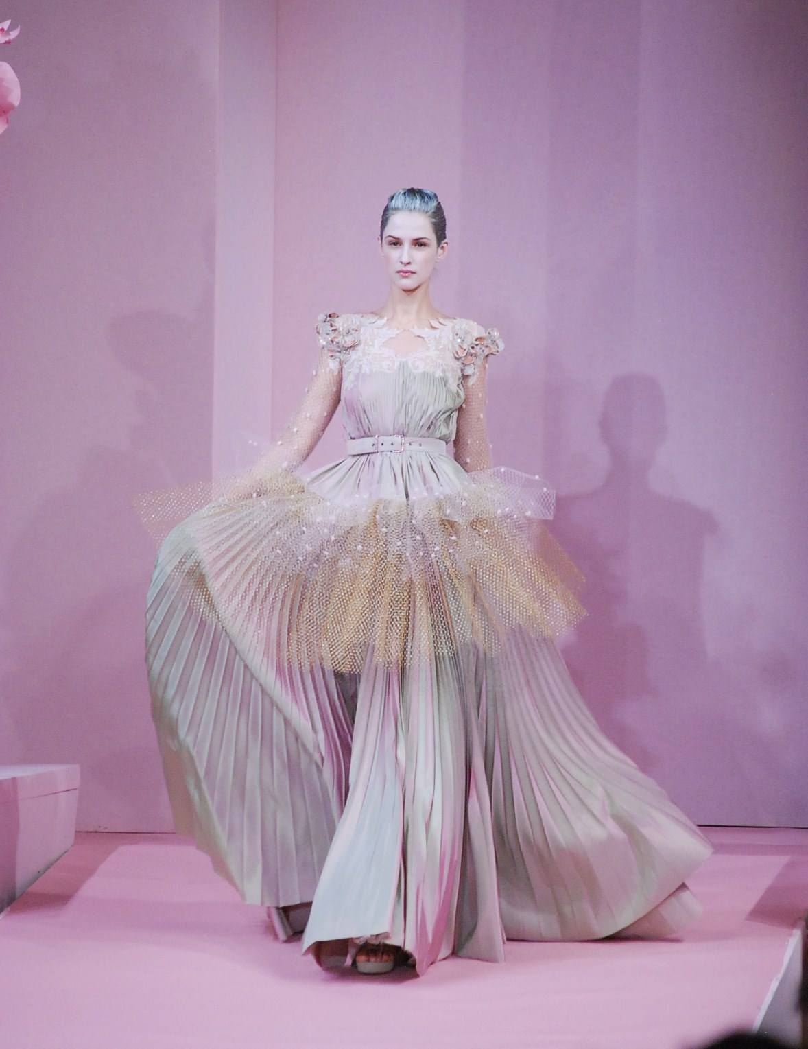 Pastel et couleurs vives s’entremêlent dans ce bal des princesses que nous propose le créateur dans un tourbillon de structure ultra féminines et baroques.