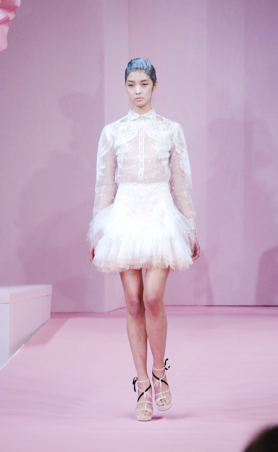 Alexis Mabille, fort de son premier défilé de couture en tant que membre officiel de la fédération de couture à Paris, imagine pour sa collection Printemps/Été des tenues dignes de la garde-robe d’une princesse de conte de fées.