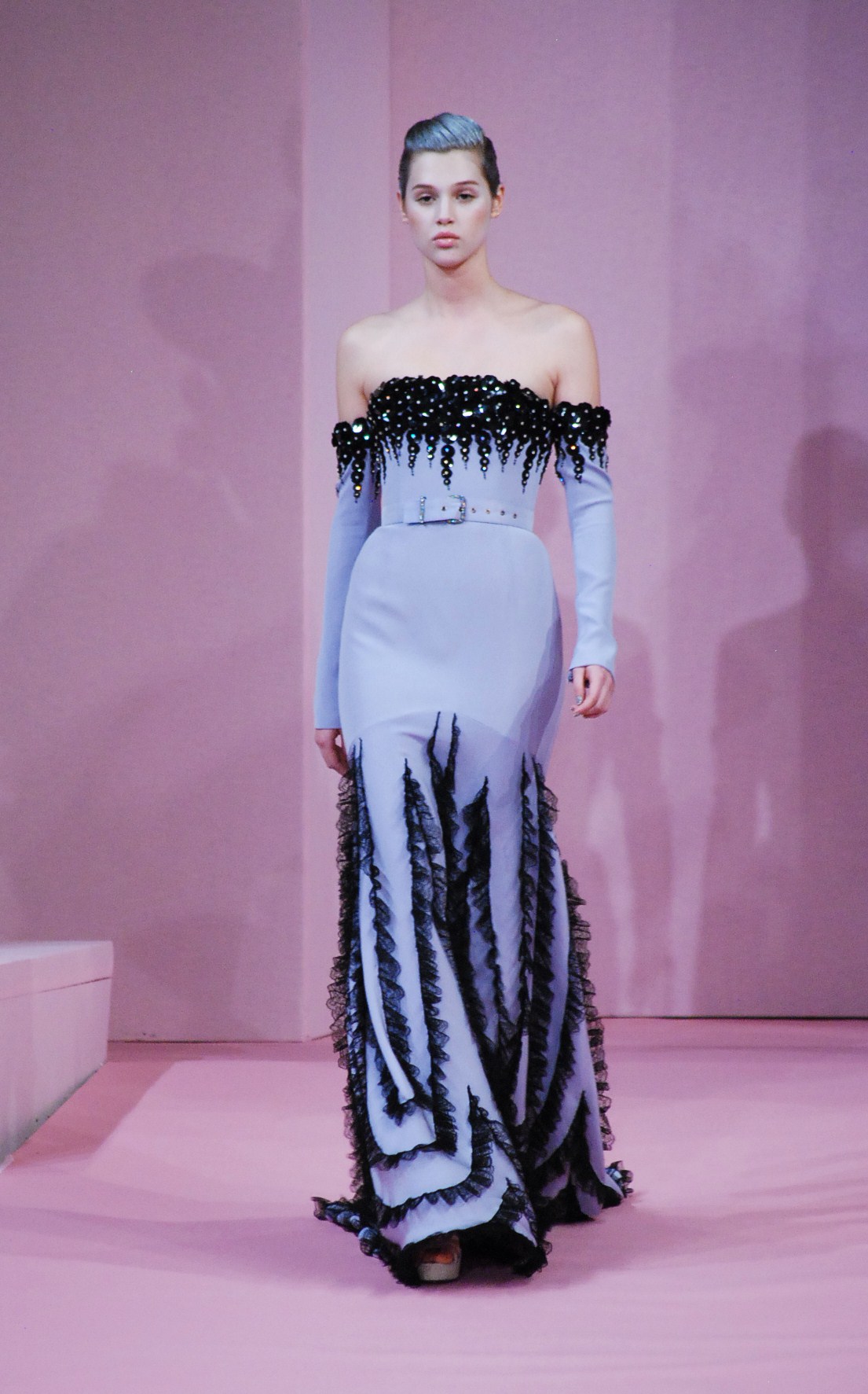 Assurément girly et dramatique, cette collection nous propose des volumes incroyables à grand renfort de superposition de tulle, des strass à foison et des broderies florales pour des tenues extravagantes et spectaculaires.